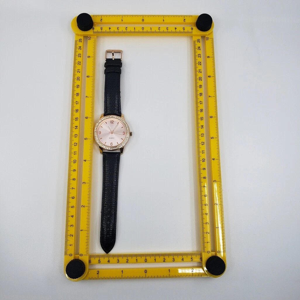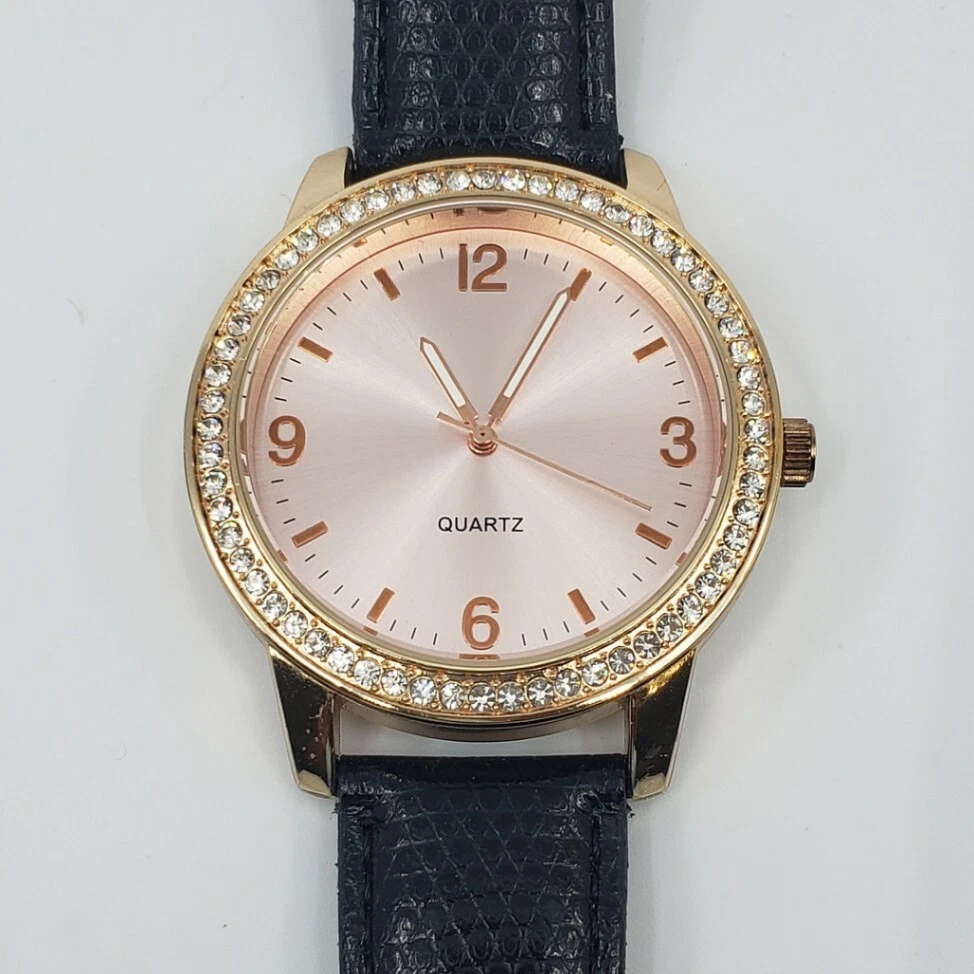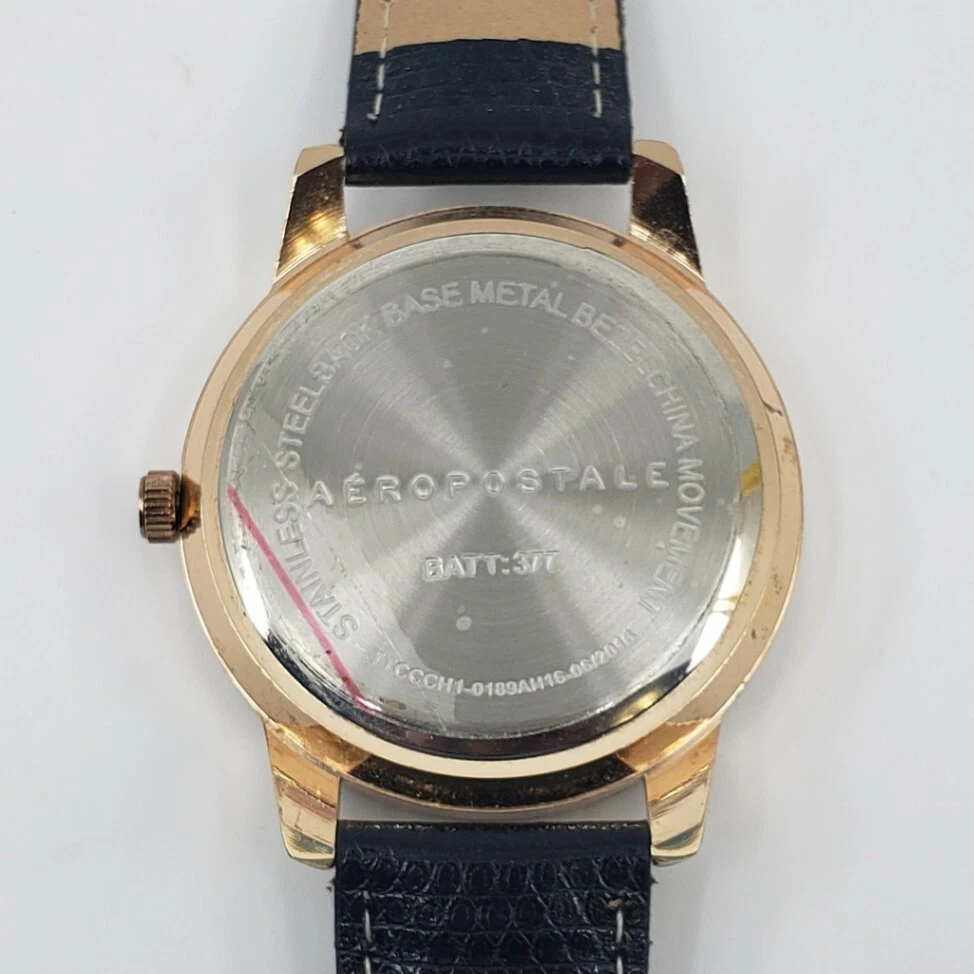 Aeropostale Womens Black Diamonds Quartz Round Face Strap Watch