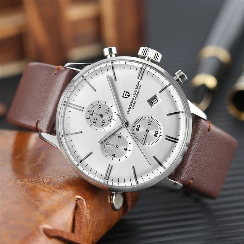 43MM Pagani Design Mens Watch Quartz Chronograph Stainless Steel Case Wristwatch
