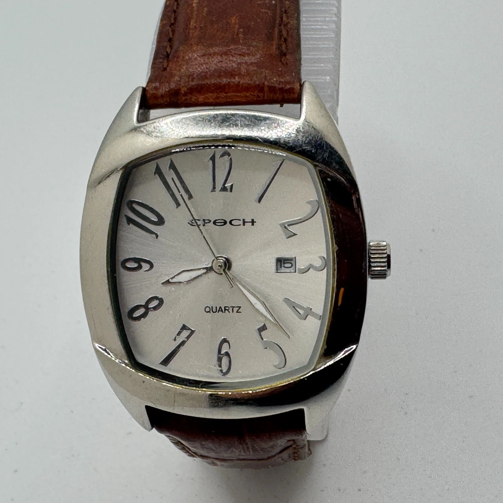 Epoch Quartz Watch Unisex Silver Steel Barrel Japan Movt Date Analog New Battery