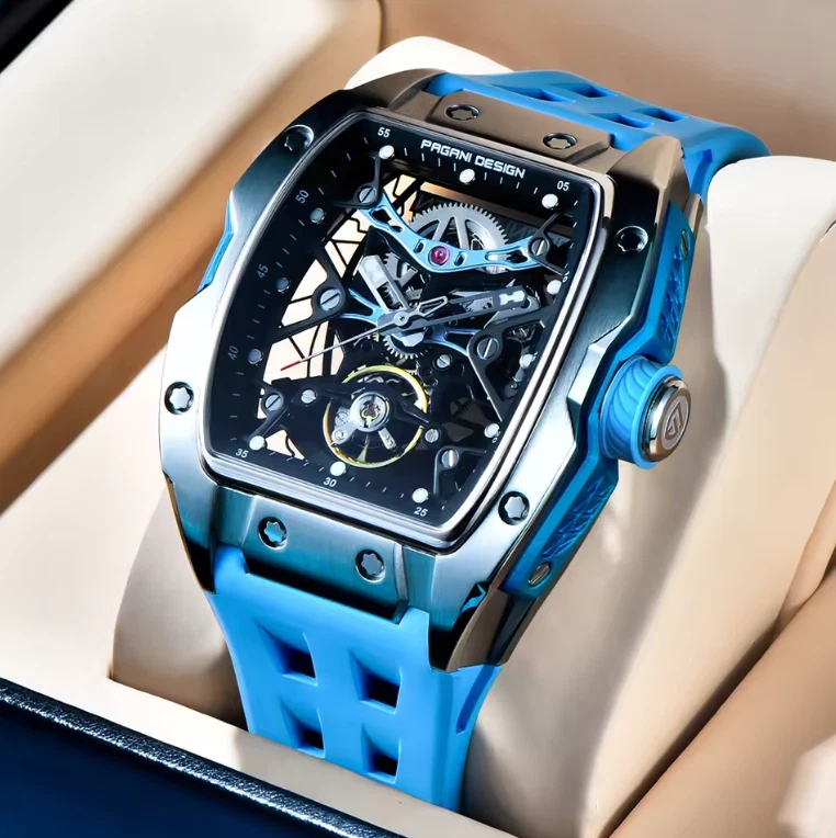 PAGANI DESIGN Automatic Watch For Men Skeleton Dial Silicone Mens Watch