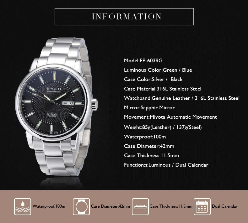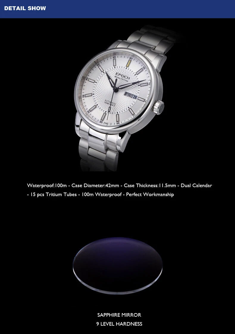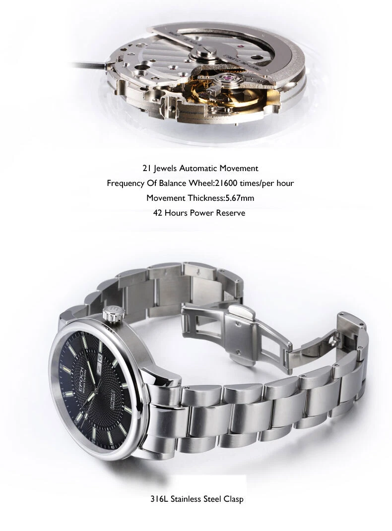 EPOCH Men Automatic Watch Luxury Watches Luminous Mechanical Wristwatch NH36