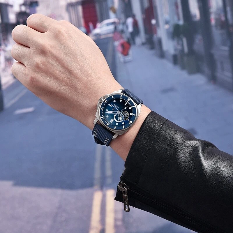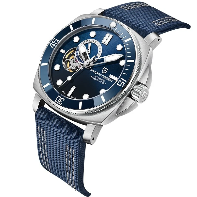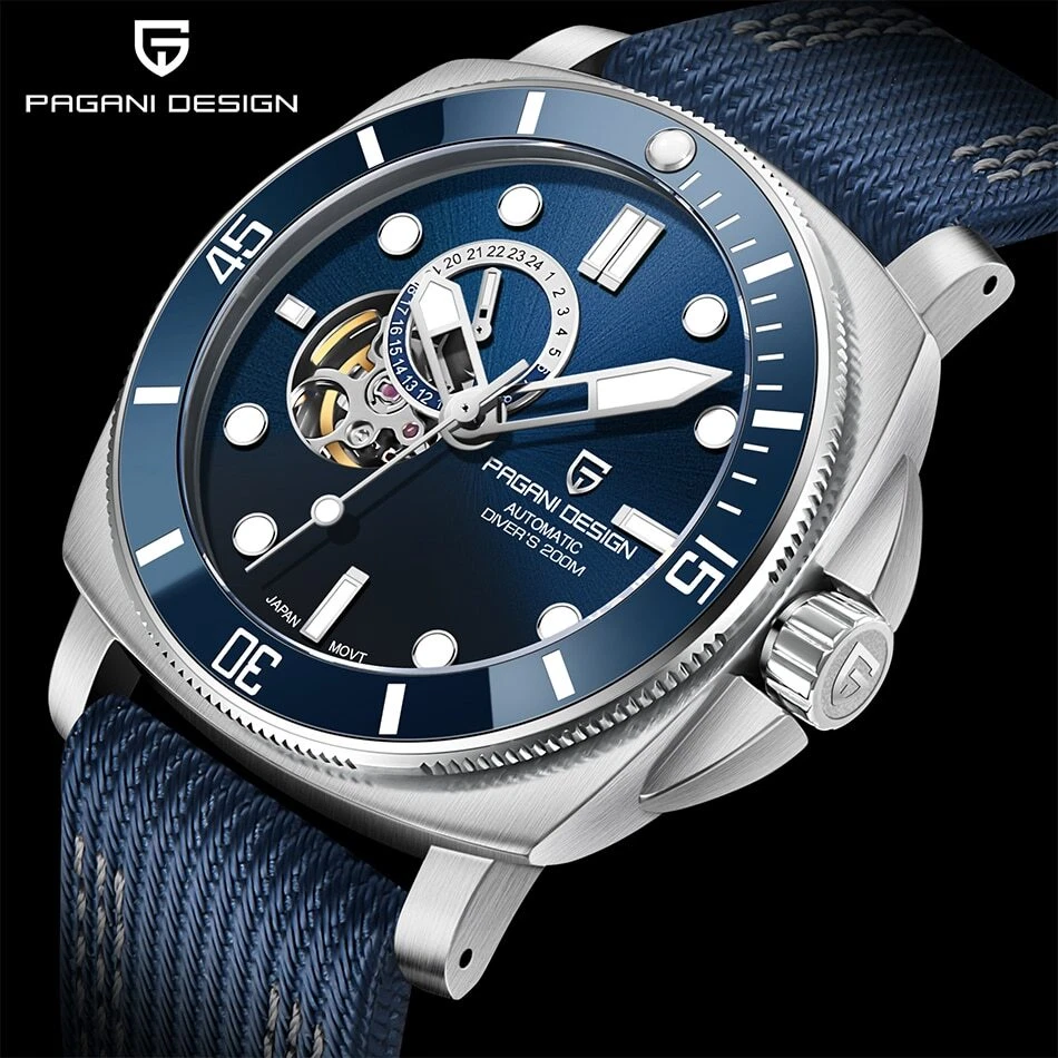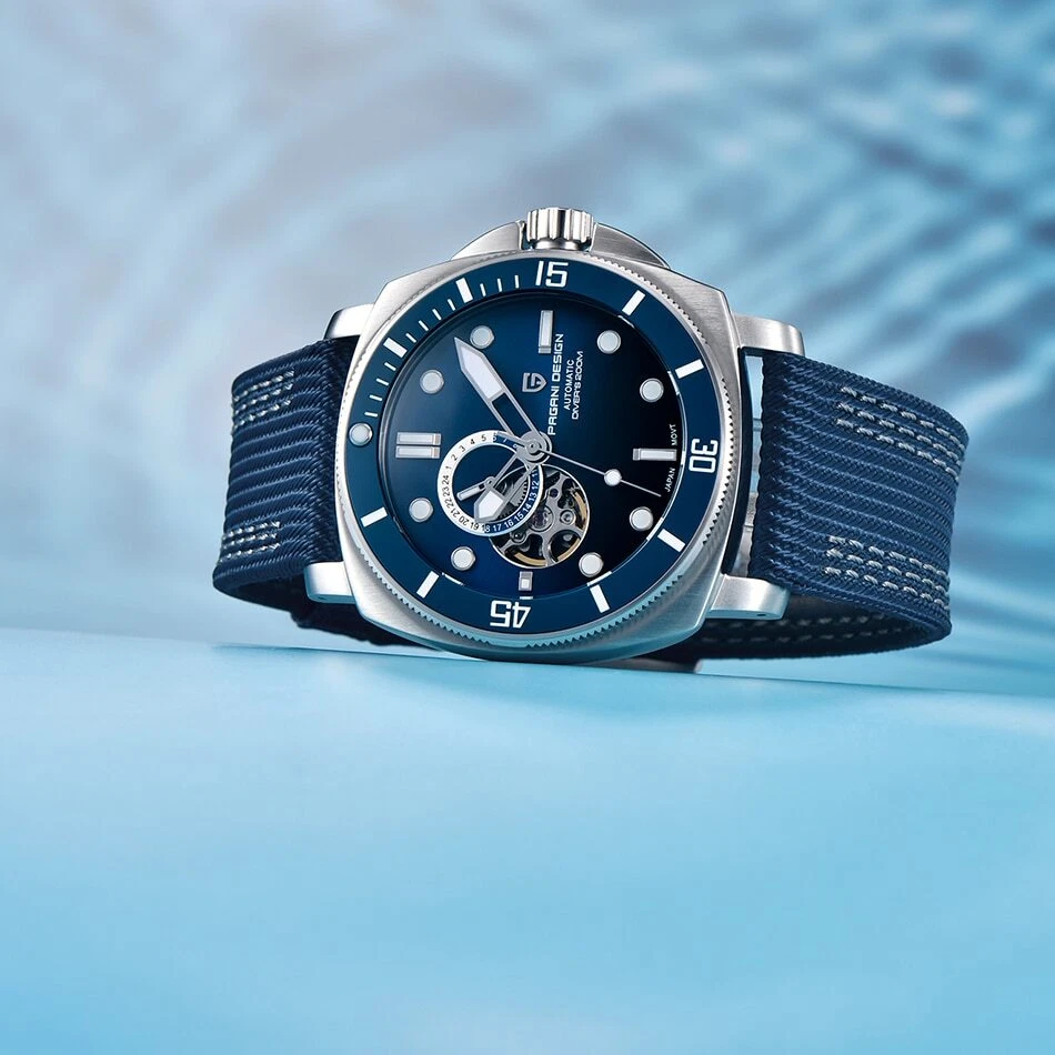 blue watch PAGANI DESIGN Hollow Mechanical Waterproof Sapphire Glass Luxury Men
