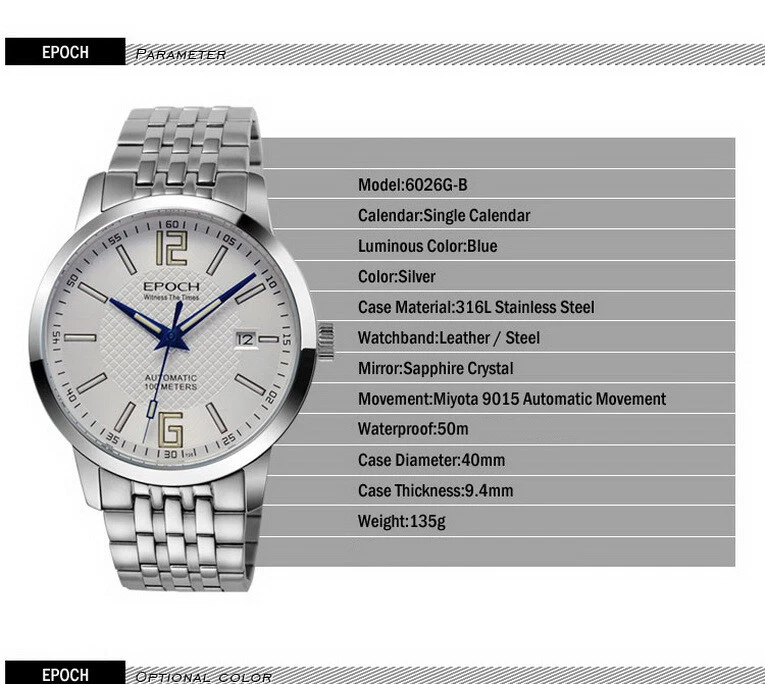 EPOCH Men Automatic Watch Luxury Watches Luminous Mechanical Wristwatch 9015