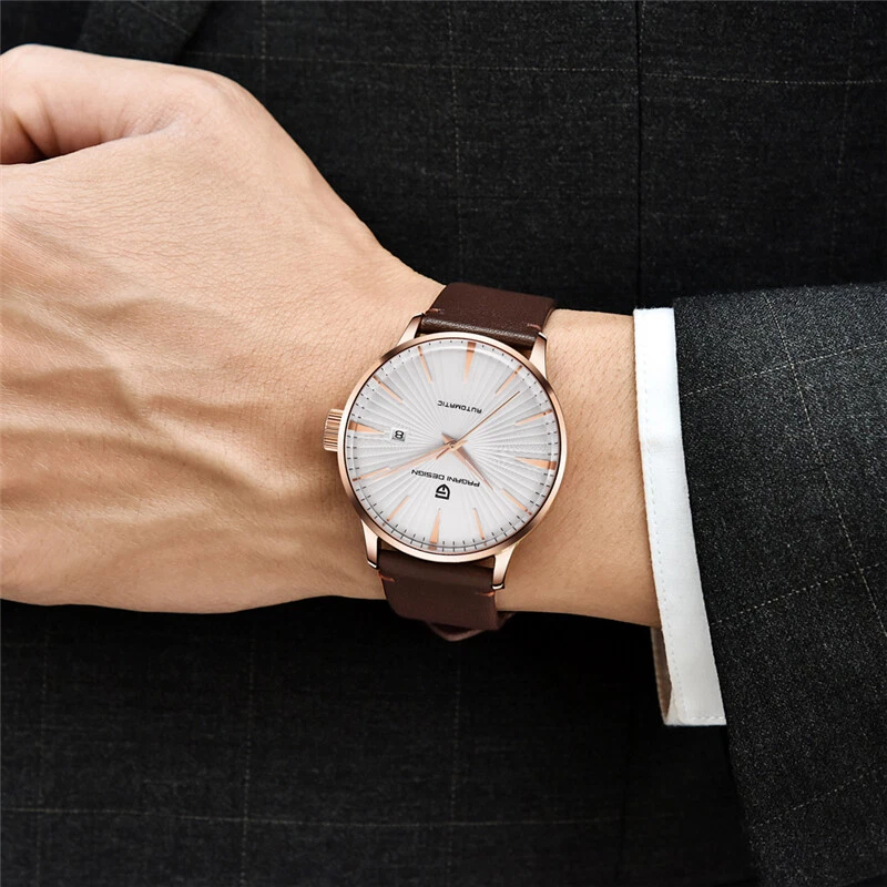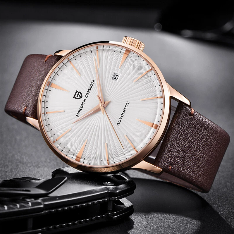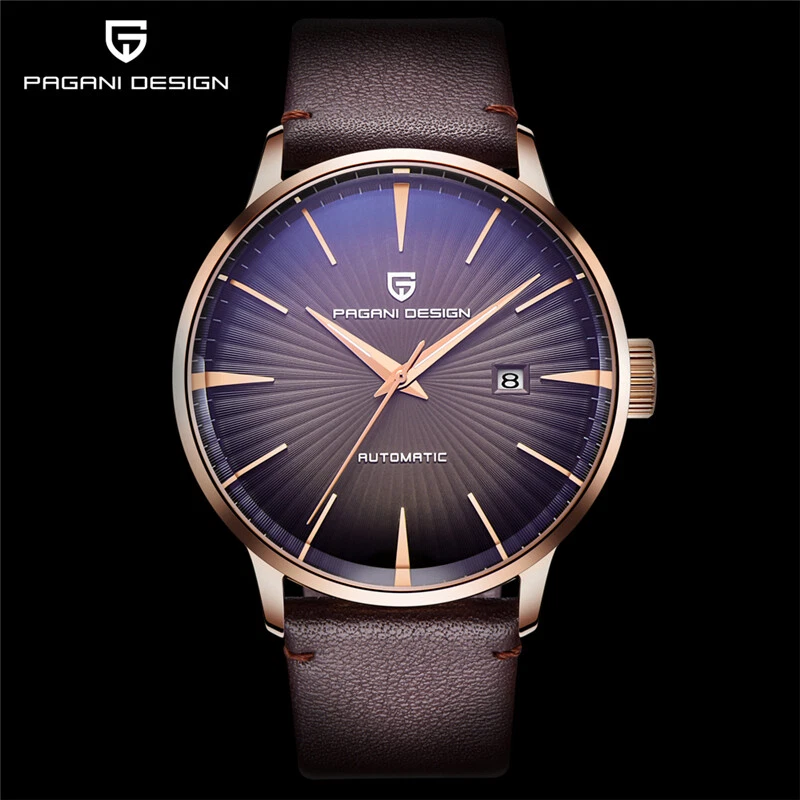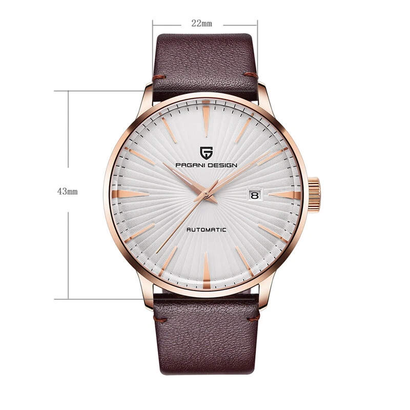 Luxury PAGANI DESIGN Pilot Military Automatic Self-Wind Watches Leather Band Men