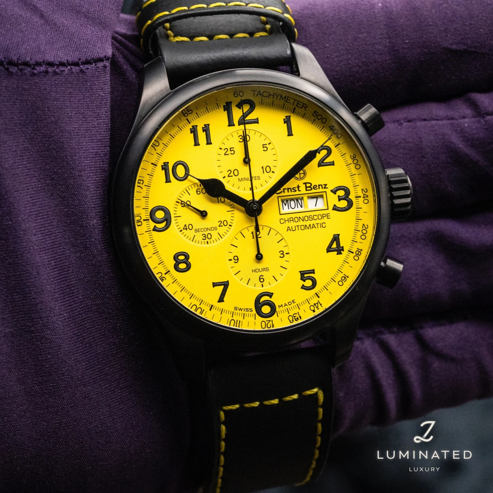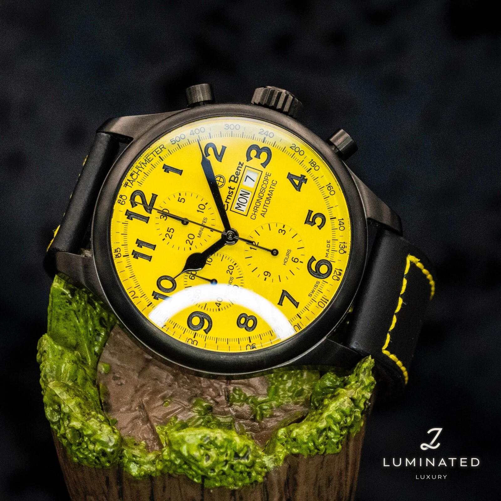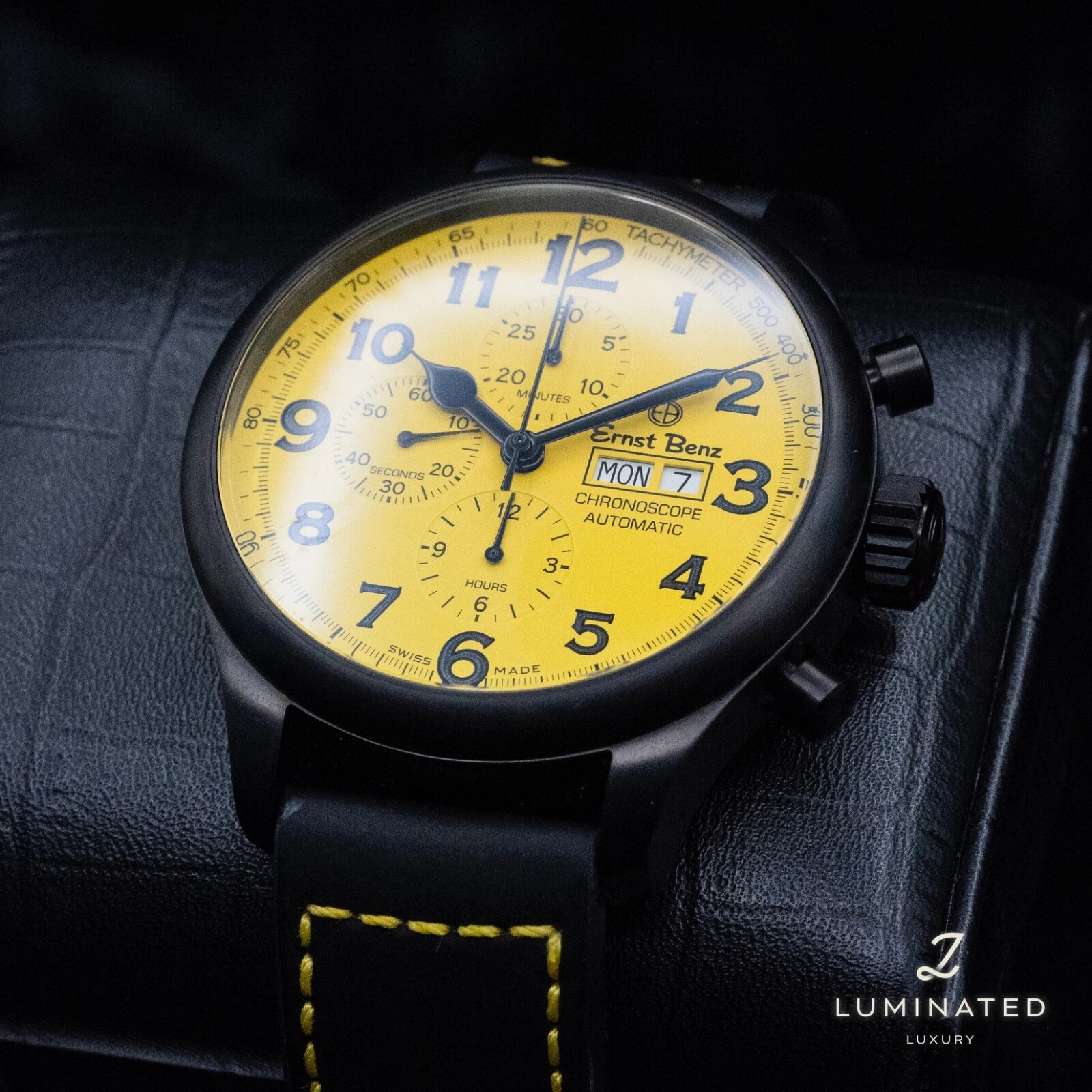 Ernst Benz Chronoscope Yellow dial Rare day date automatic GC40119