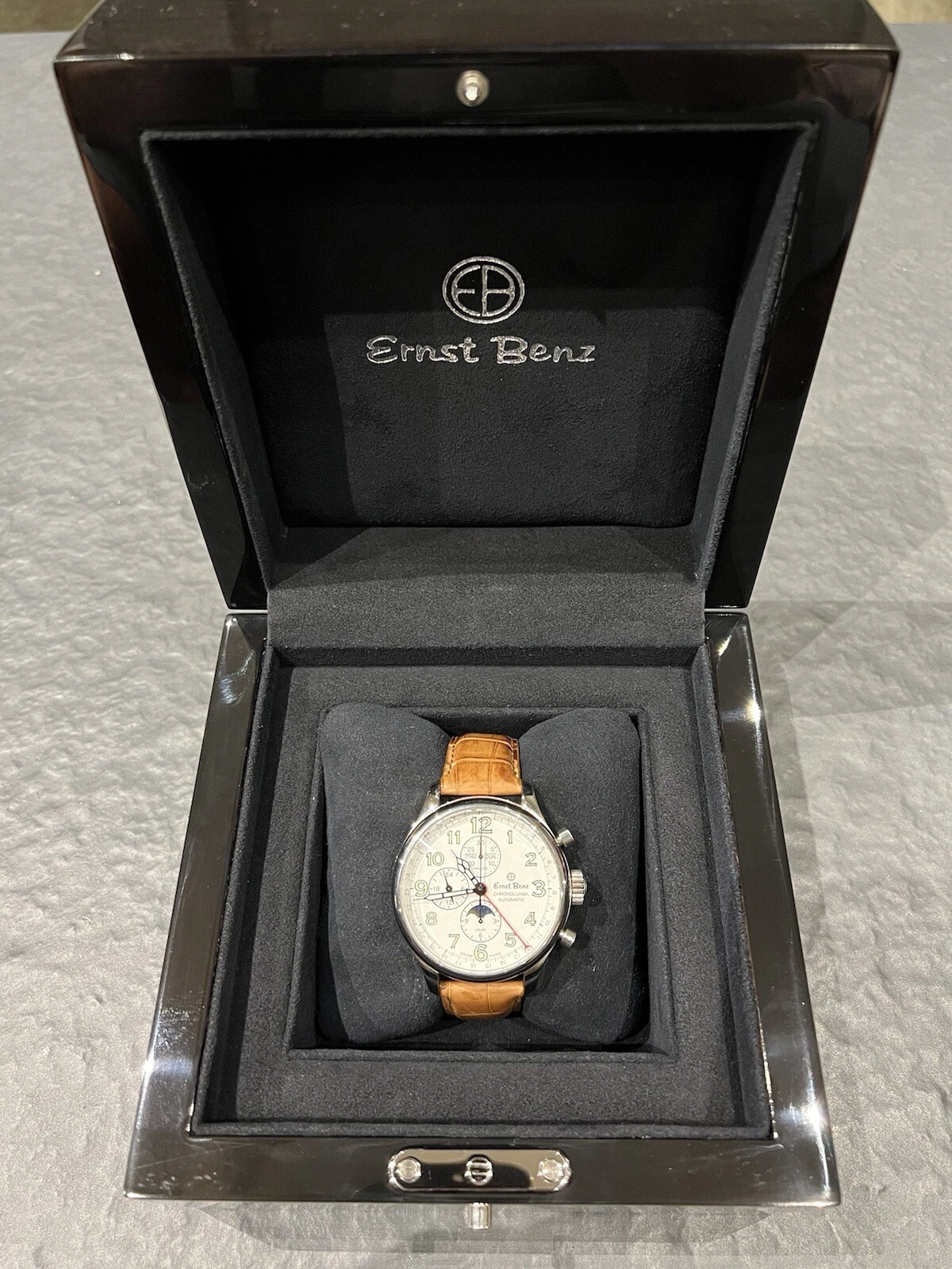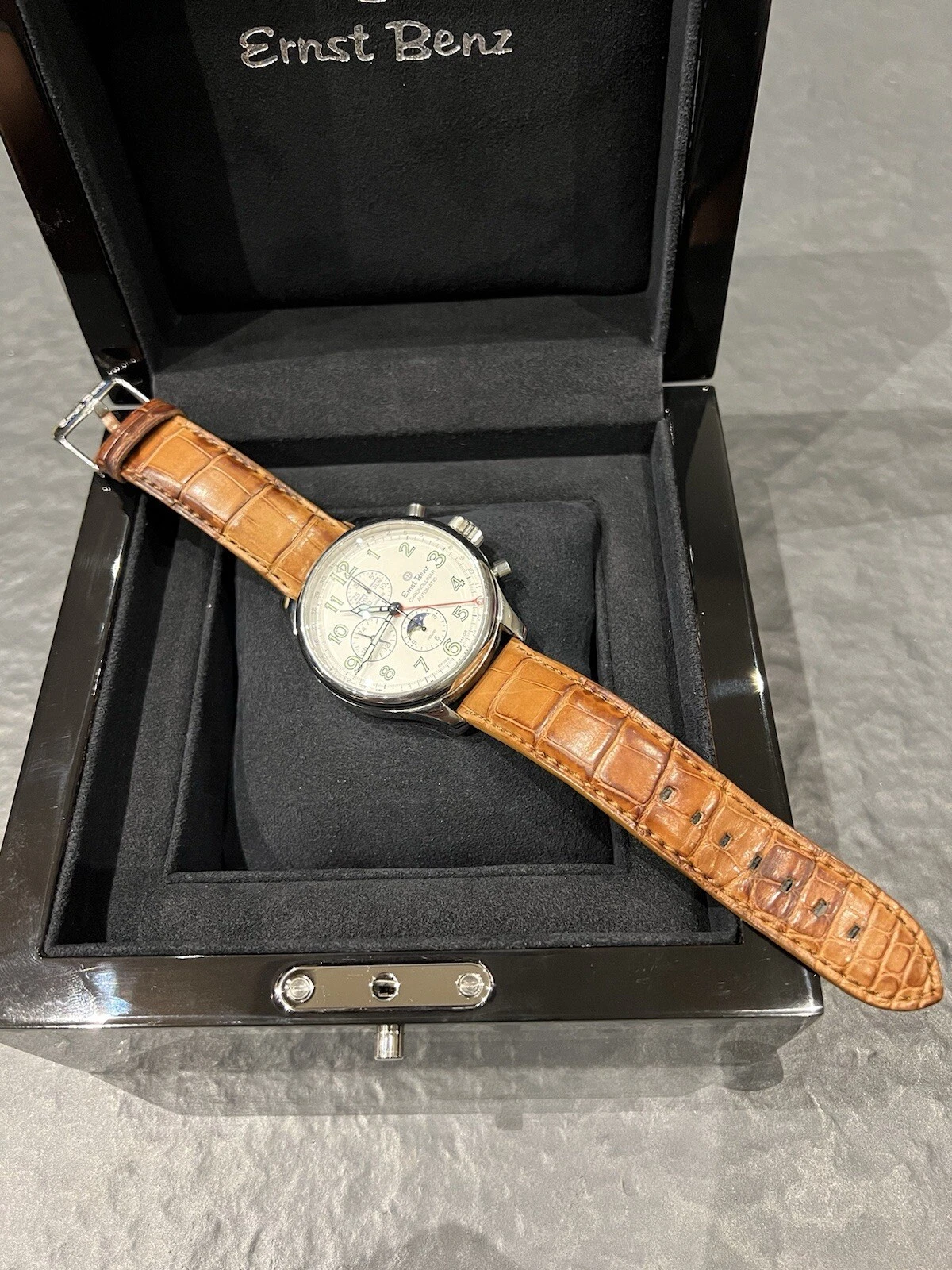 Ernst Benz Chronolunar 47mm White Dial with Brown Leather Band