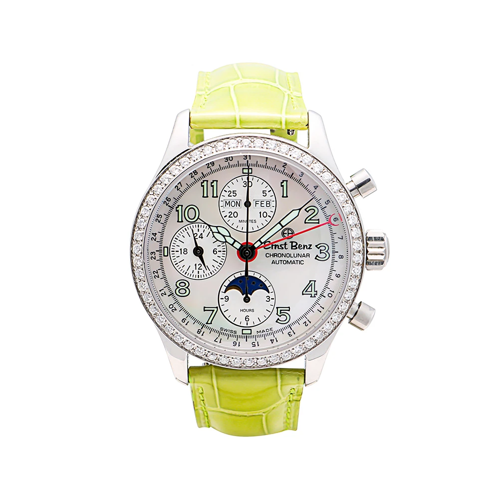 Ernst Benz Chronolunar Watch White MOP Dial 40mm Automatic Retail: $11,800 Used