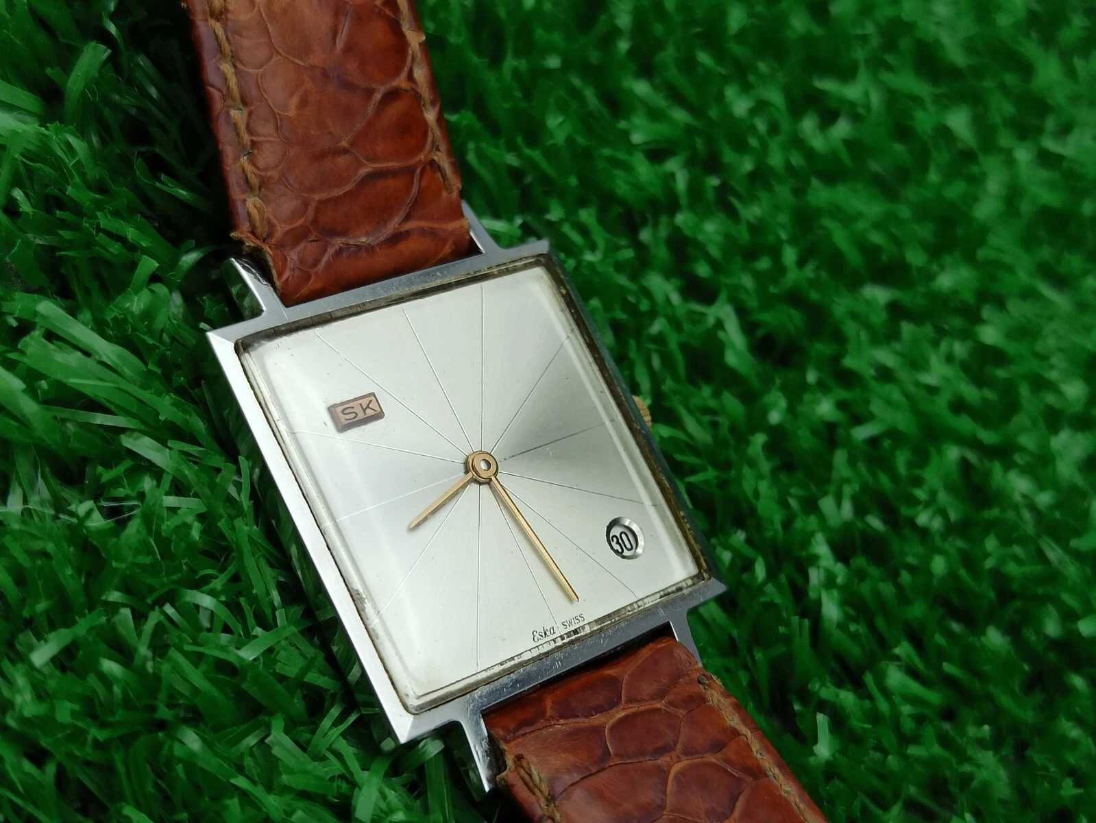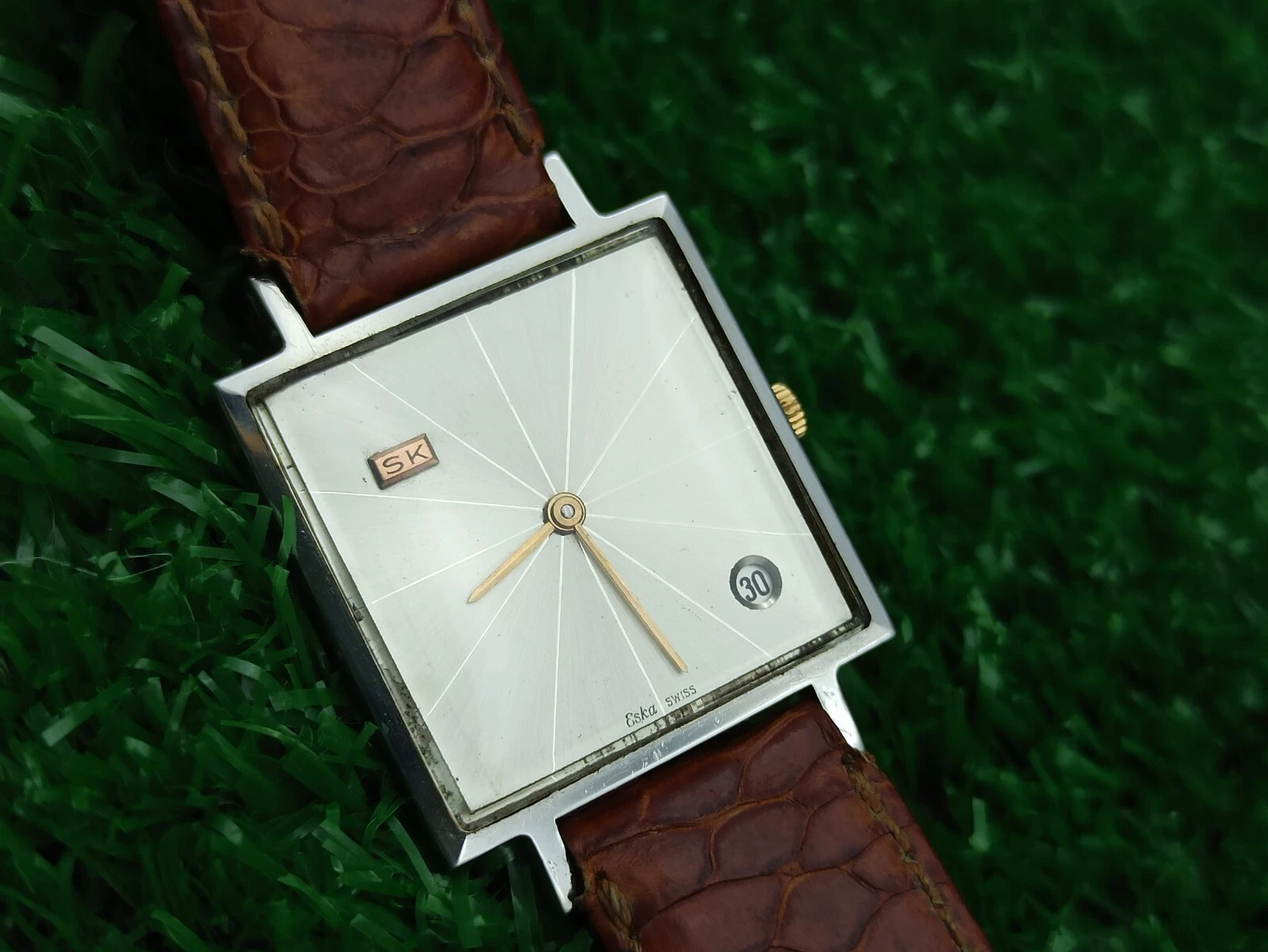 ELEGANT-STYLE ESKA TANK WATCH SWISS MADE SQUARED TINY MEN VERY RARE