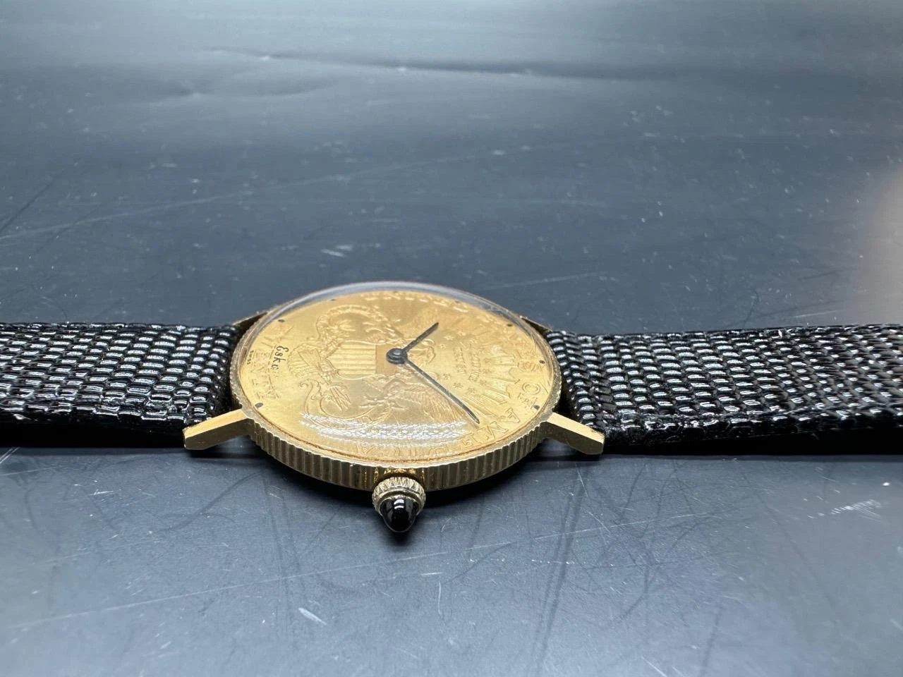 Vintage Eska 18kt Gold Edge Case With U.S Coin Face Dress Watch.