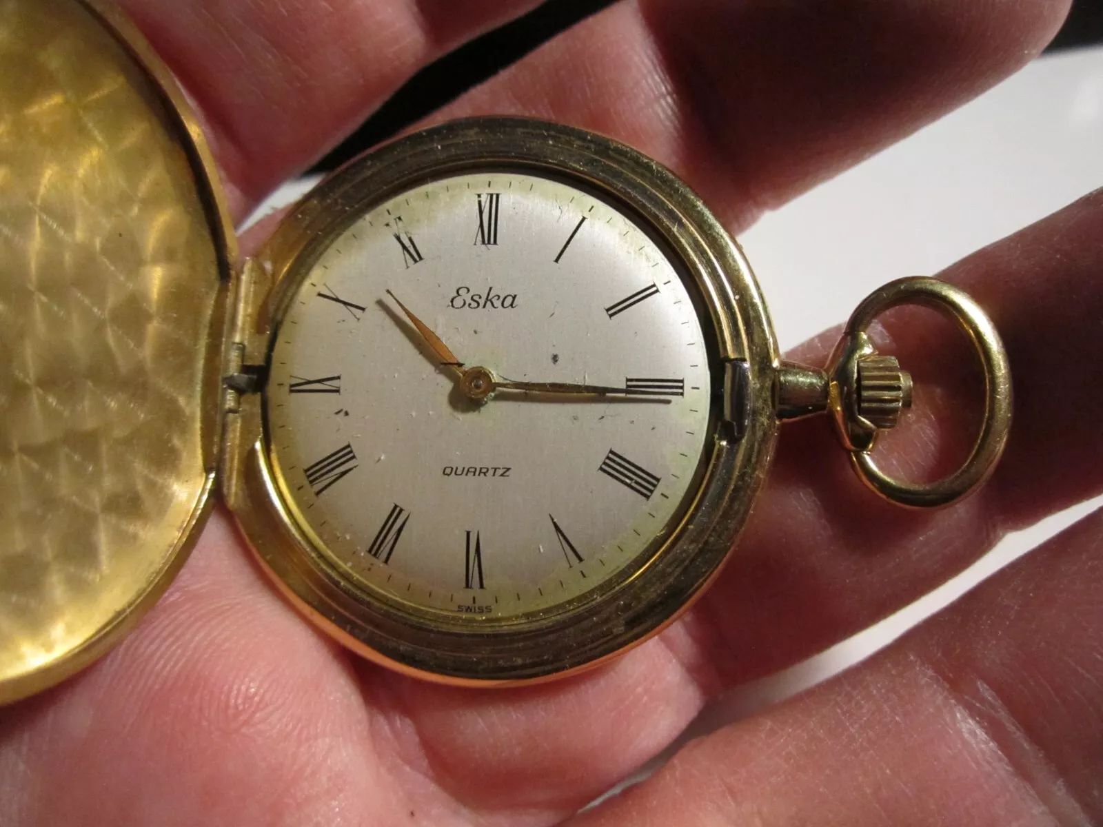 VINTAGE ESKA POCKET WATCH SWISS MADE QUARTZ UNTESTED - OFC-T2