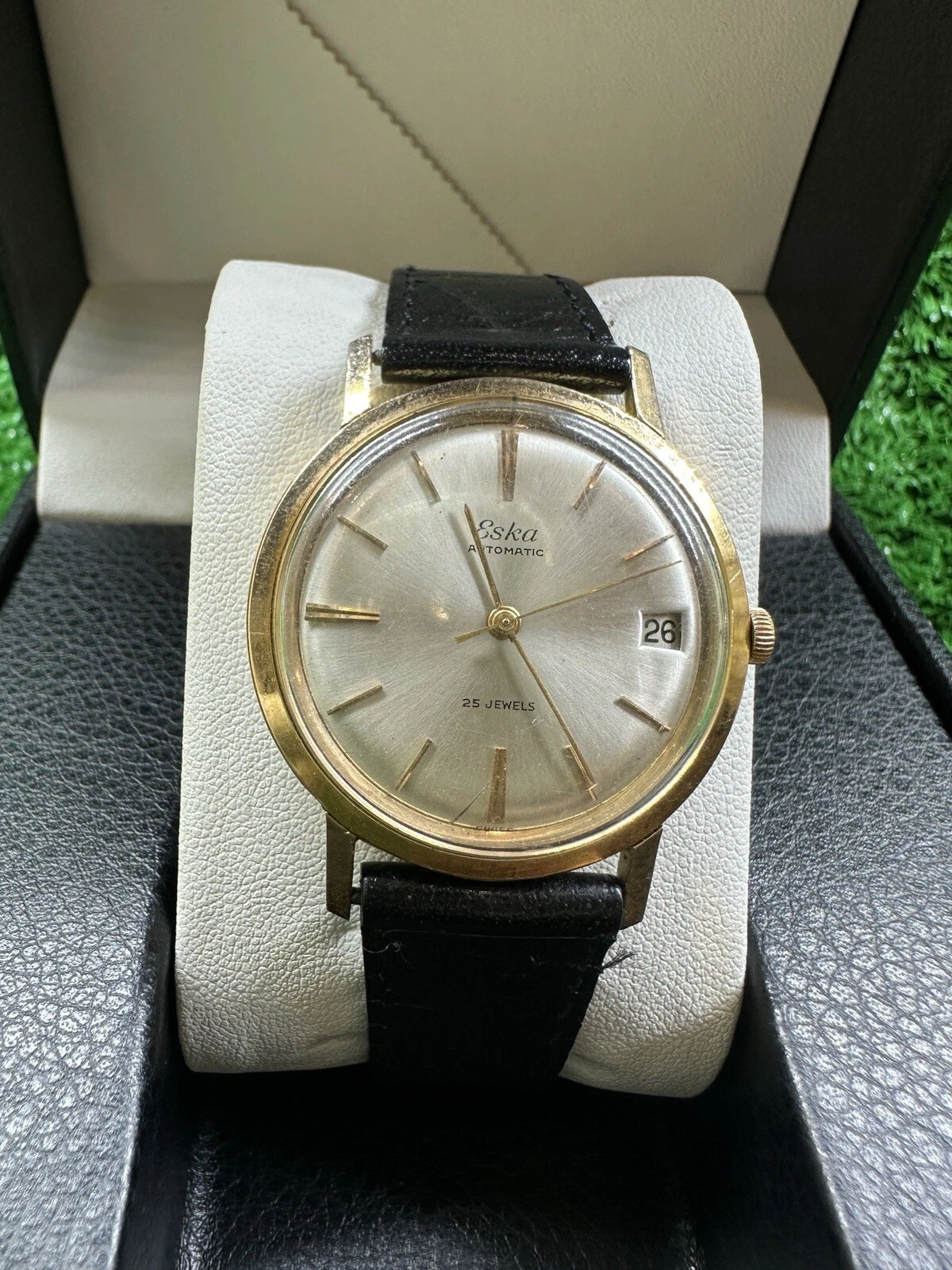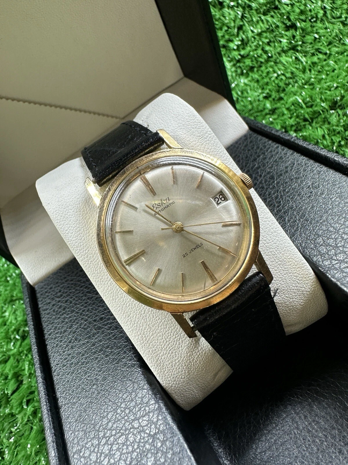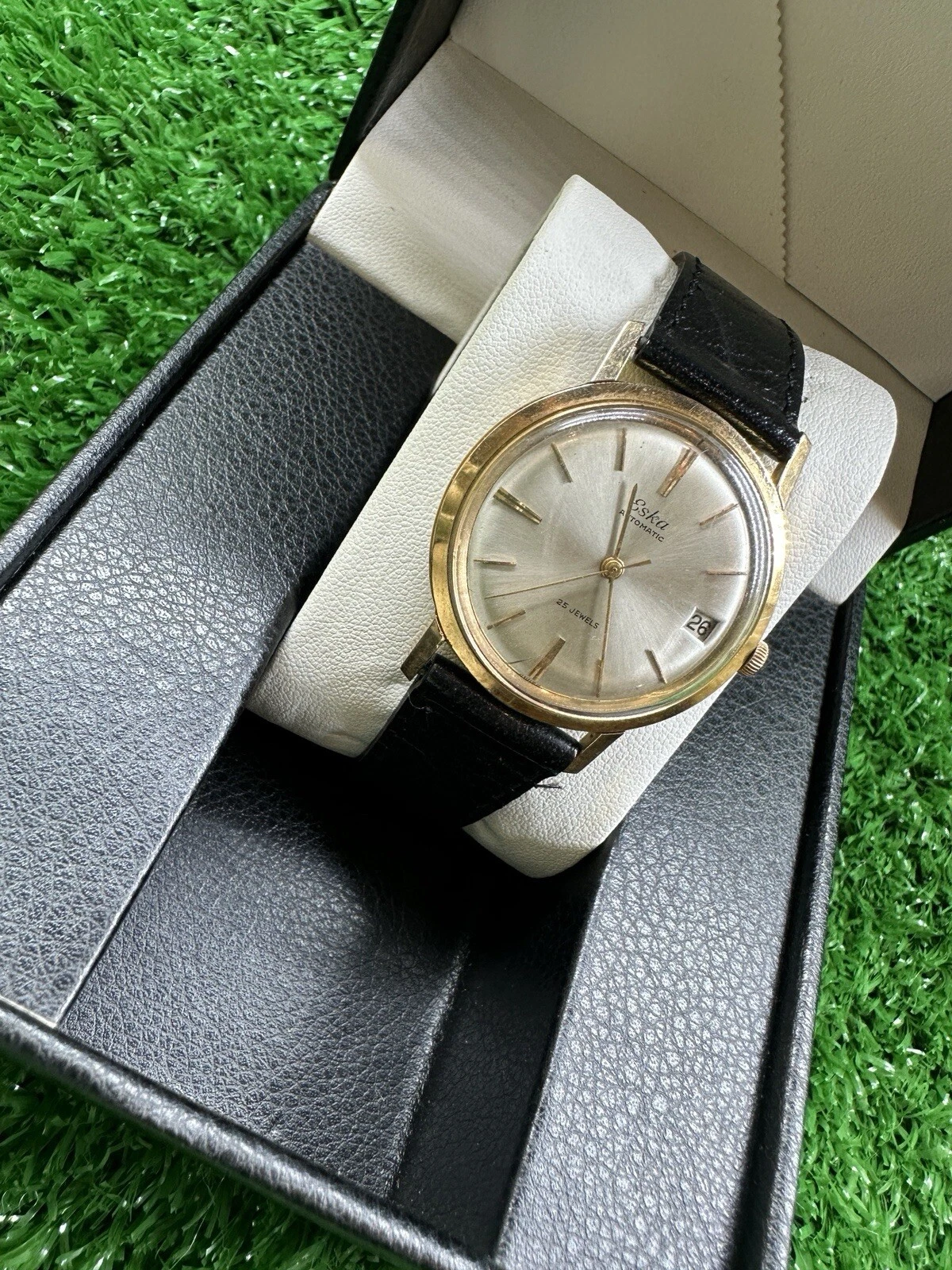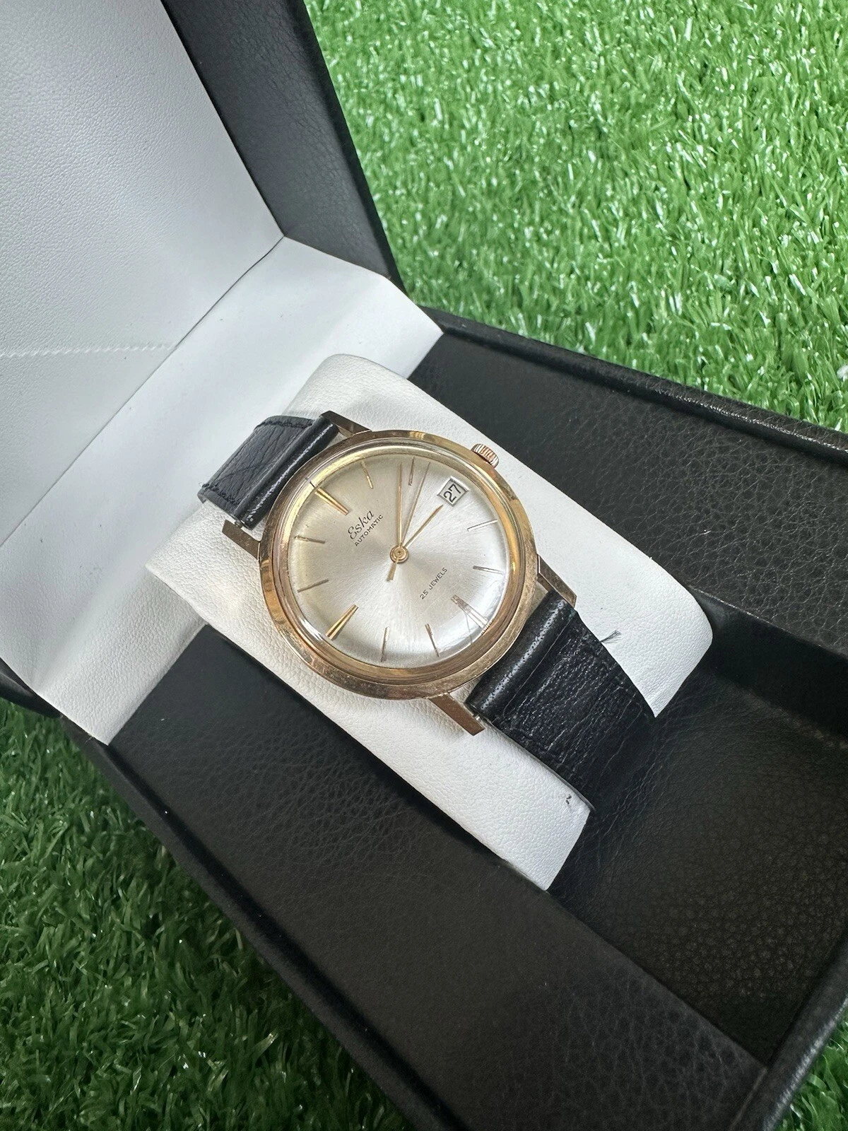 ULTRA-RARE ESKA AUTOMATIC 25 JEWELS WATCH SWISS MADE HEAVY GOLD PLATED 1960s