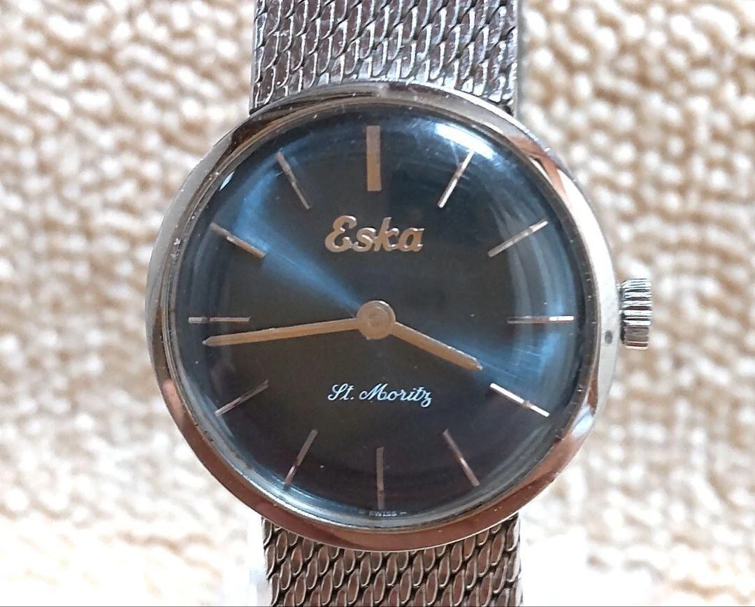 ESKA St. Moritz Ladies Watch Manual Winding Blue Dial Silver 25mm