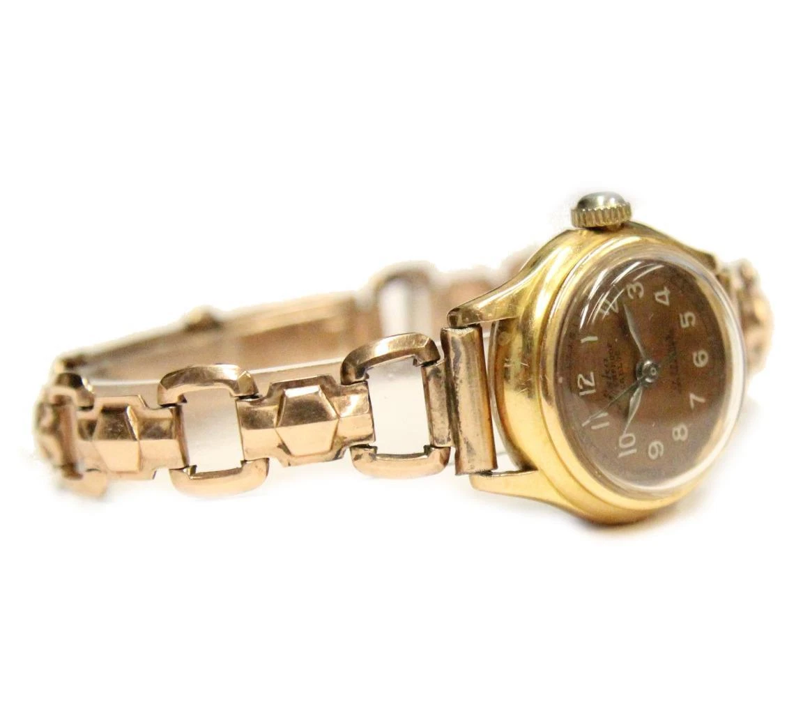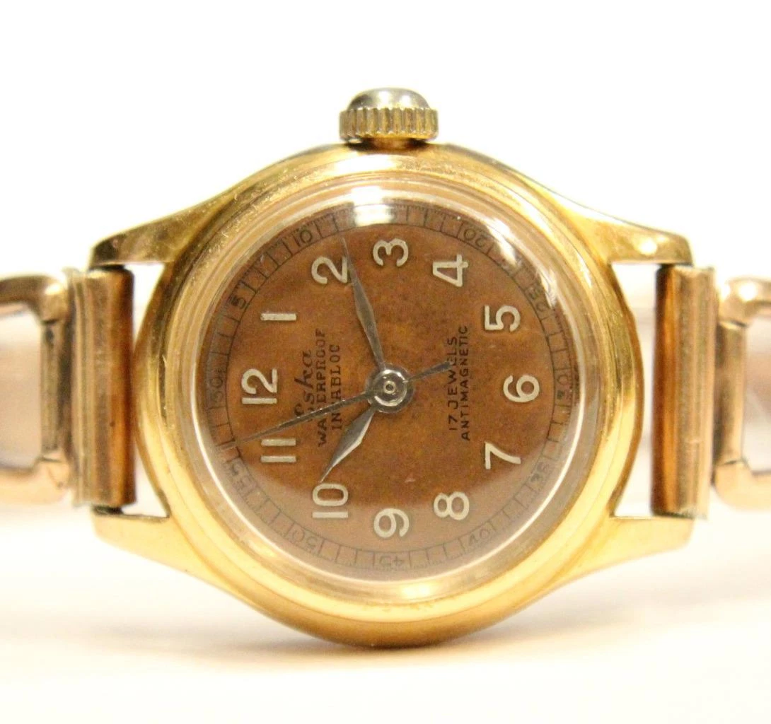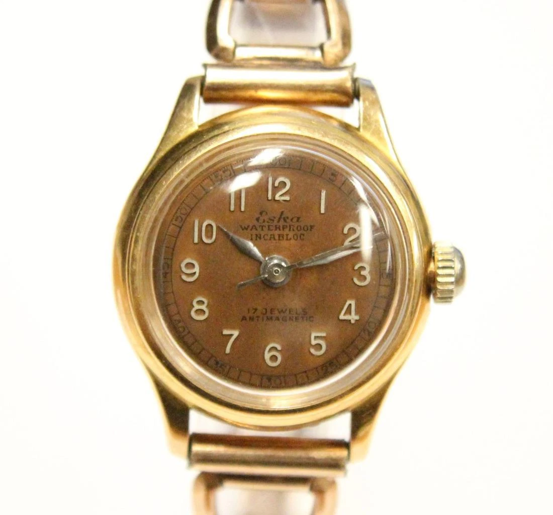 1940s ESKA 18k gold ladies watch and adjustable GF bracelet
