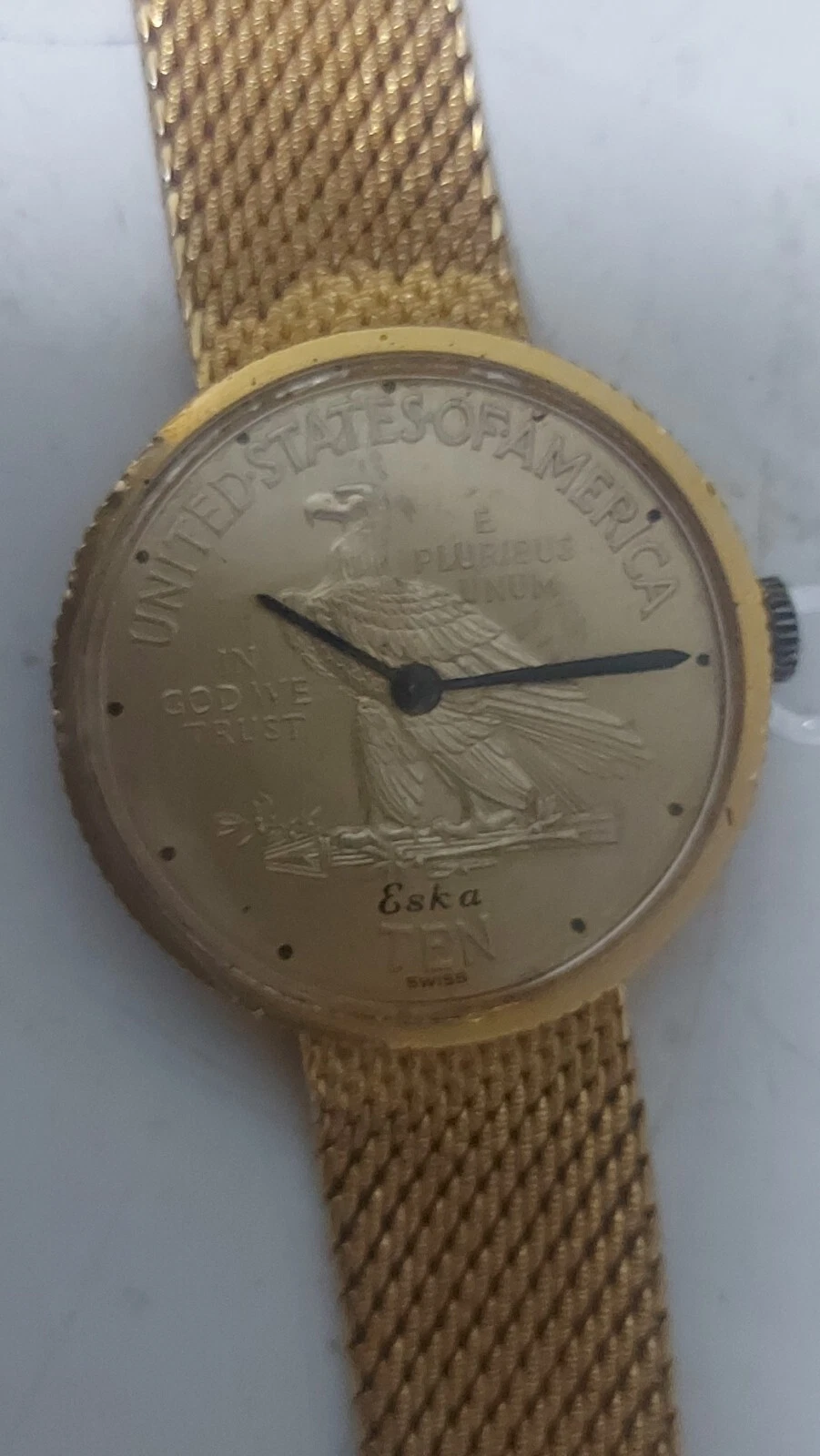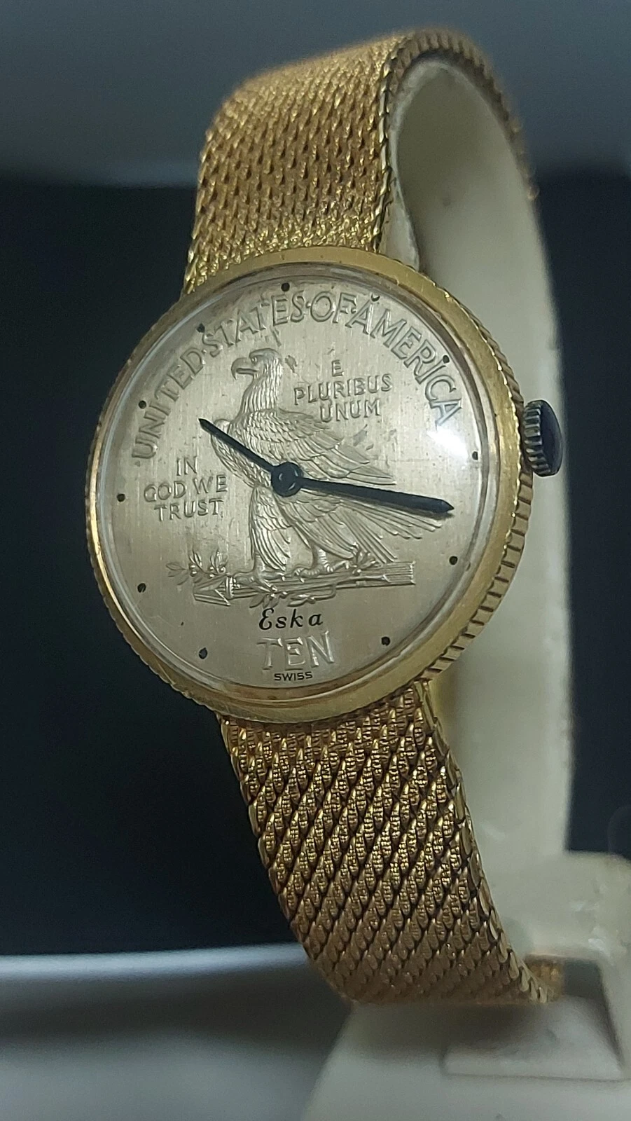 ESKA TEN GOLD COIN VINTAGE SWISS MADE WATCH slim mens watch