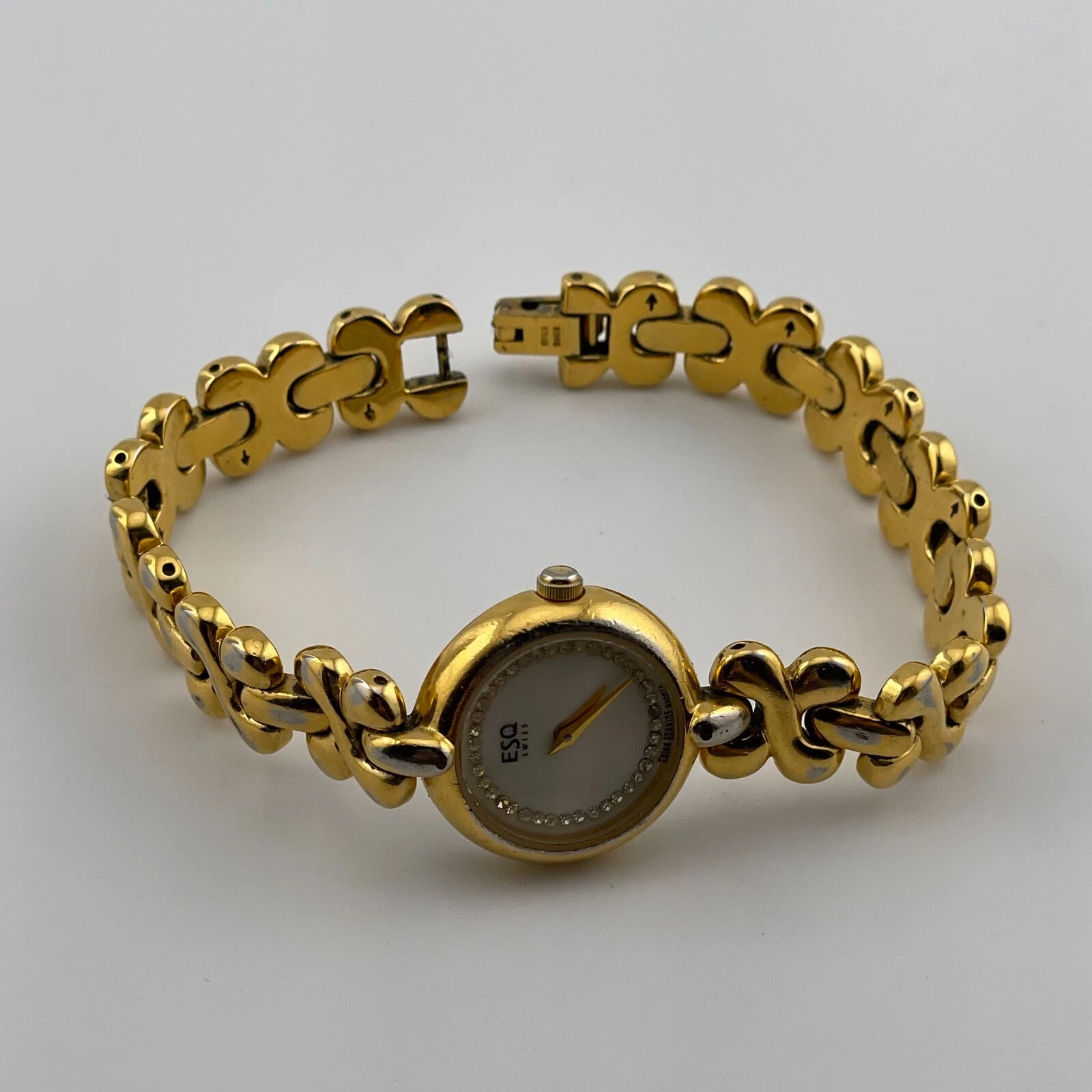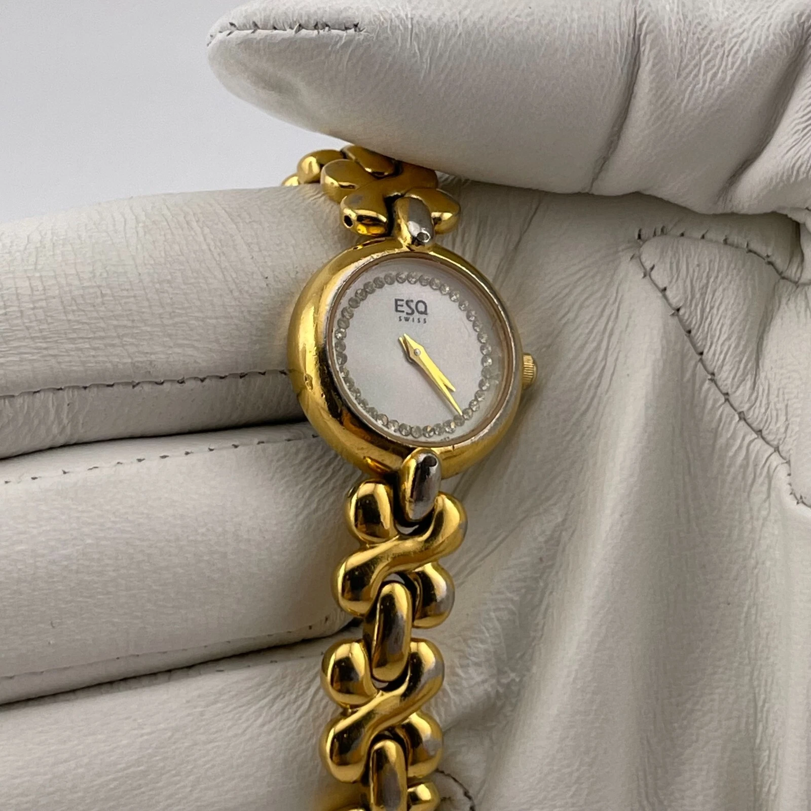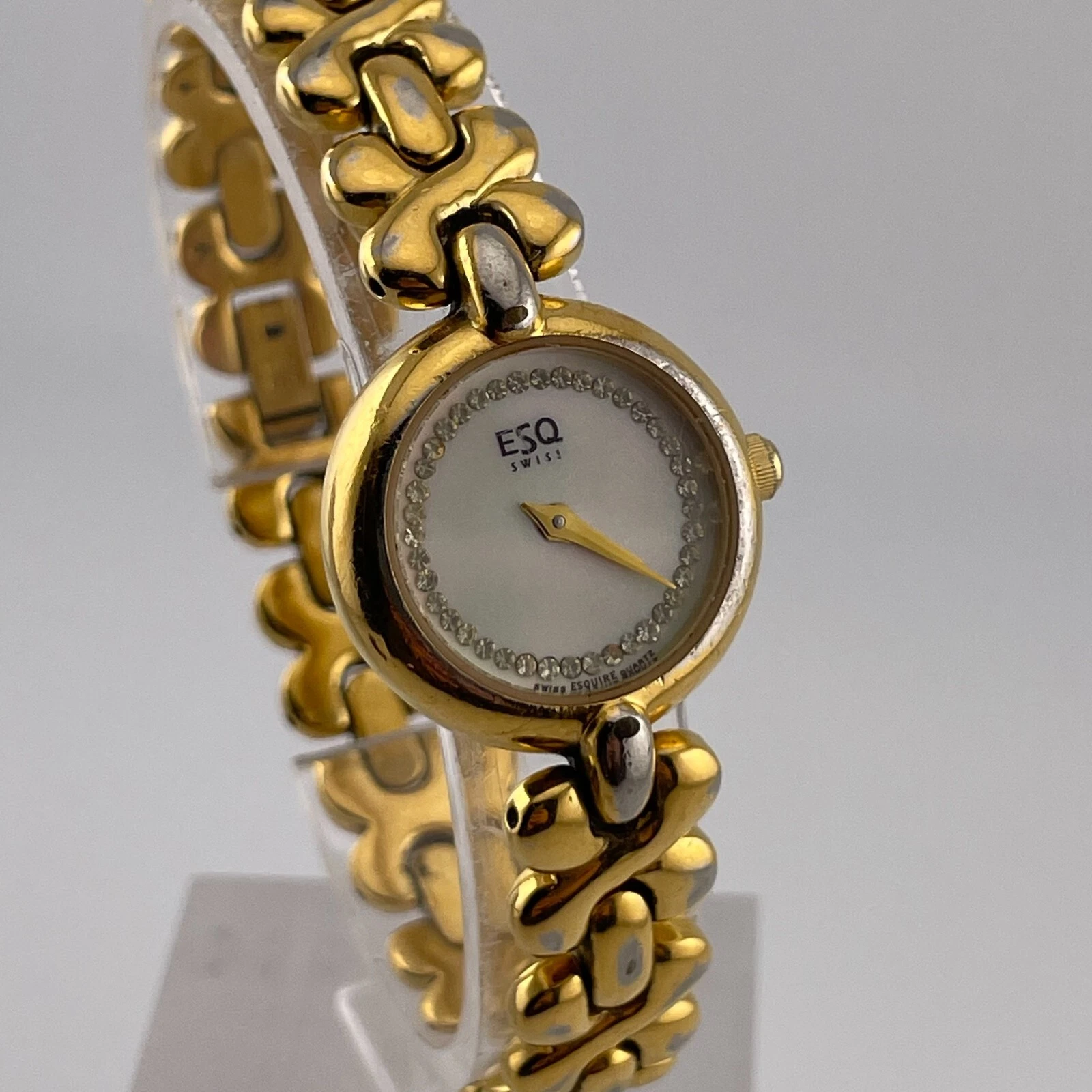 ESQ Esquire Watch Womens Swiss 24mm Case Pearl Look Dial Quartz Two Hands