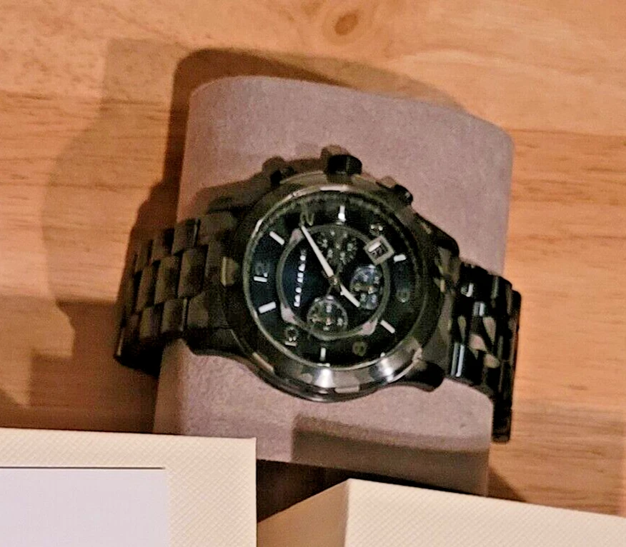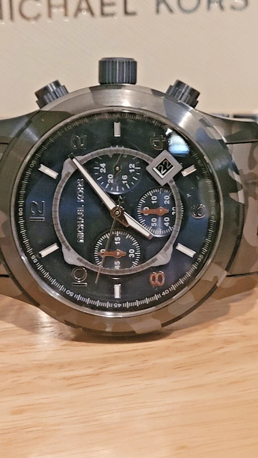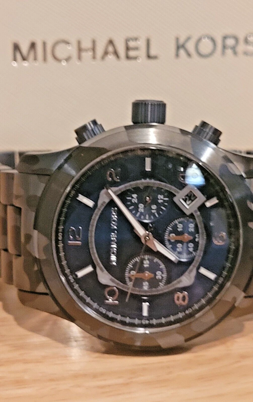New Michael Kors Men's Chronograph Runway Blue Camouflage Stainless Steel Watch