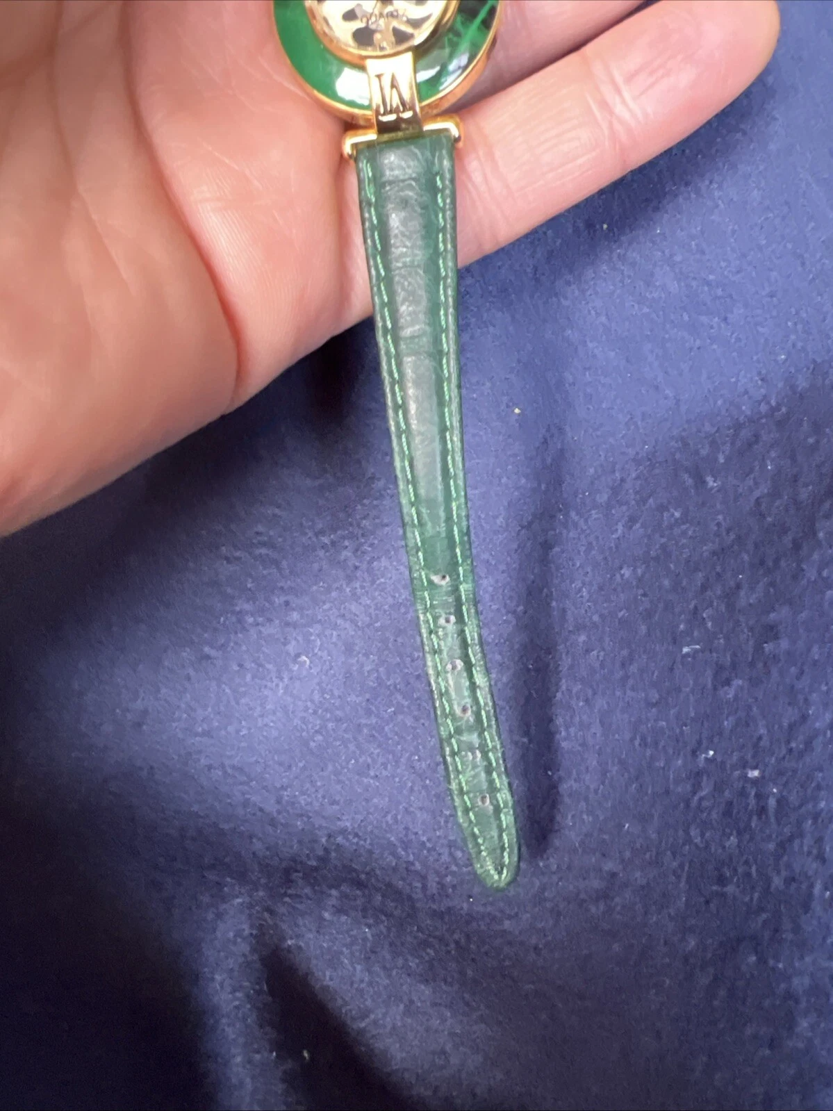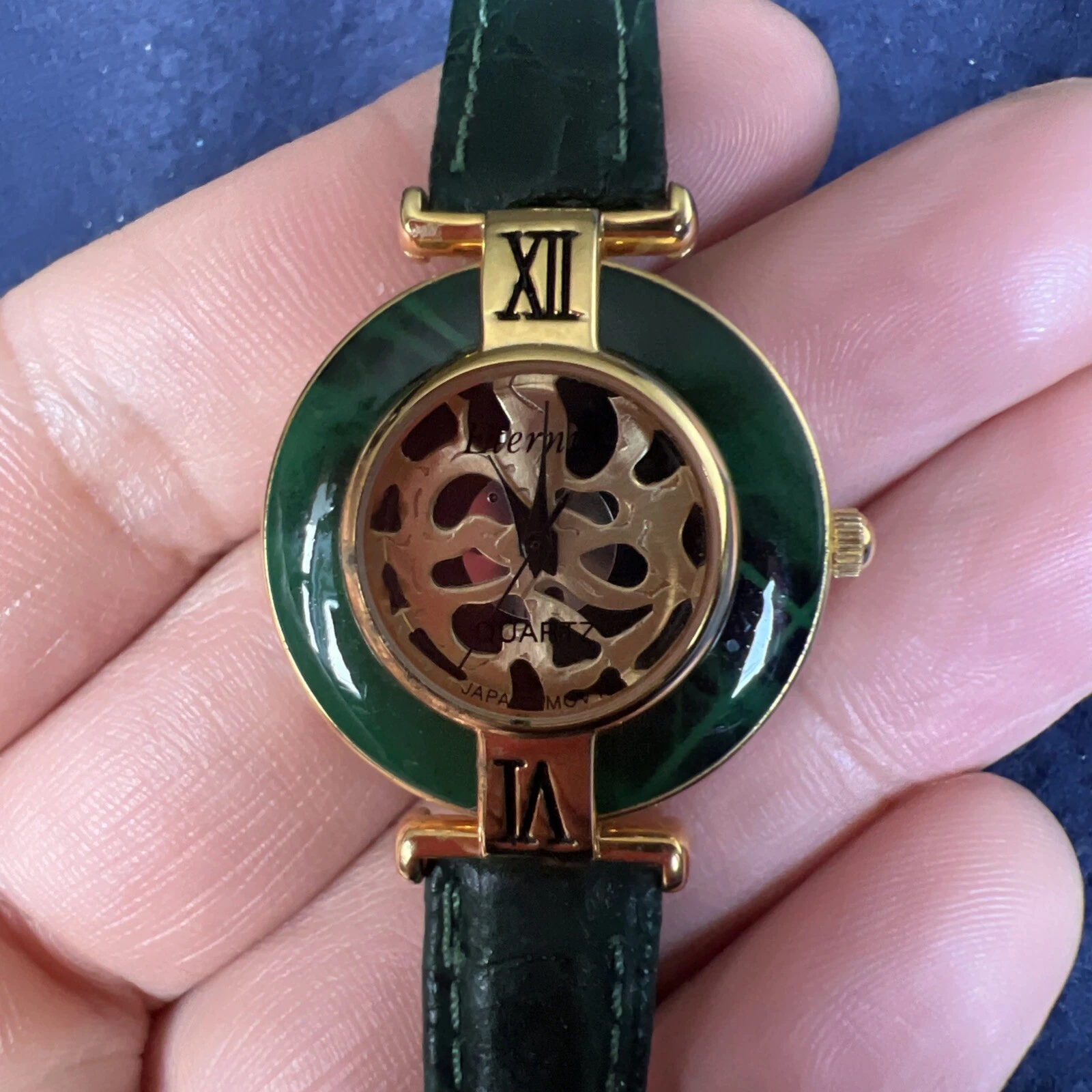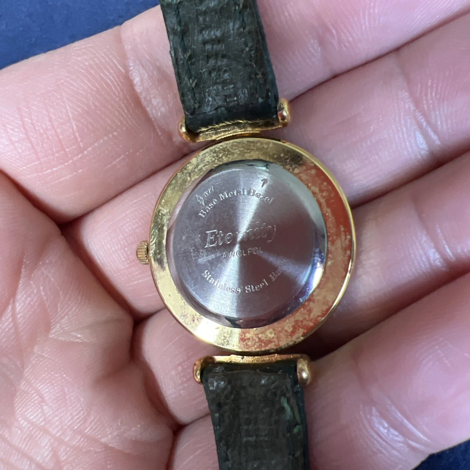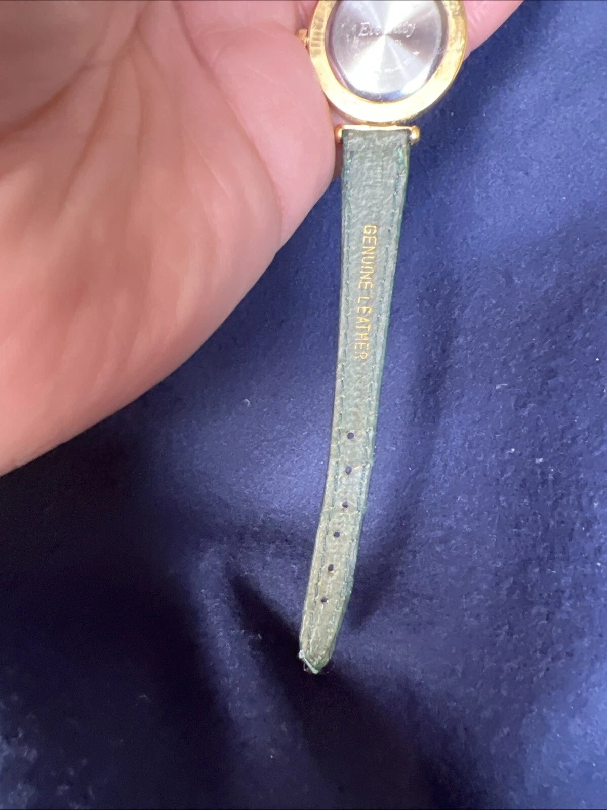 Vintage Eternity Watch Women Gold Tone Faceted Crystal Green Band NEW BATTERY