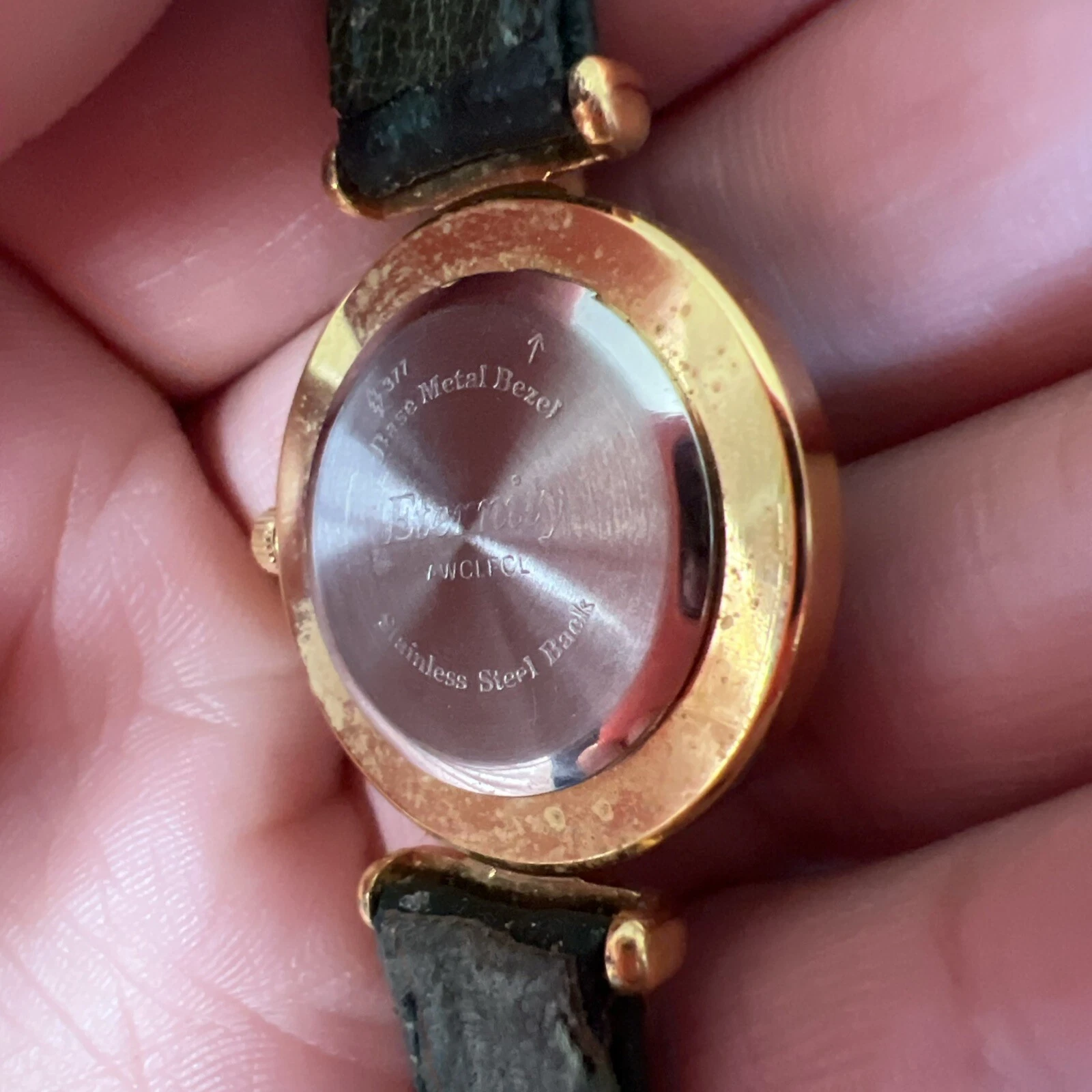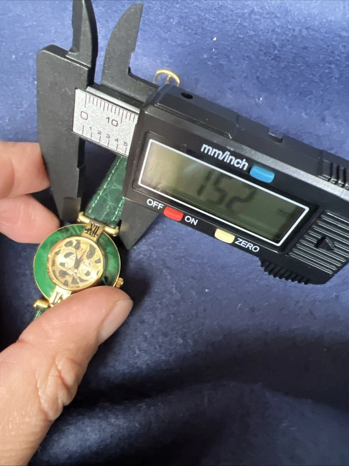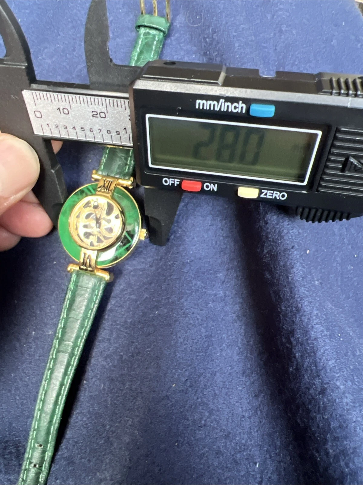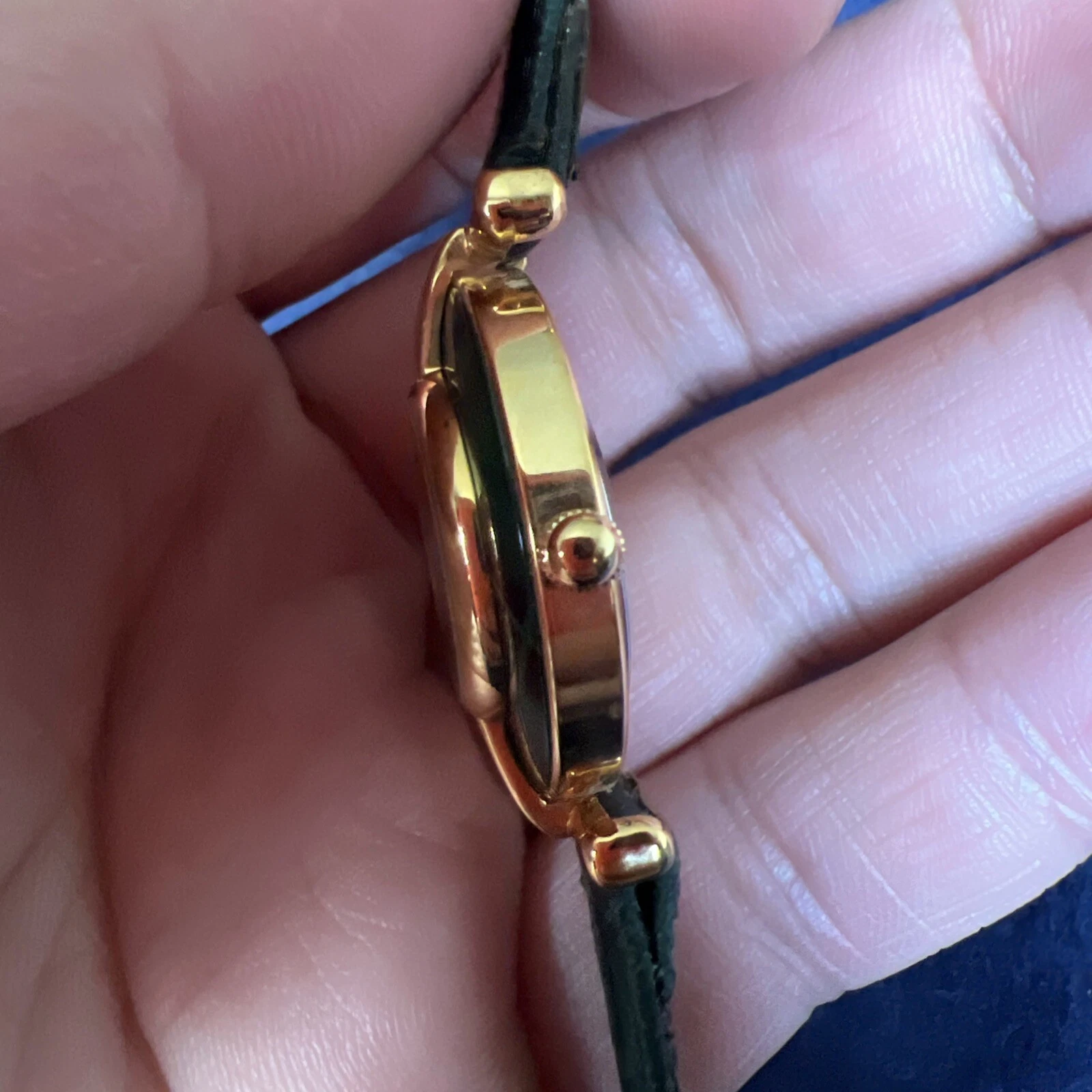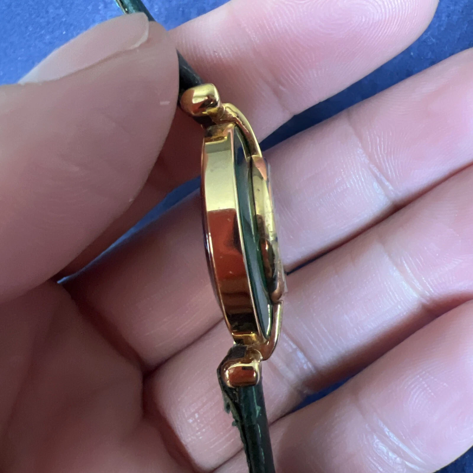 Vintage Eternity Watch Women Gold Tone Faceted Crystal Green Band NEW BATTERY