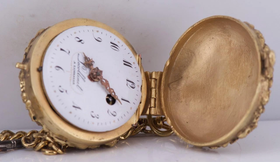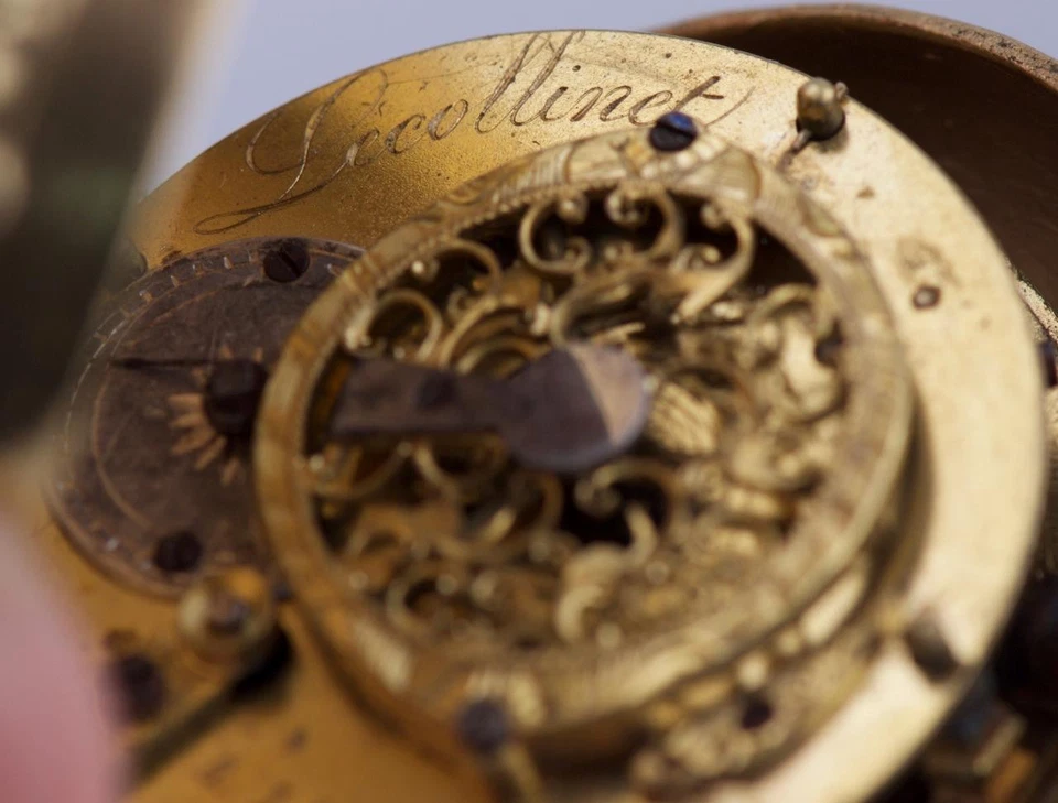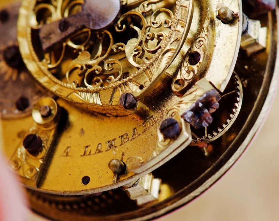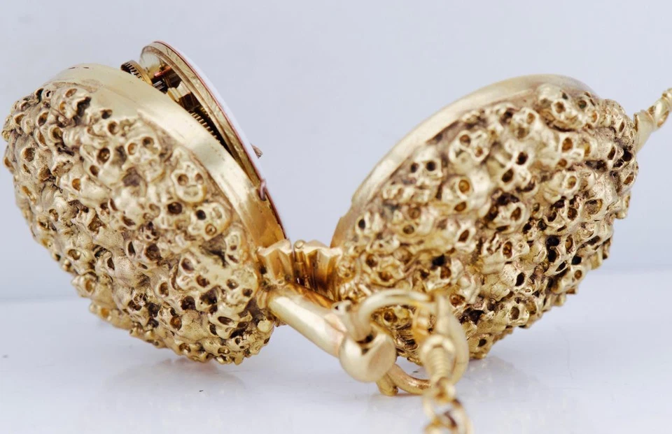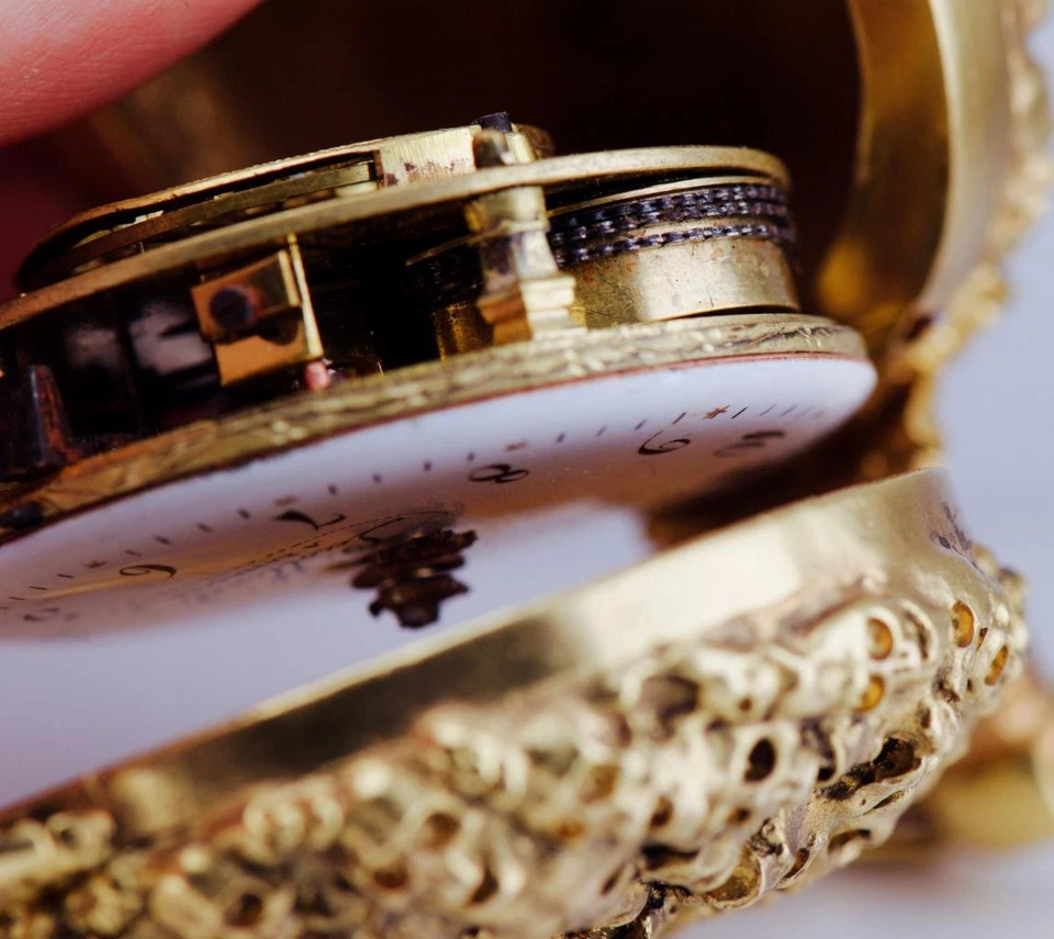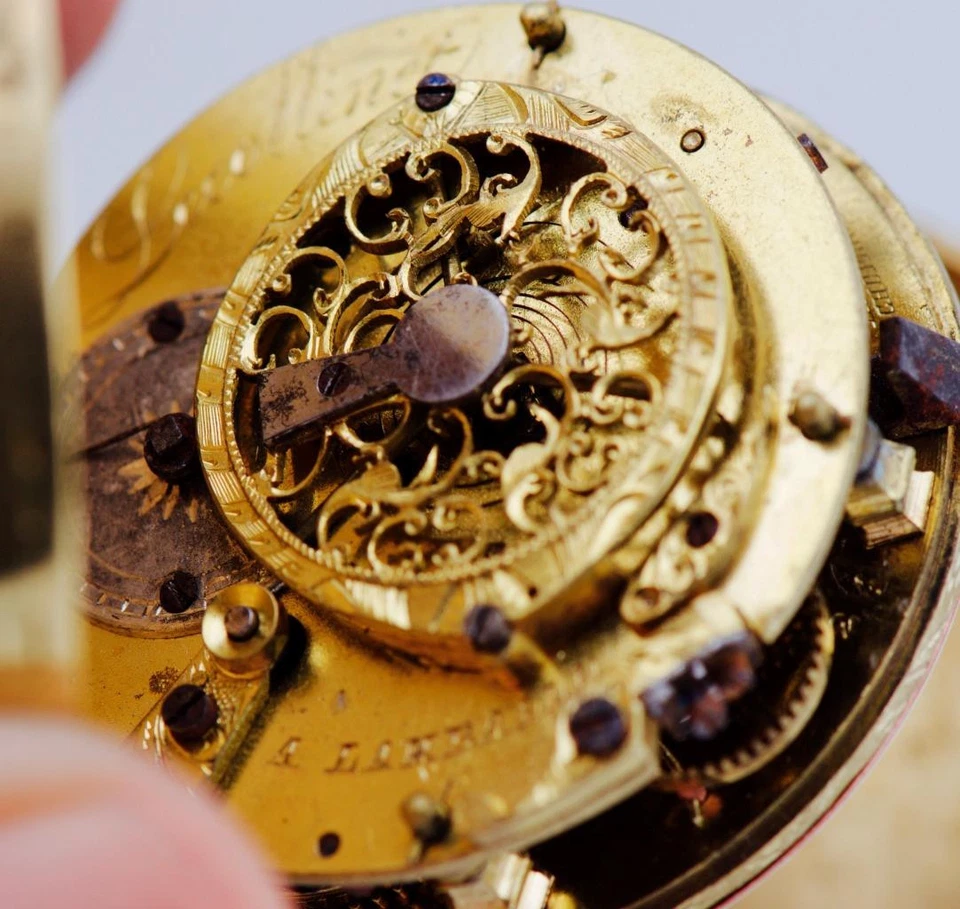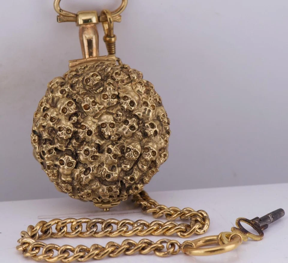 Antique French Pocket Watch Verge Fusee Skull 18k Gilt Ormolu Case c1730's RARE