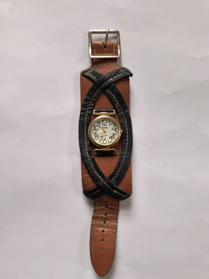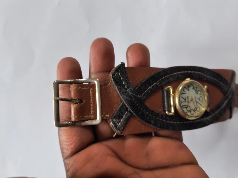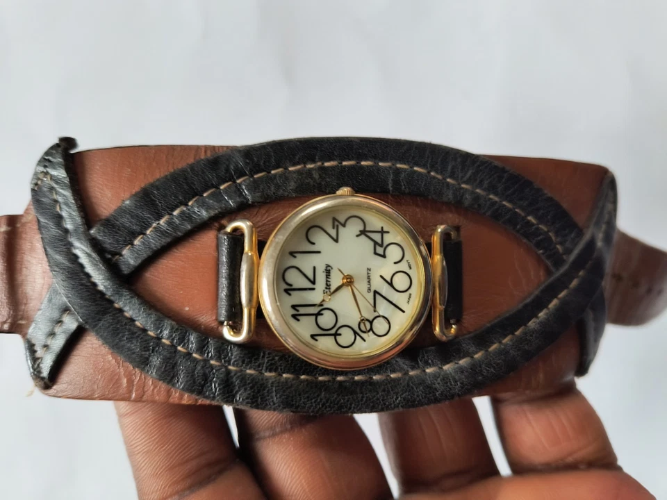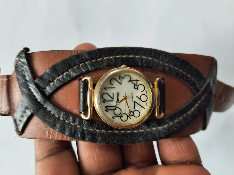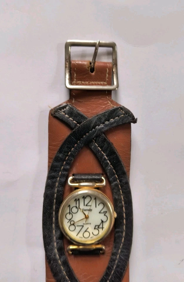 Eternity Japanese Quartz Analog Cream Dial Brown Leather Strap Ladies Wristwatch