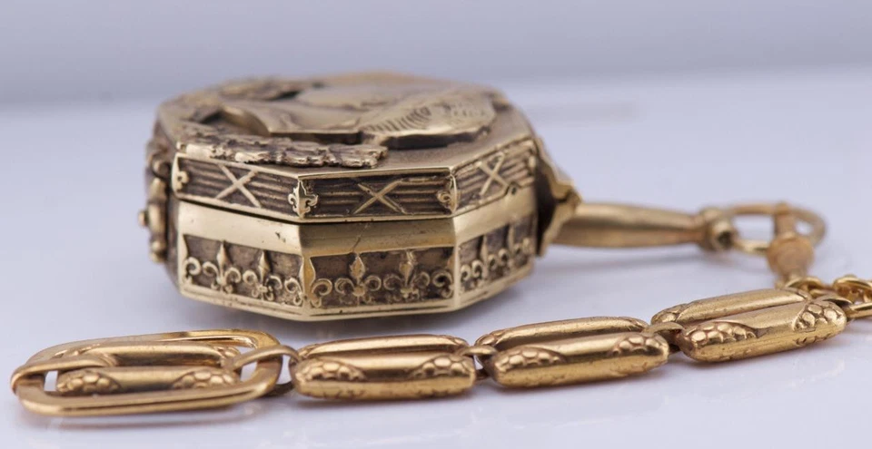 Antique Breguet Verge Fusee Octagonal Gilt Case Pocket Watch-Napoleon I c1800's