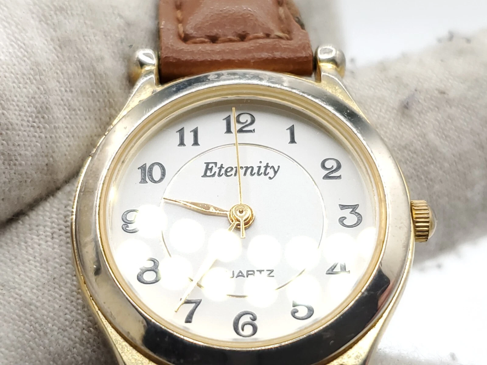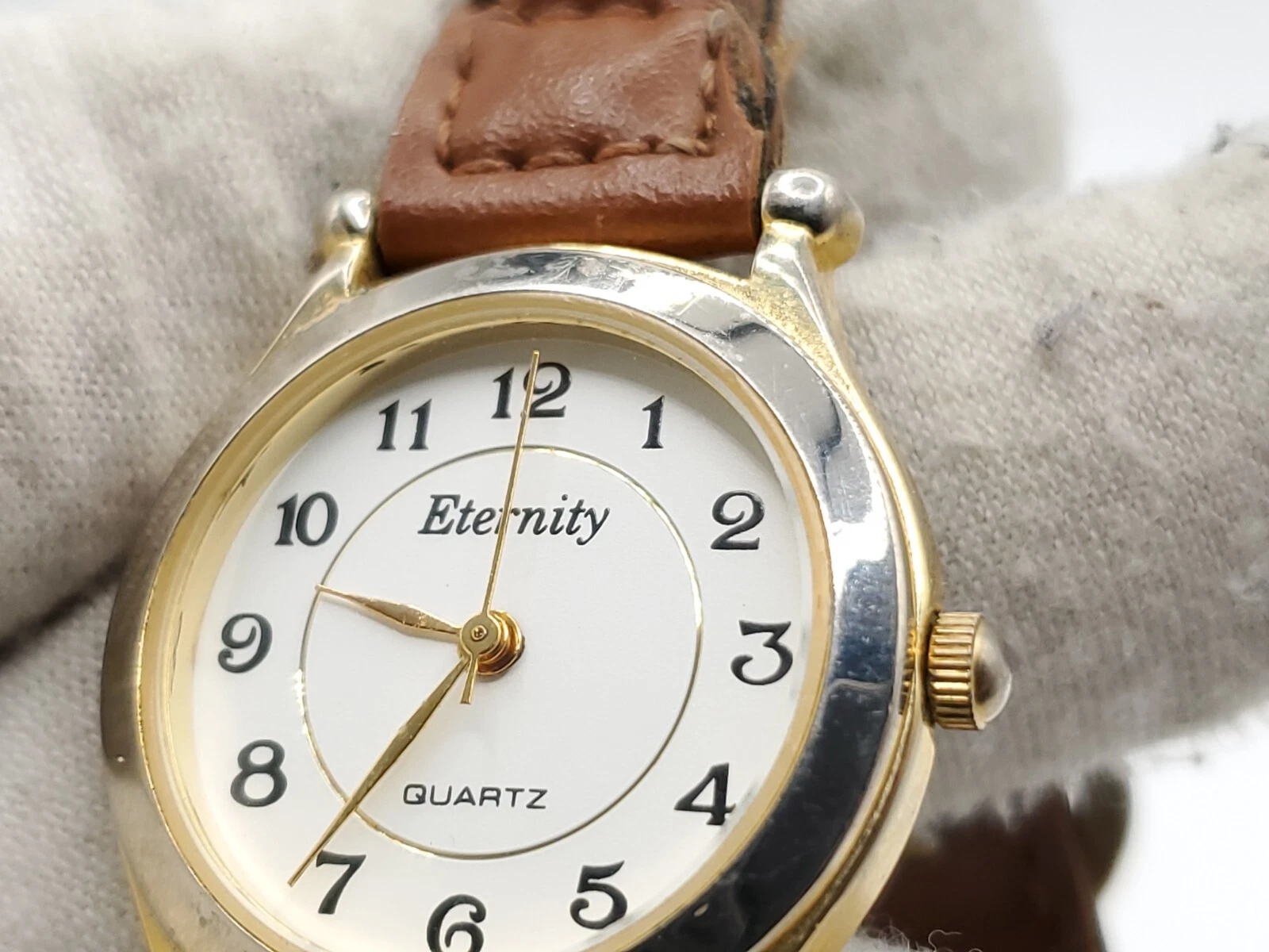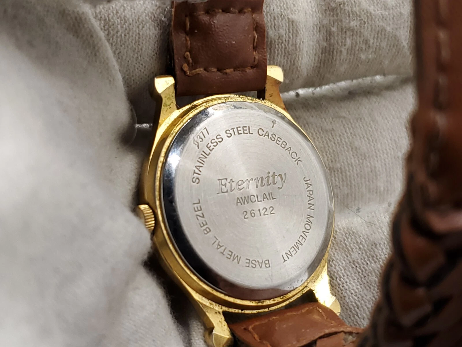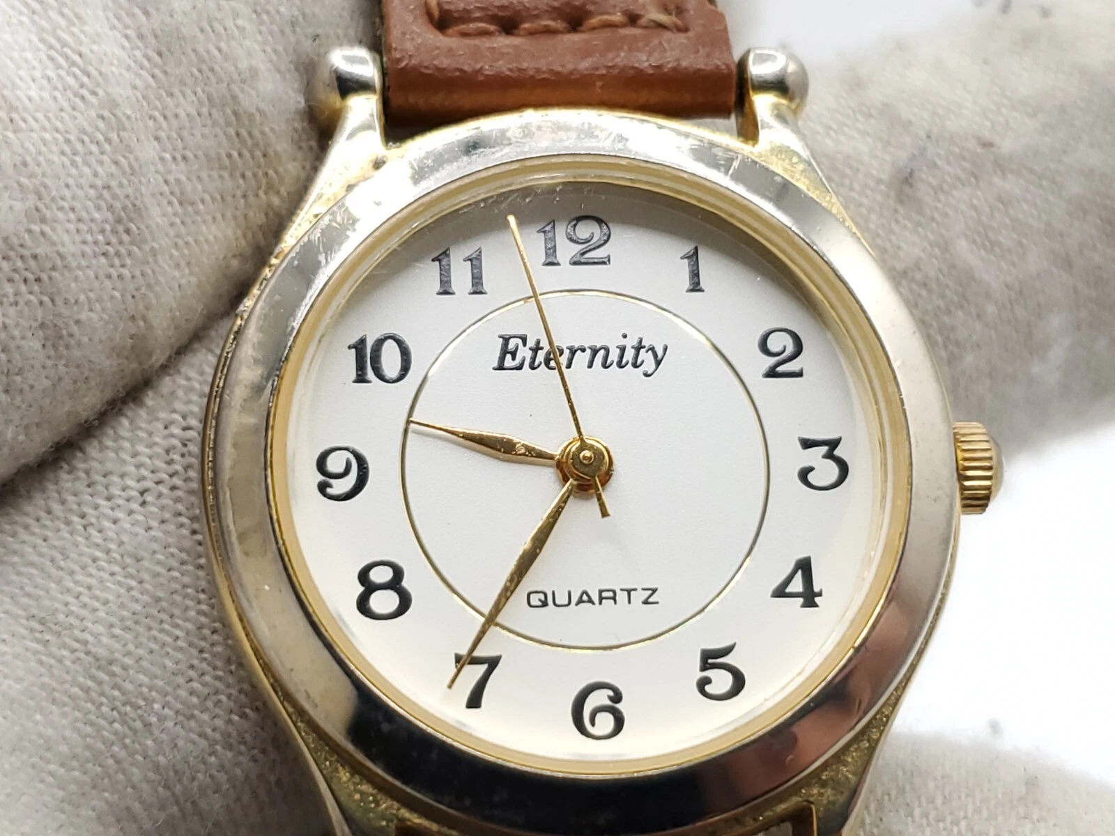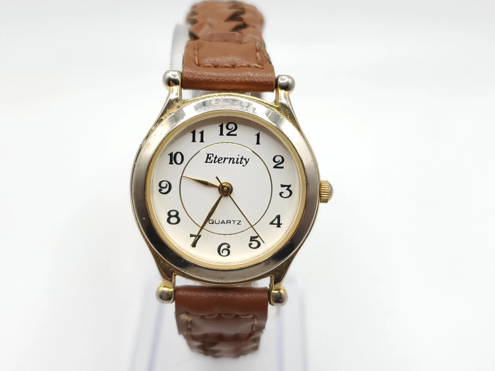 Eternity Quartz Watch Womens New Battery Gold Tone Brown Laced Band 27mm
