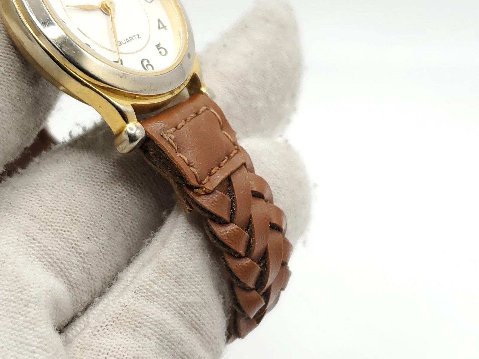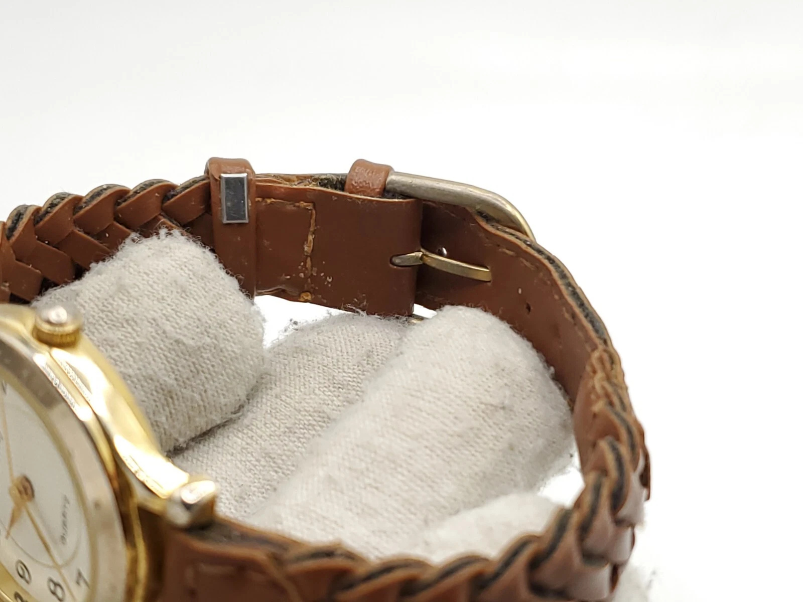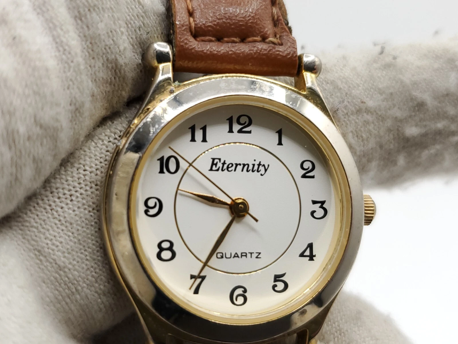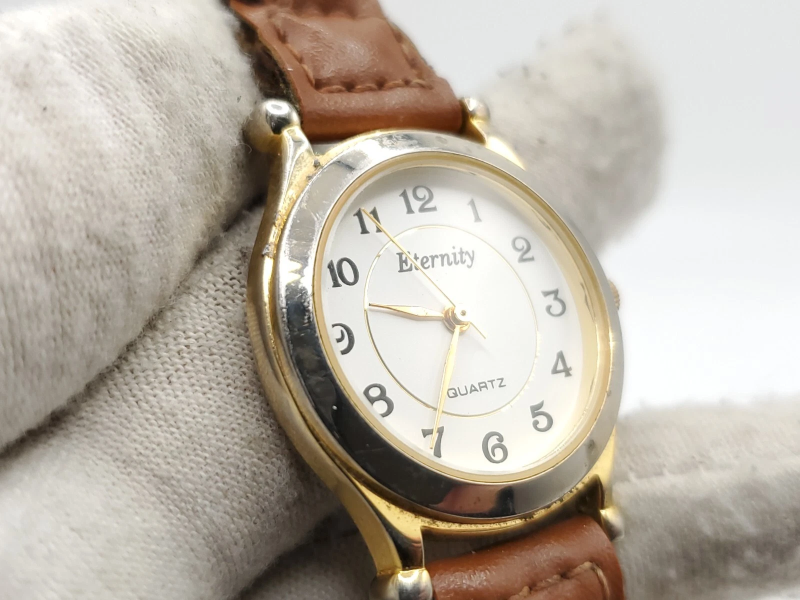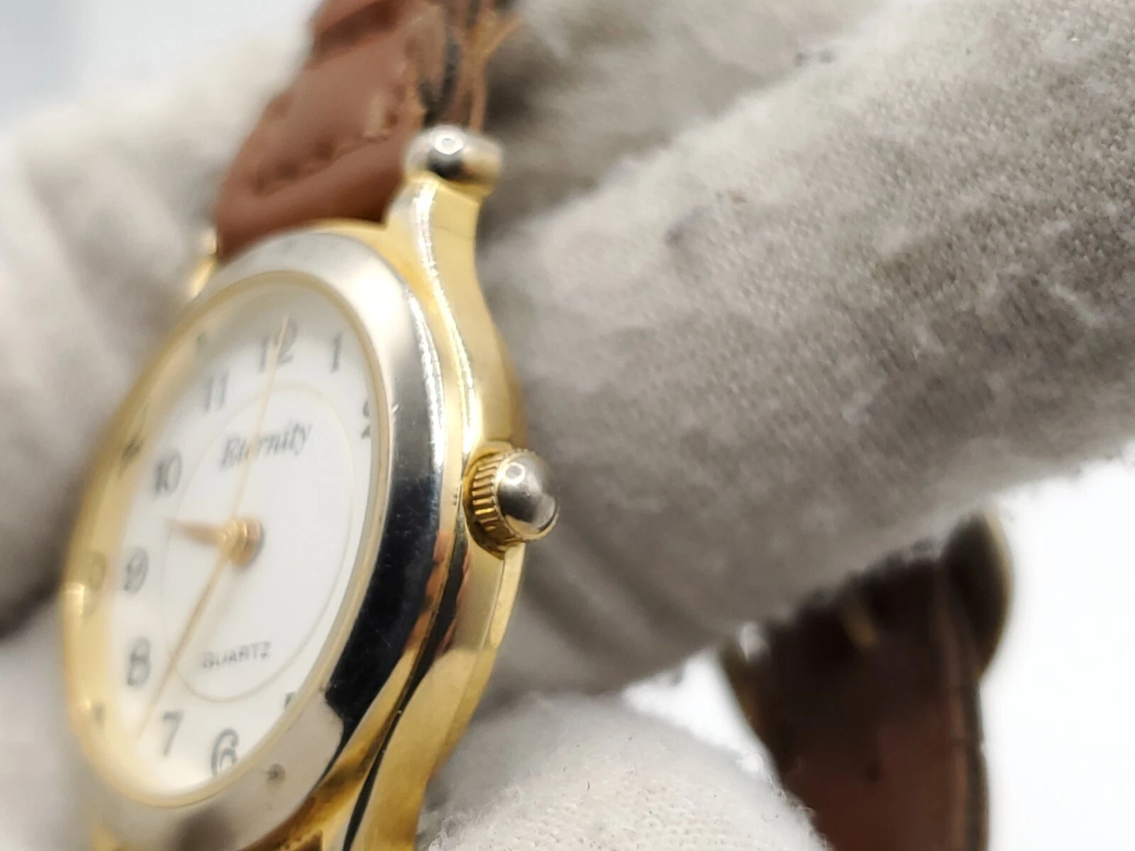 Eternity Quartz Watch Womens New Battery Gold Tone Brown Laced Band 27mm