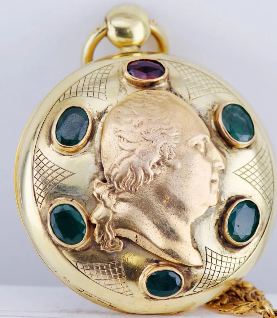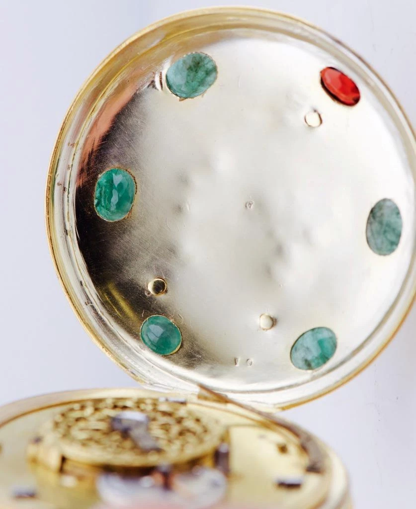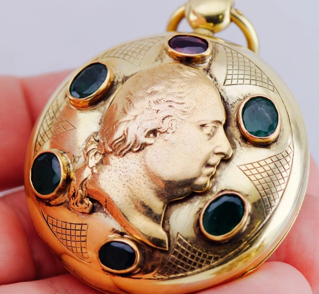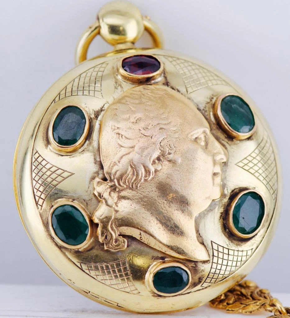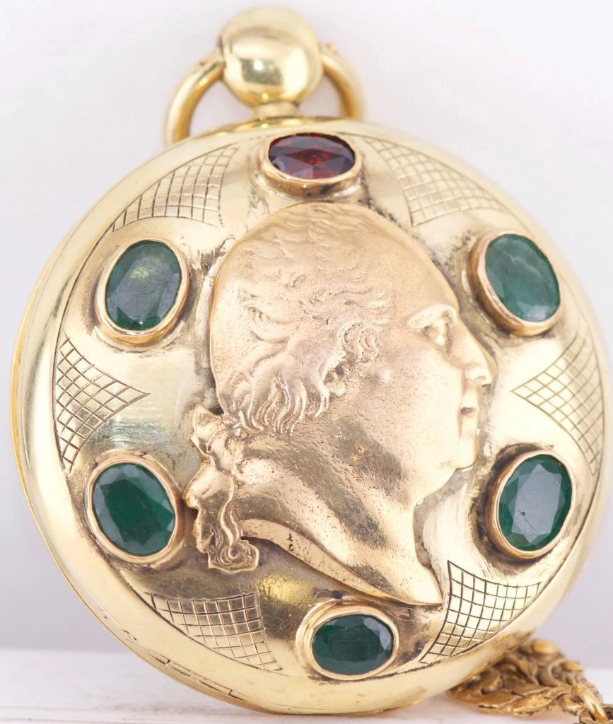 Antique Gilt Silver Emeralds Award Verge Fusee Pocket Watch for King Louis XVIII