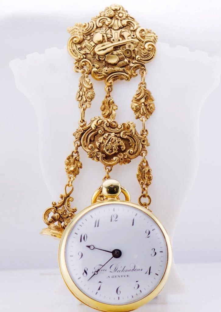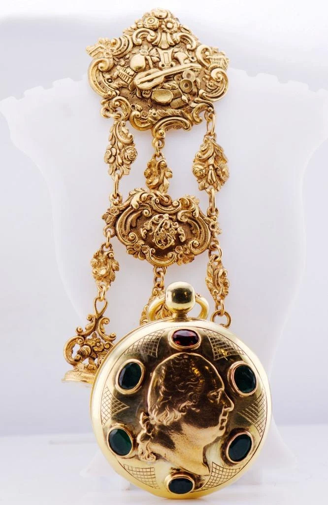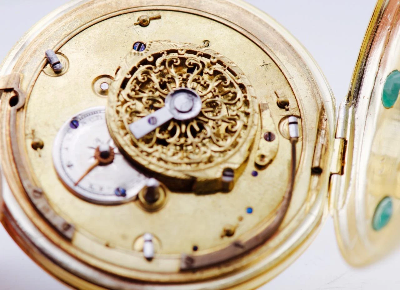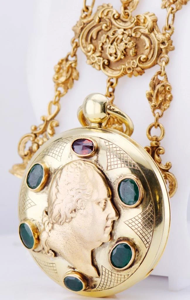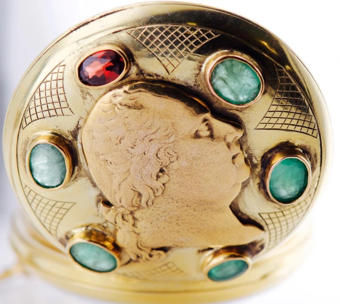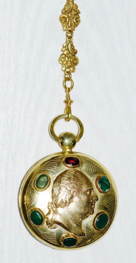 Antique Gilt Silver Emeralds Award Verge Fusee Pocket Watch for King Louis XVIII