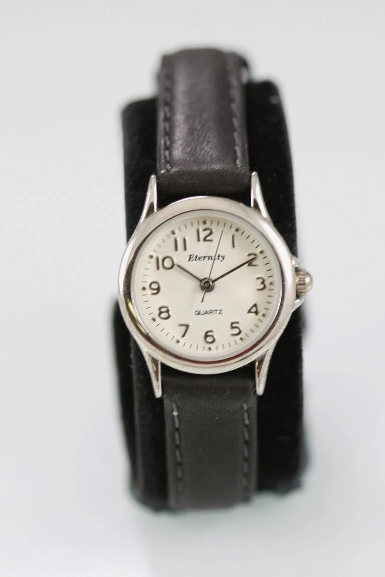 Eternity Women Watch Silver Stainless Steel WR Black Leather Batt White Quartz