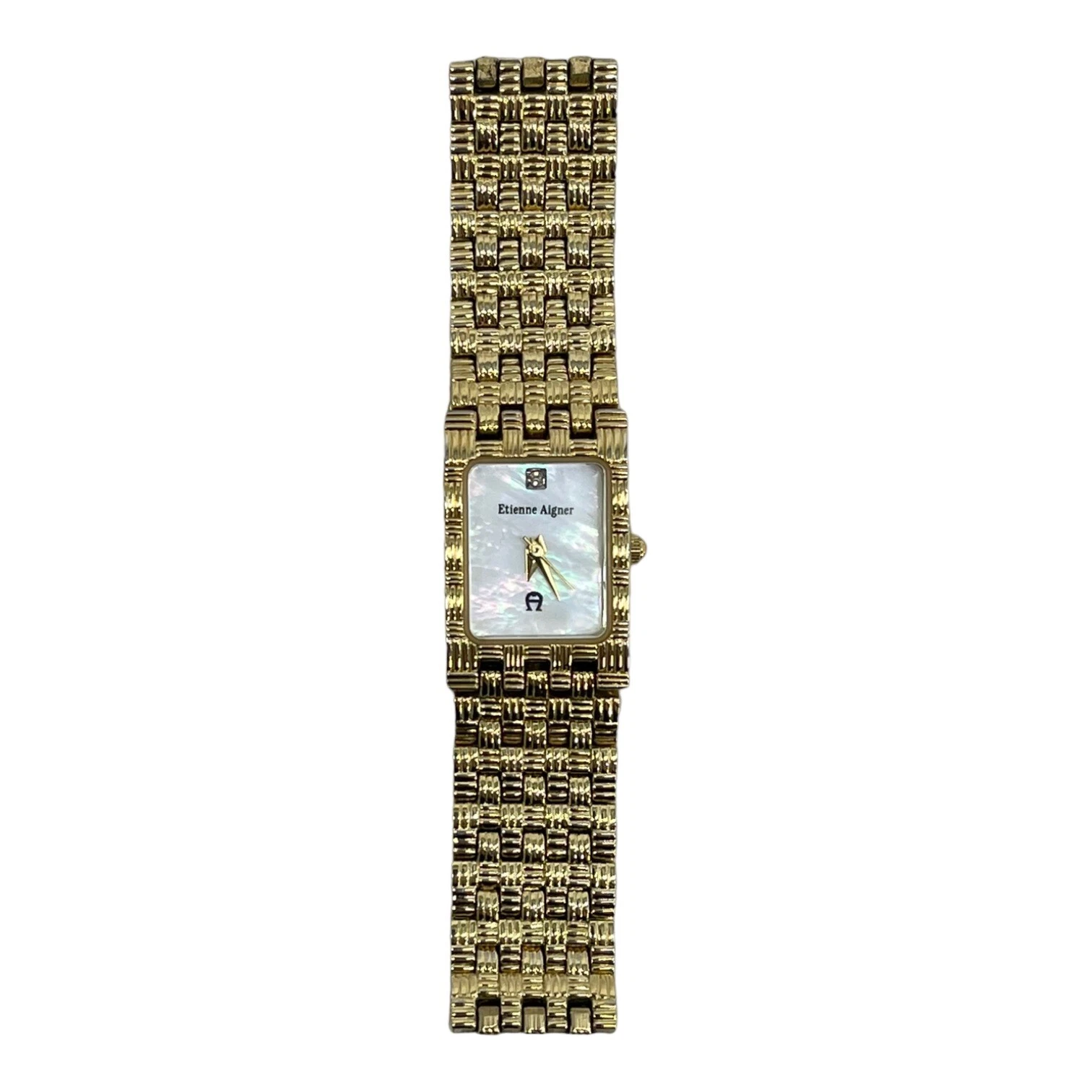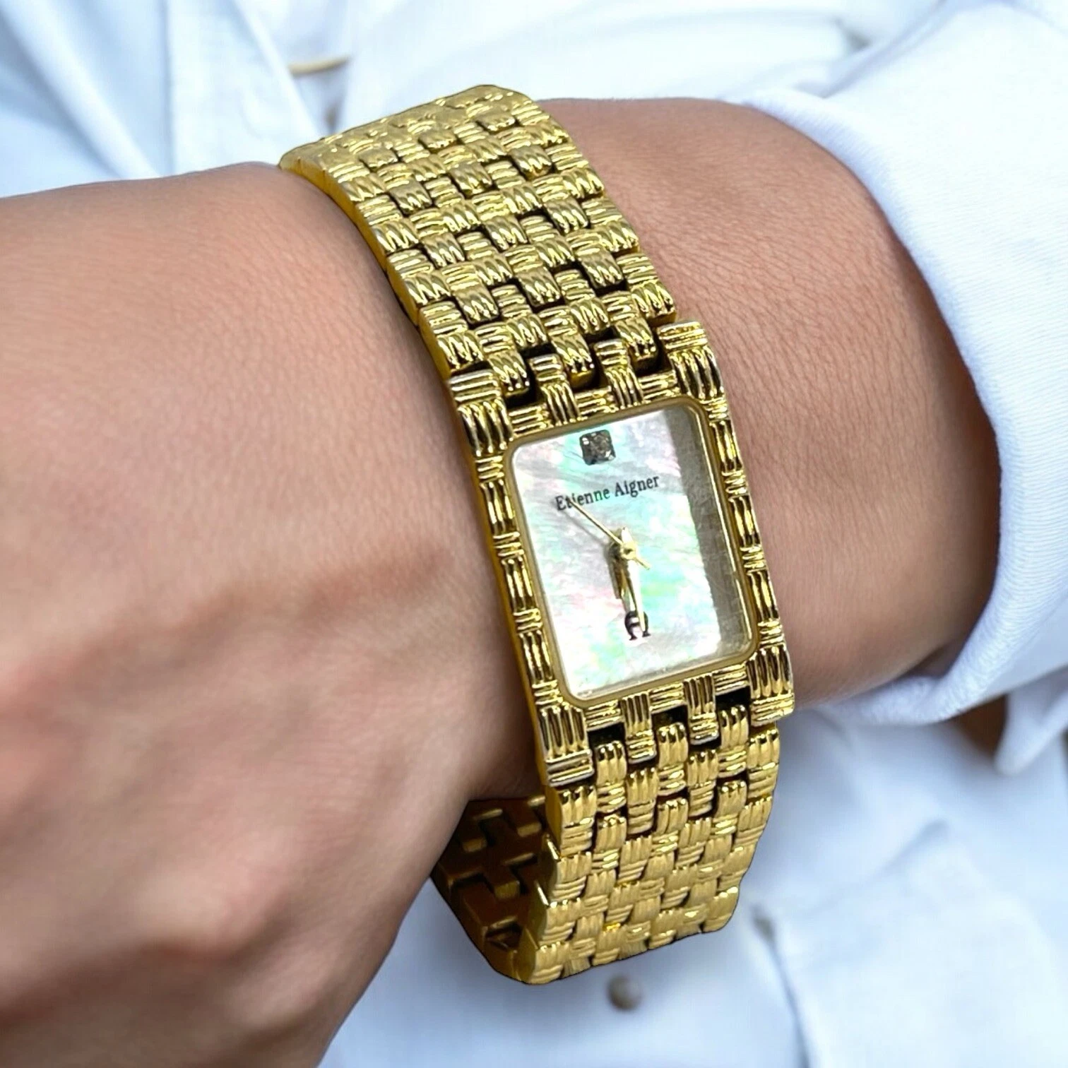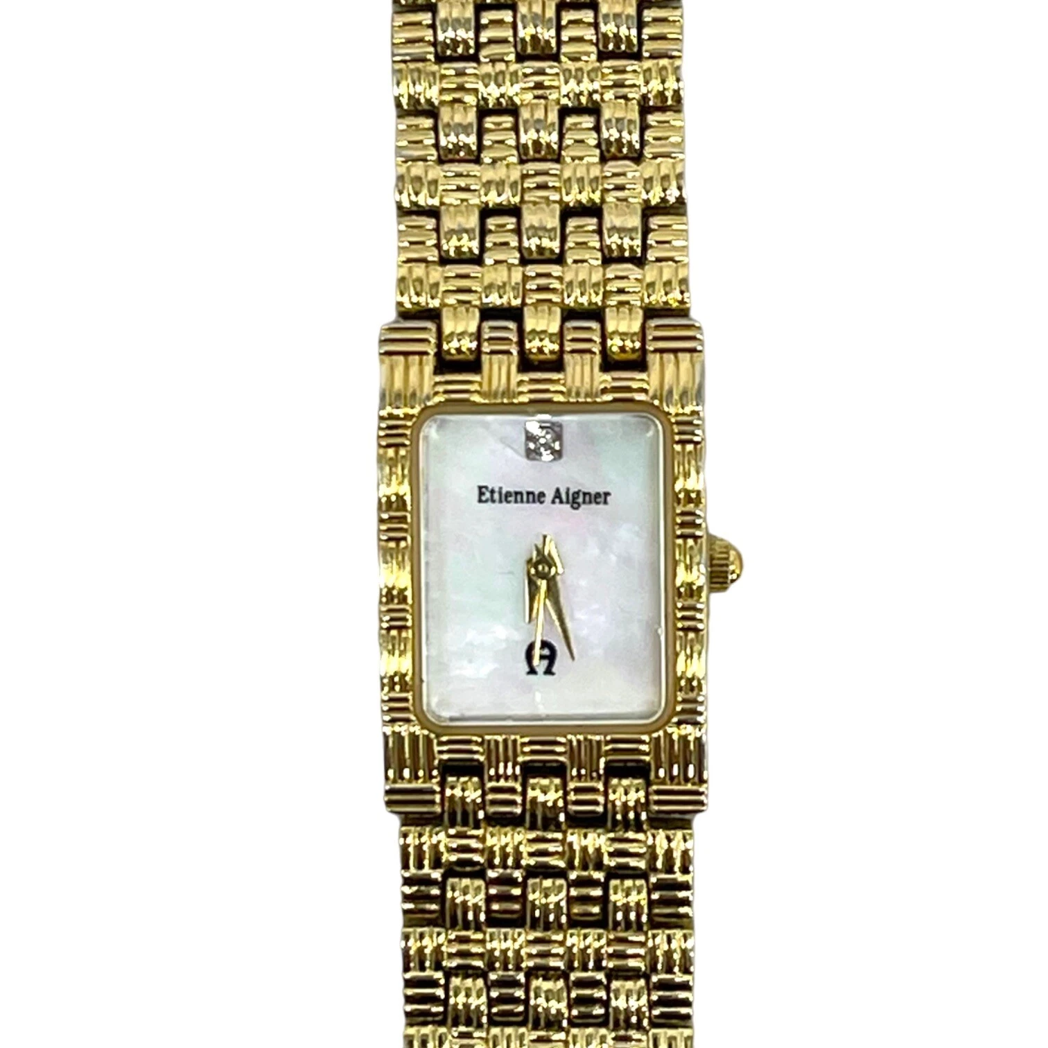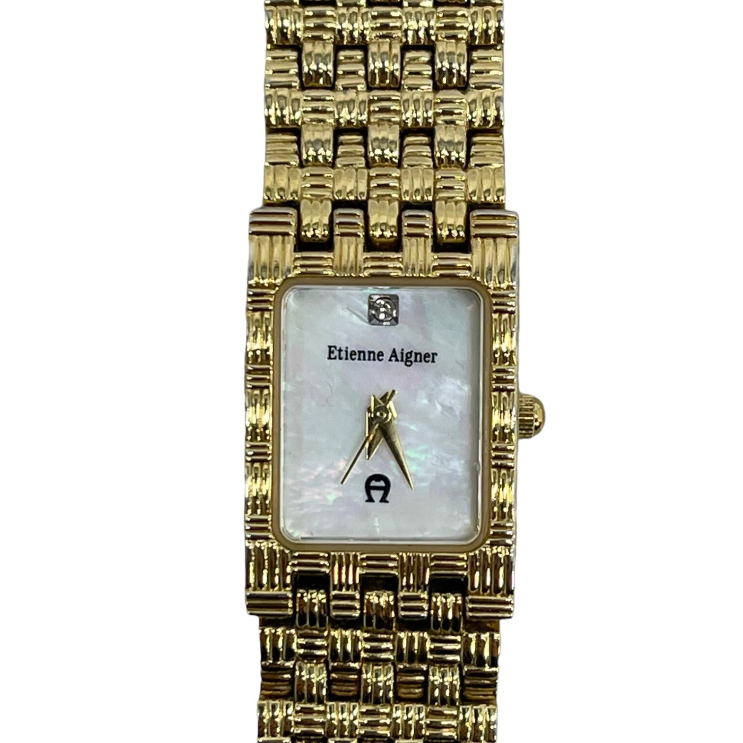 Vintage 80s 90s ETIENNE AIGNER Watch Goldtone Quartz Mother Of Pearl Diamond