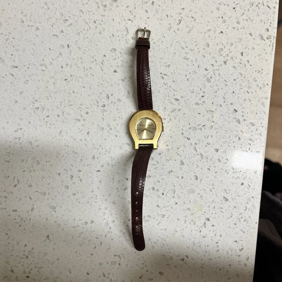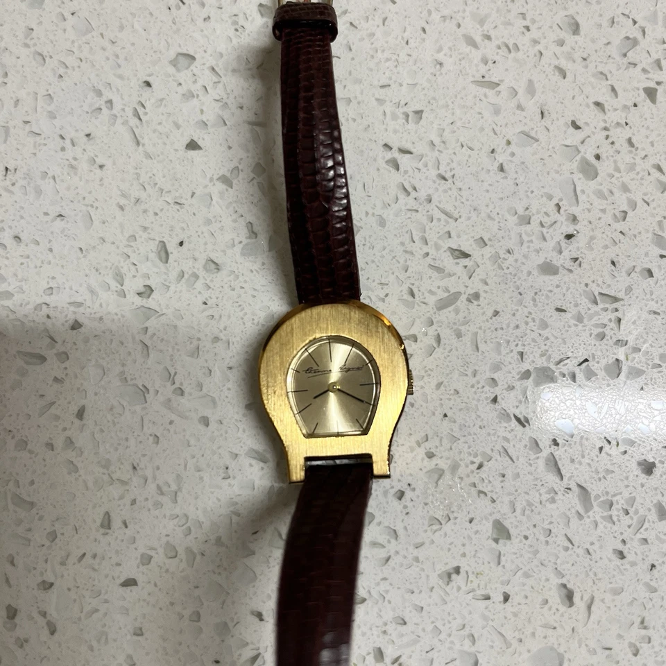 Vintage Etienne Aigner Goldtone Women’s Watch Lizard Skin Band Needs Battery