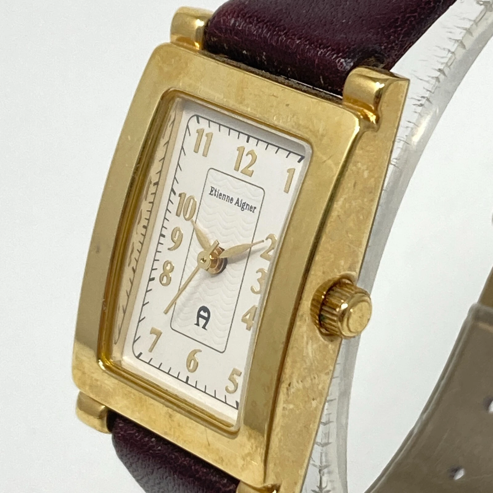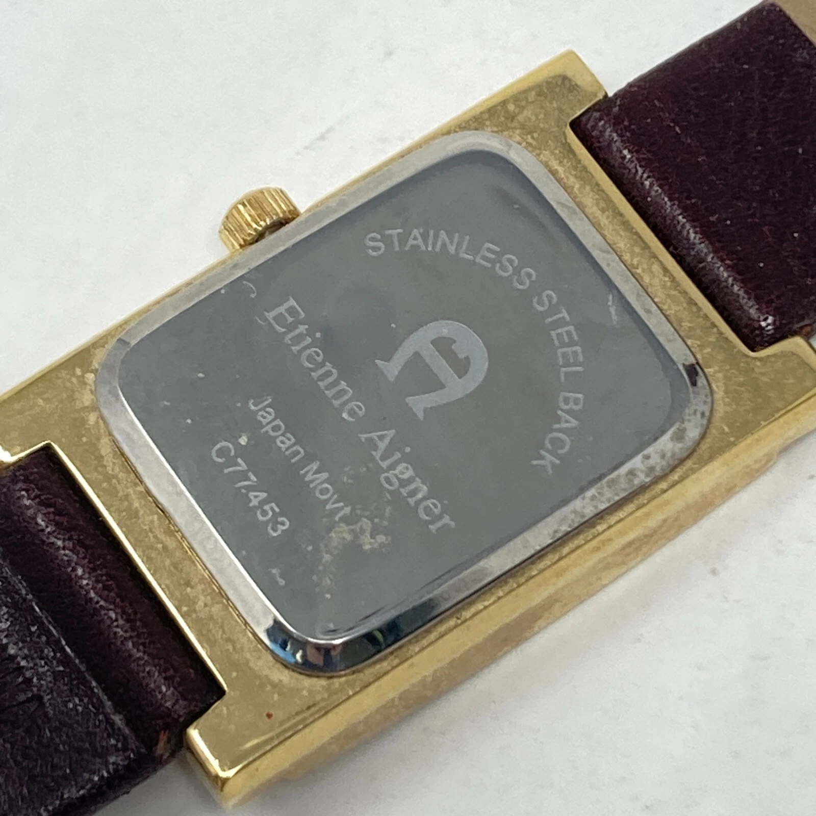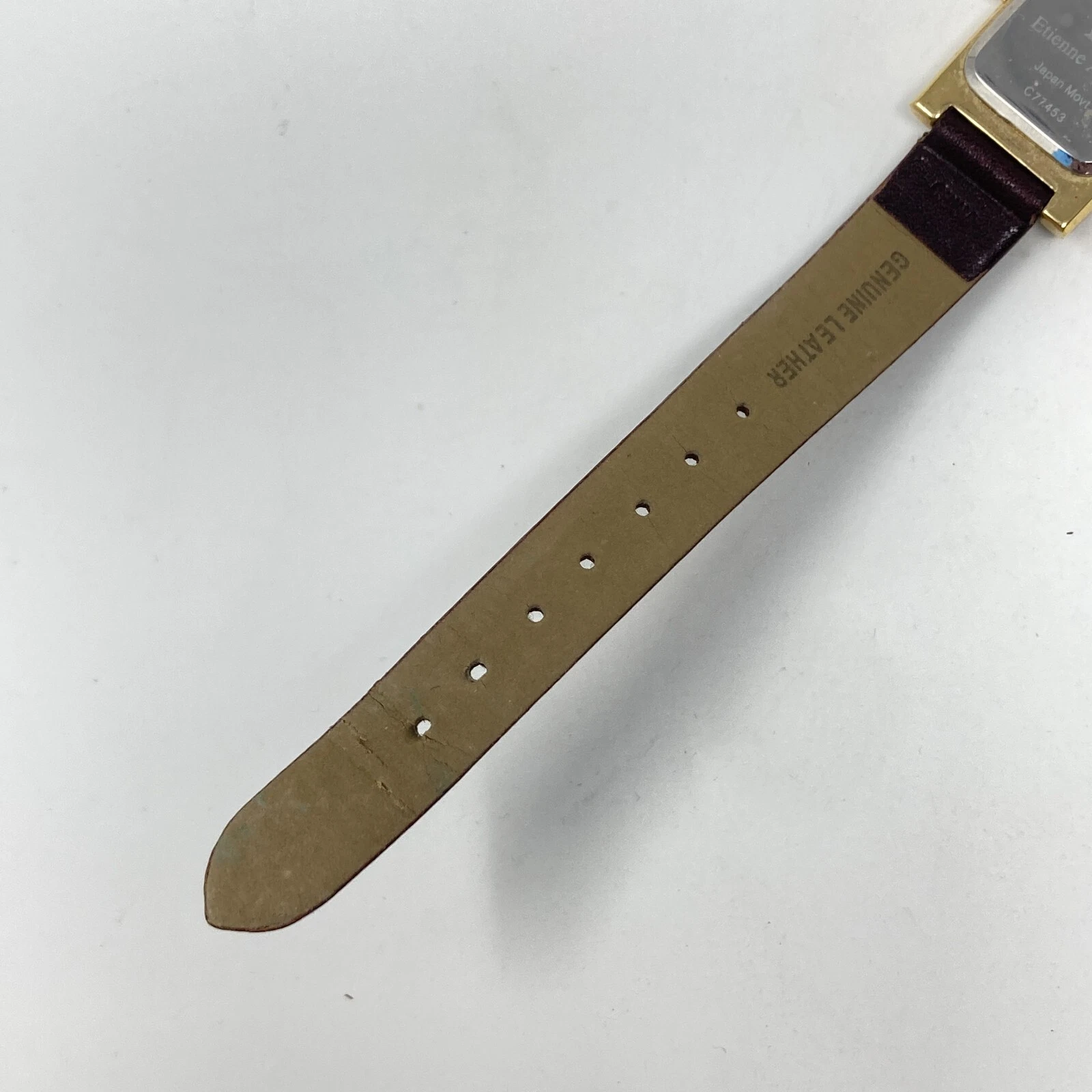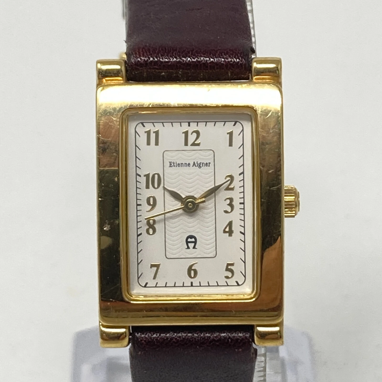 Etienne Aigner Tank Watch Women 20mm Gold Tone Brown Leather New Battery 7.5"