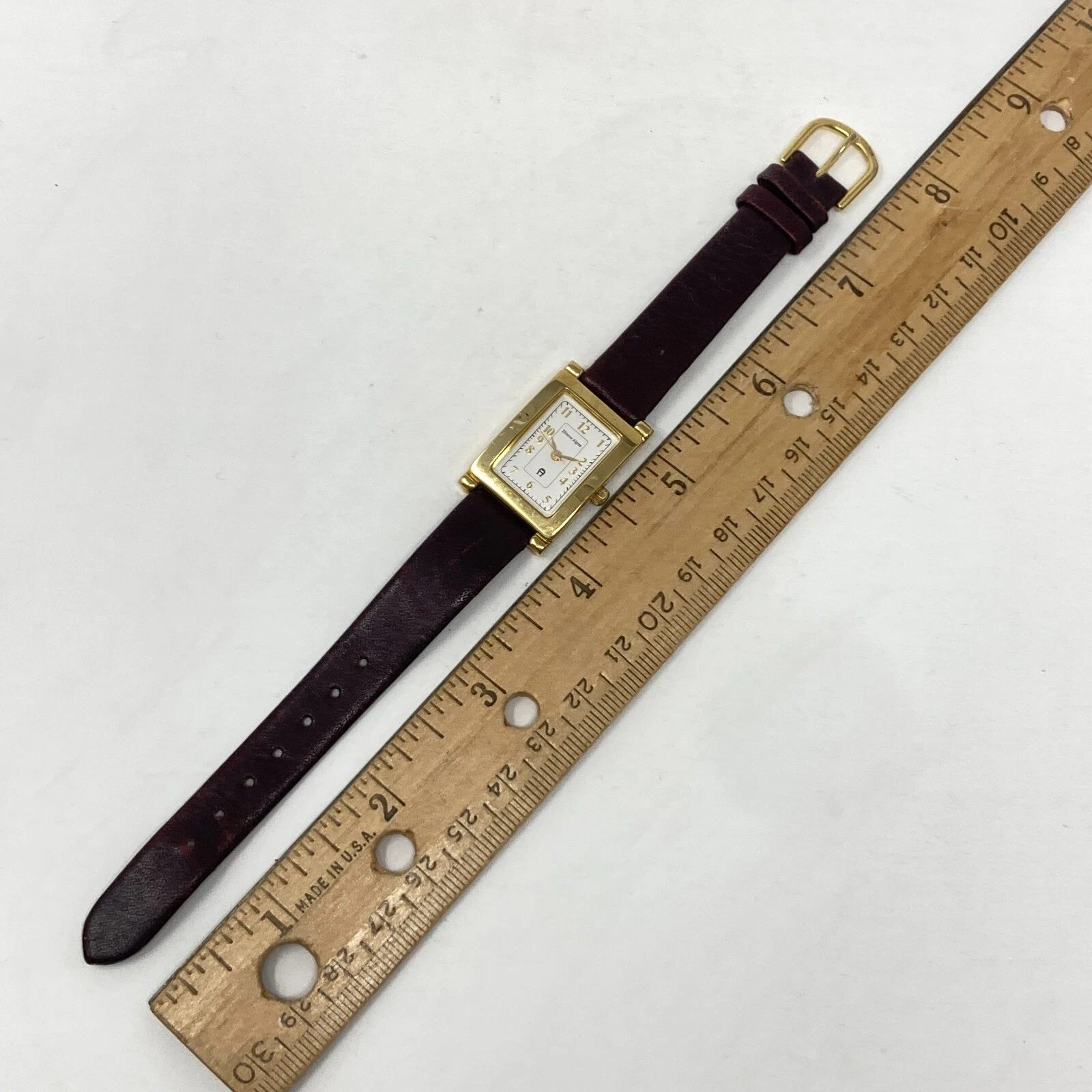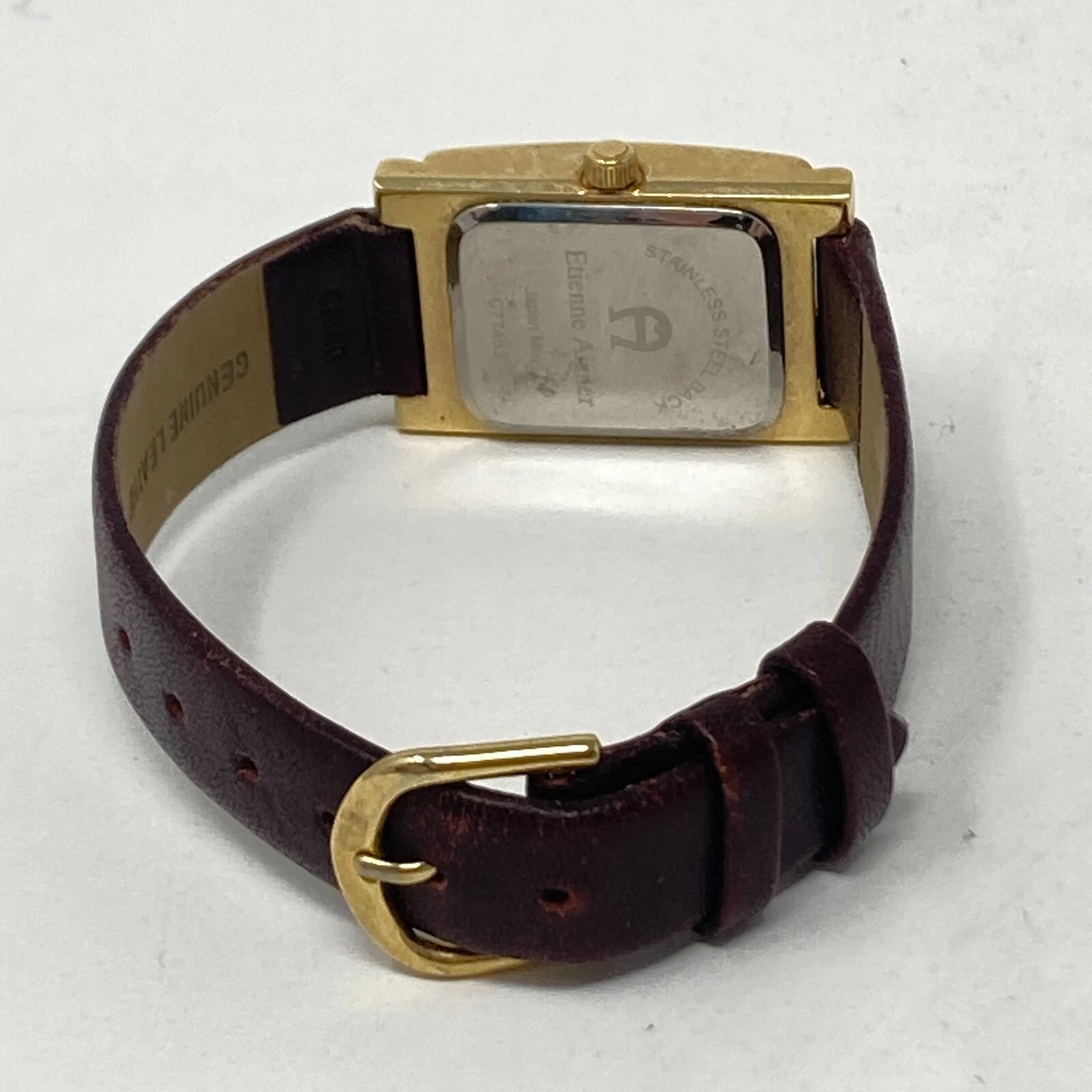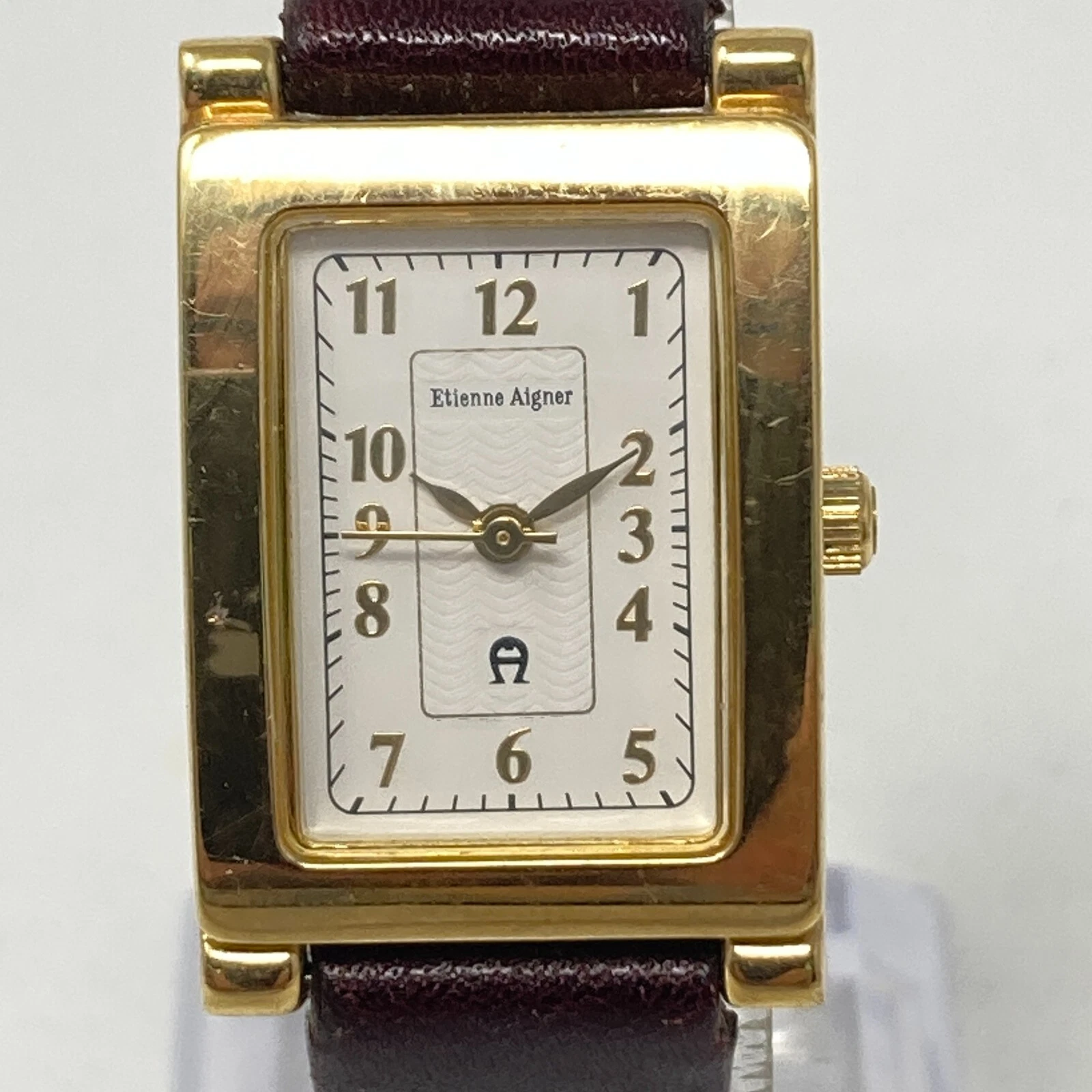 Etienne Aigner Tank Watch Women 20mm Gold Tone Brown Leather New Battery 7.5"