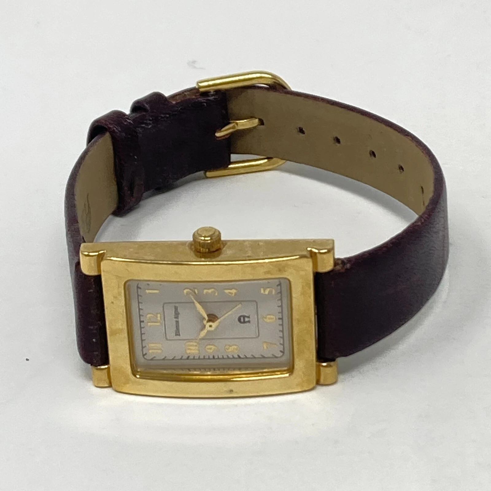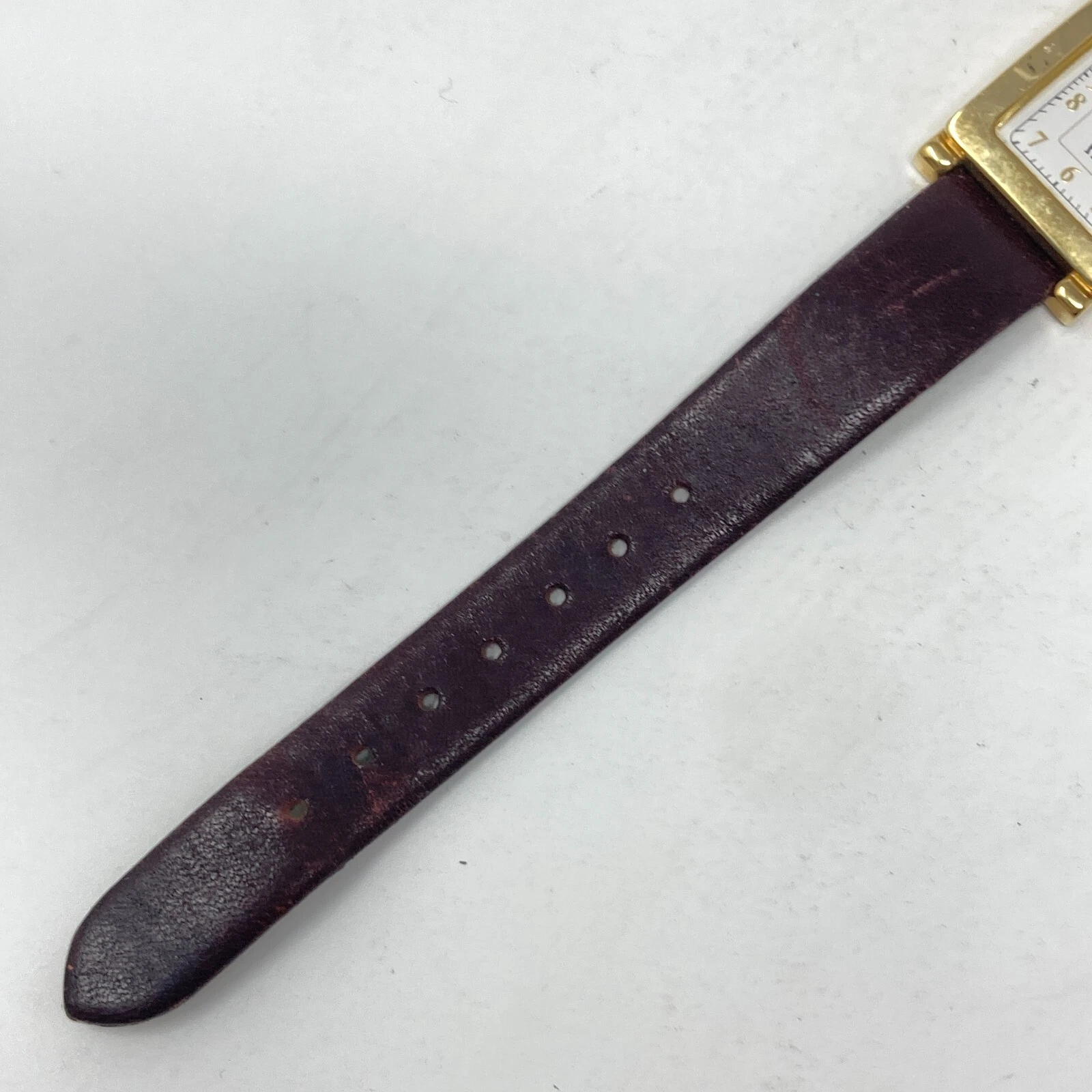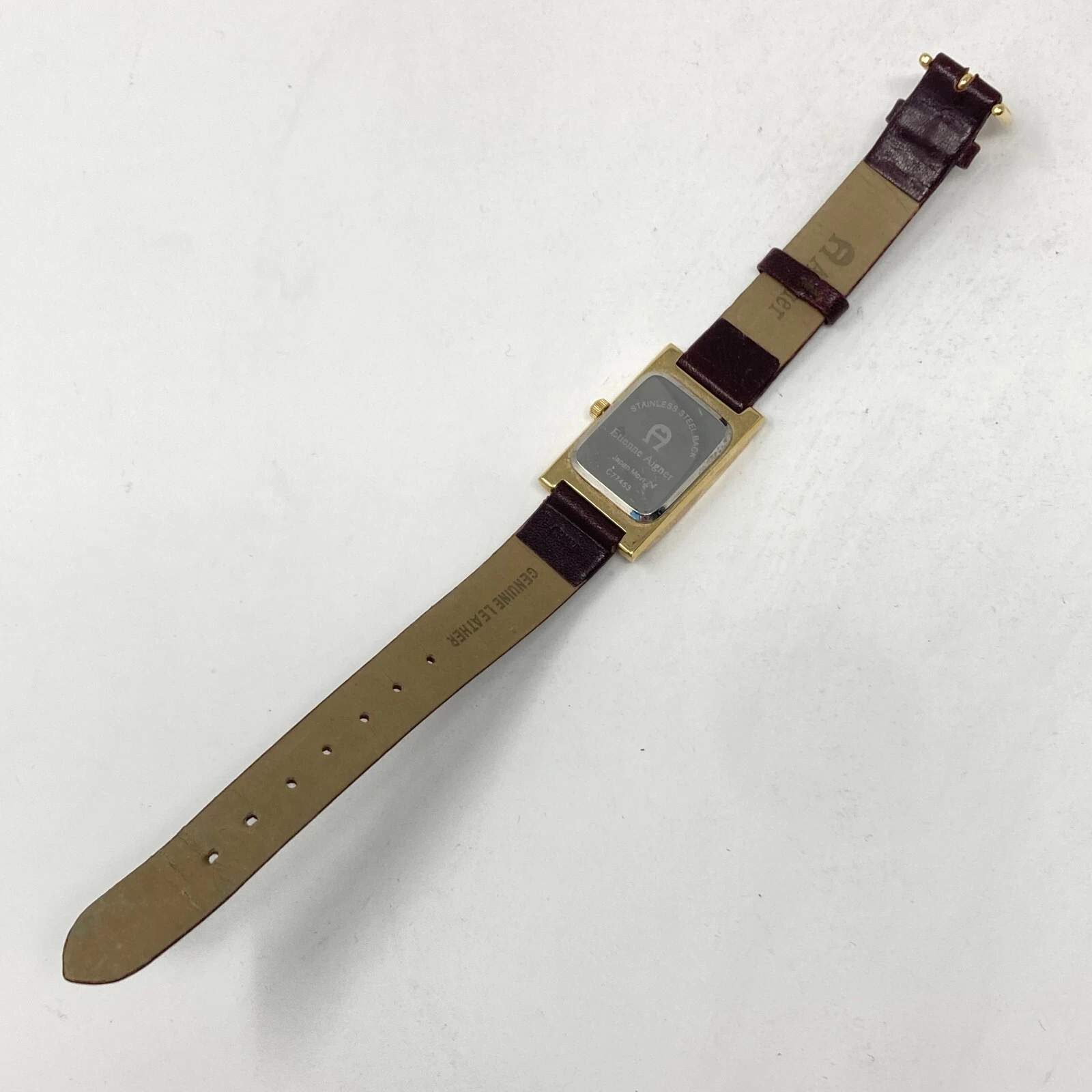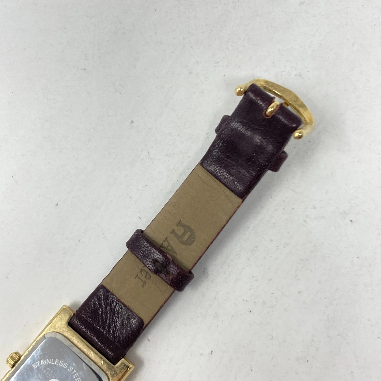 Etienne Aigner Tank Watch Women 20mm Gold Tone Brown Leather New Battery 7.5"