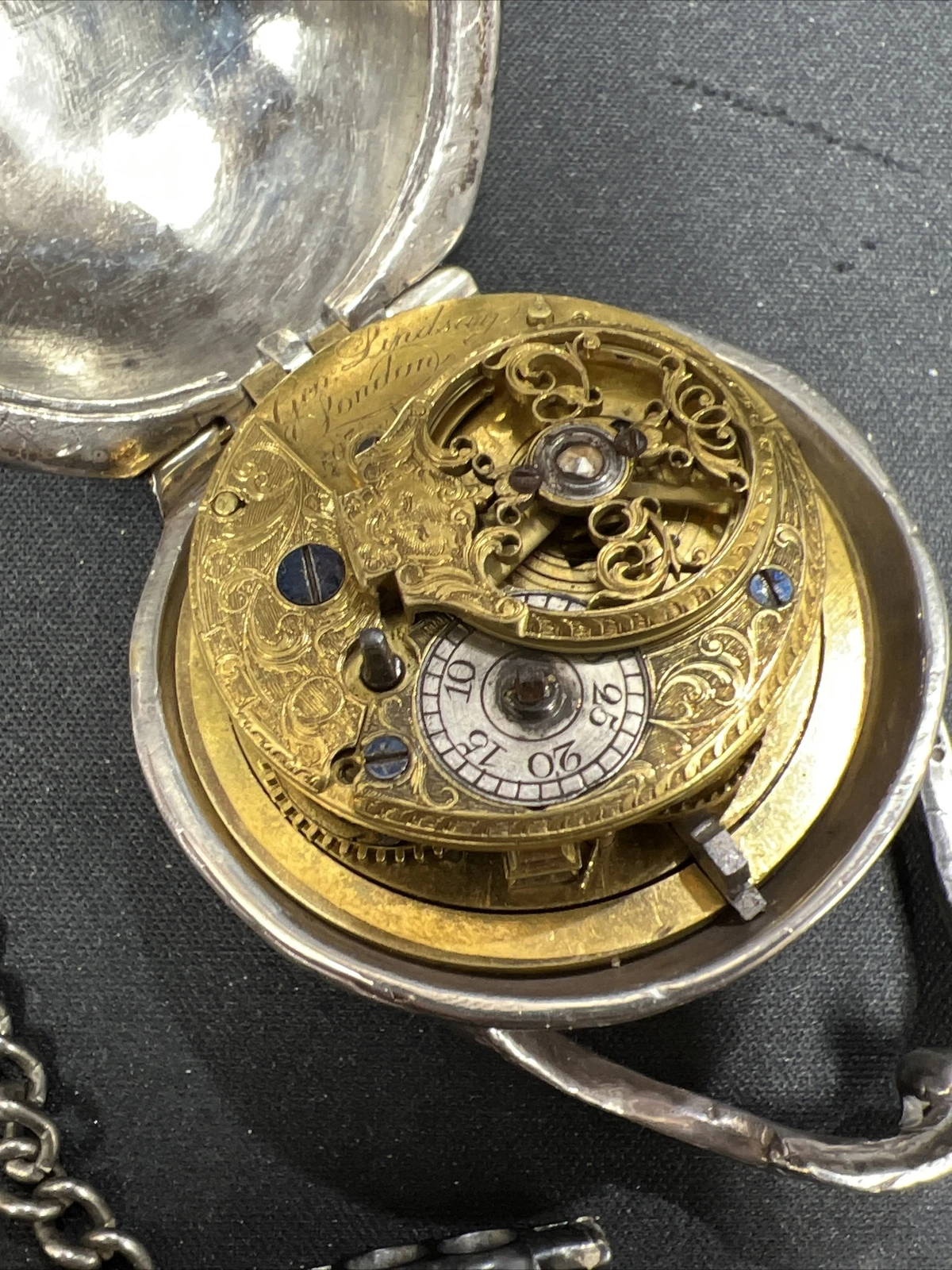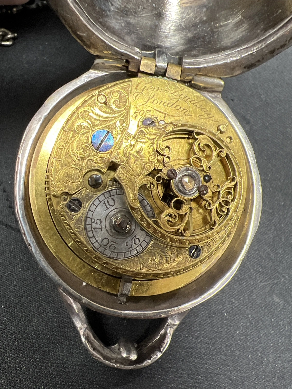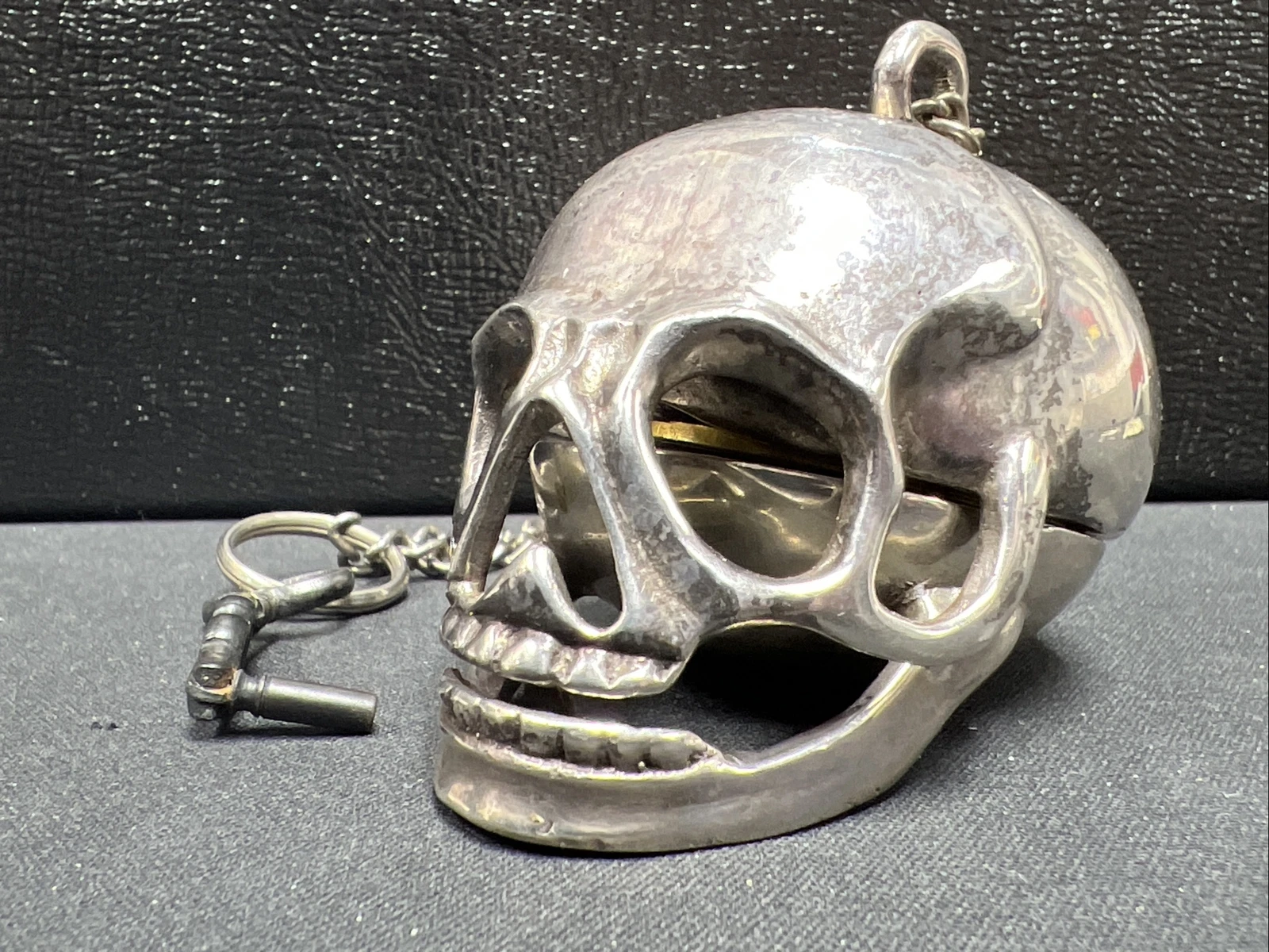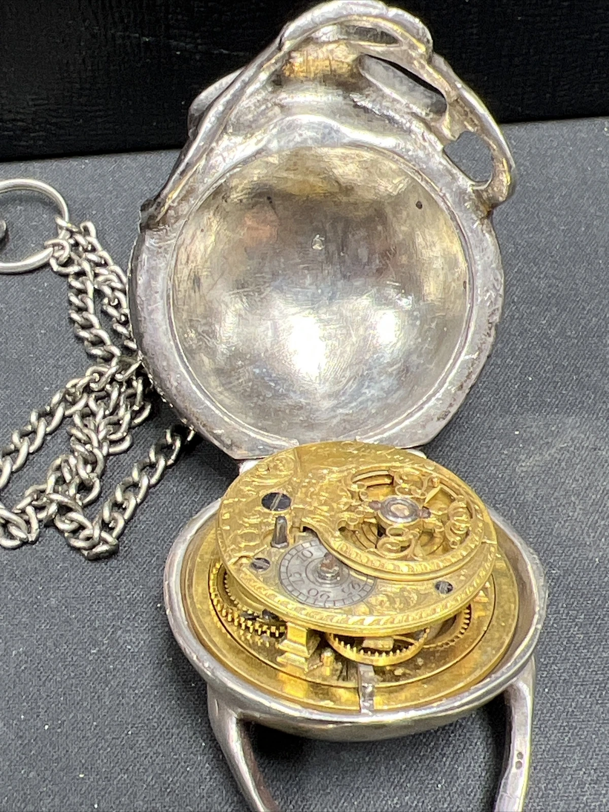 1700s George Lindsey Chain Driven Sterling Silver Skull Case & Dial Pocket Watch