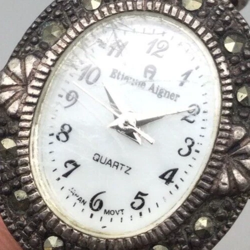 Etienne Aigner Watch Women 21mm Silver Tone Marcasite MOP Dial New Battery 7"