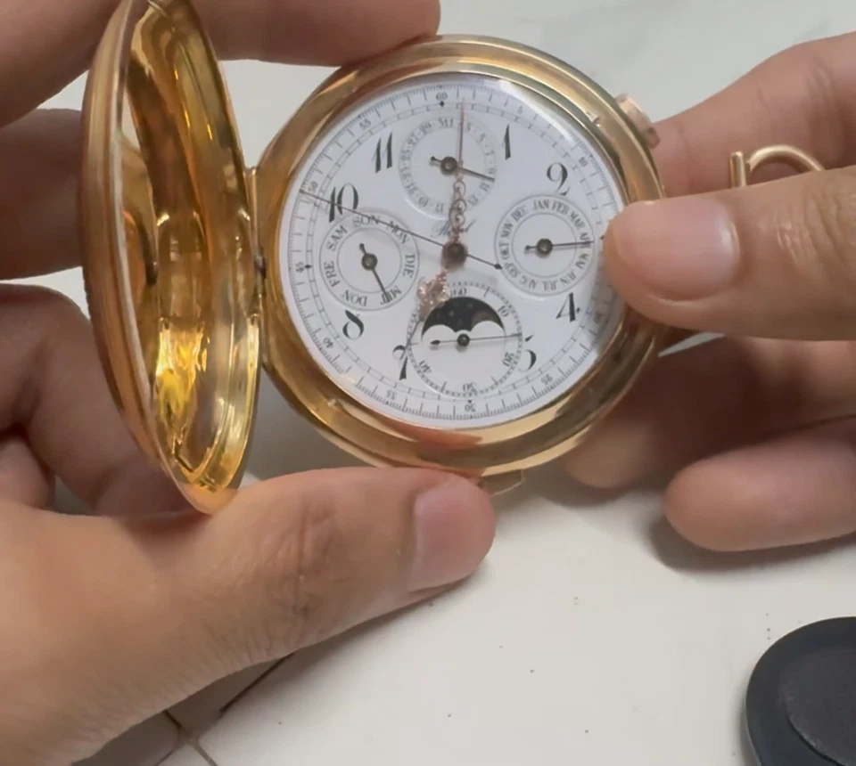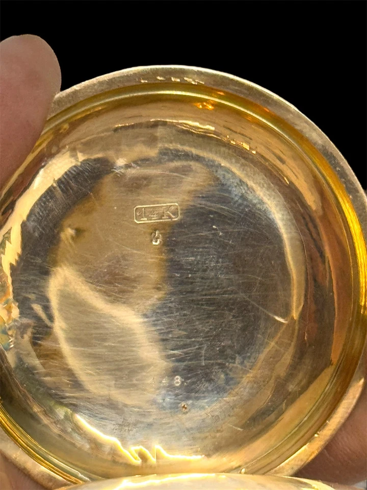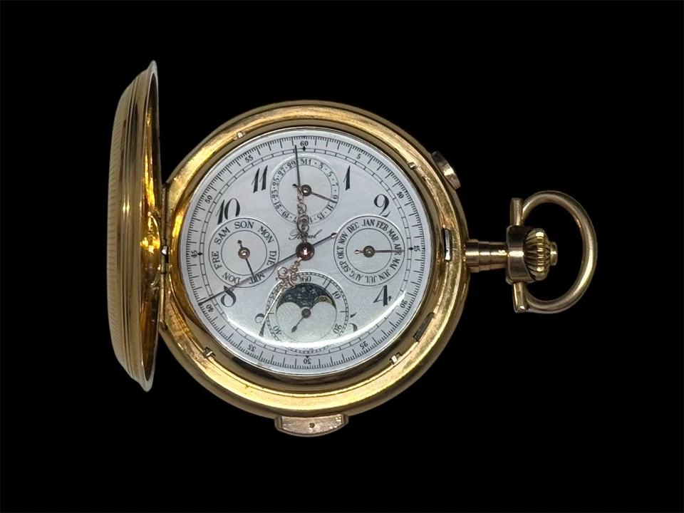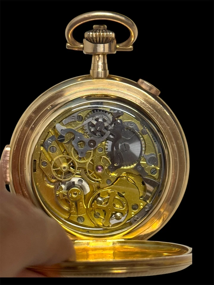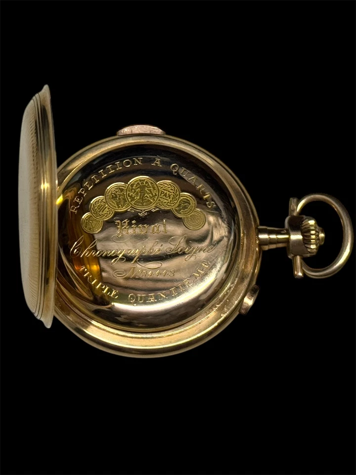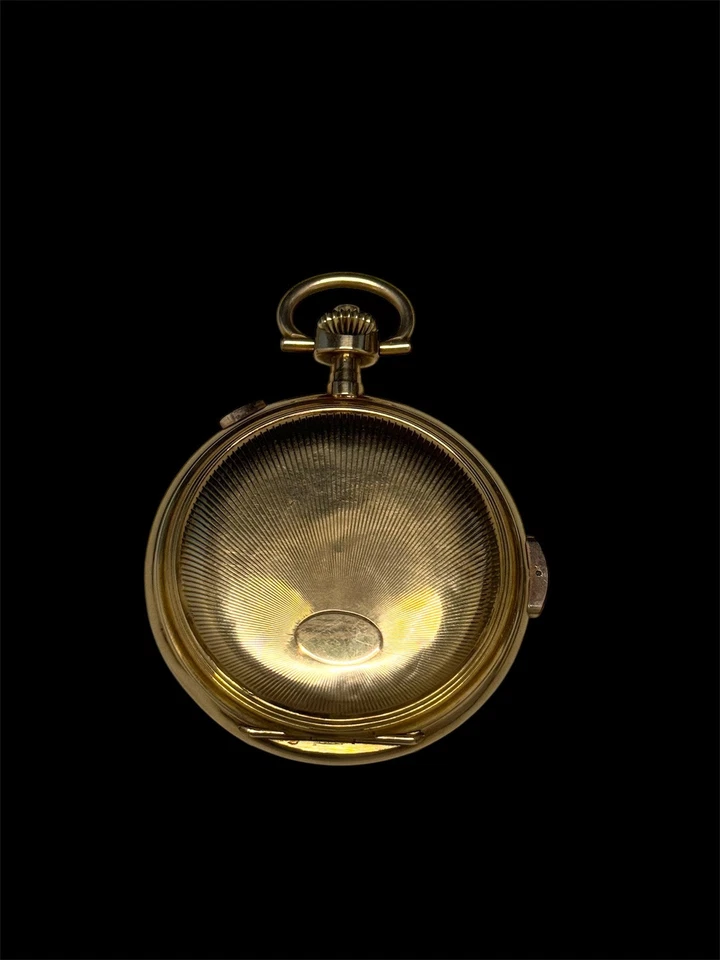 RIVAL FULL CALENDAR ANTIQUE POCKET WATCH MOON PHASE 1/4 REPEATER SOLID GOLD 14K