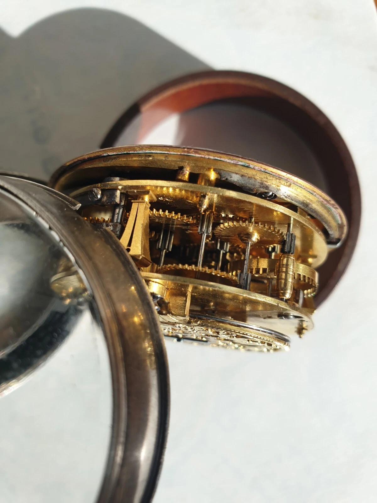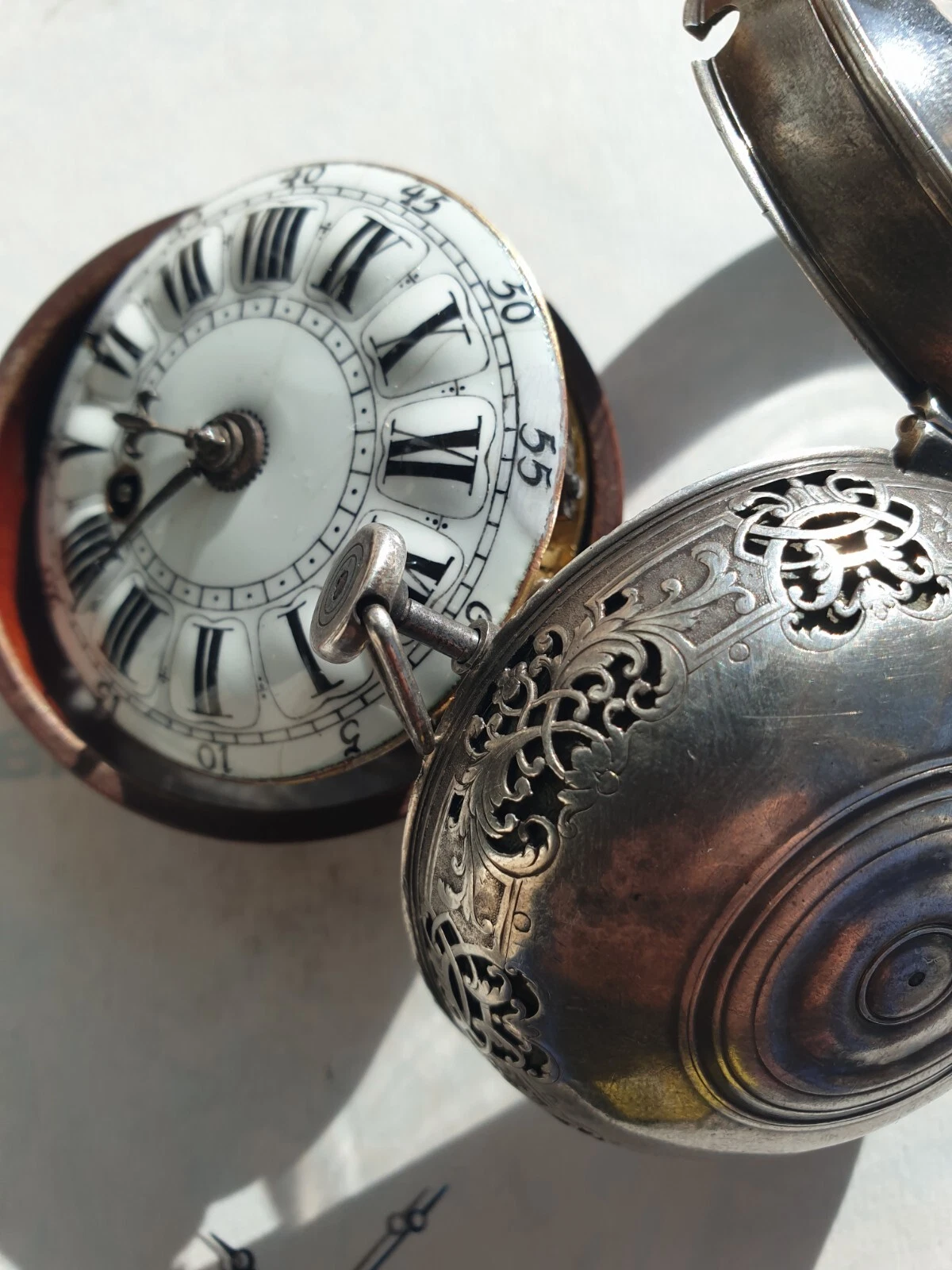 Antique French Sllver Ognon Repeater Verge Fusse Pocket Watch circa 1700