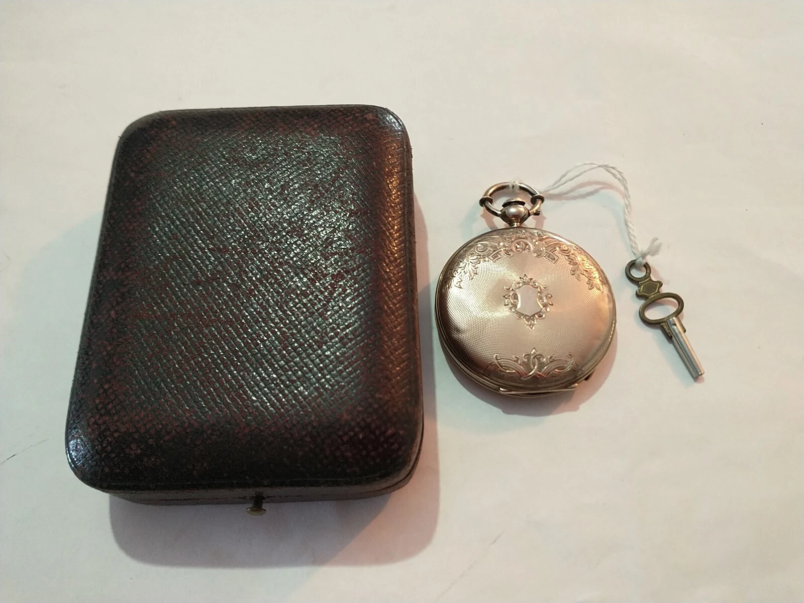 Antique H. Huguenin Key Wind Pocket Watch 8K Gold Case Key Wind Mid 1800s Work's
