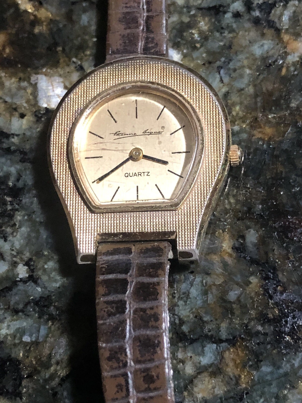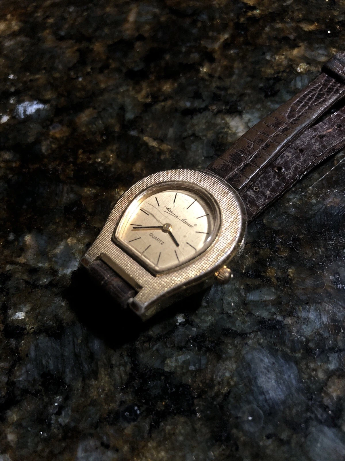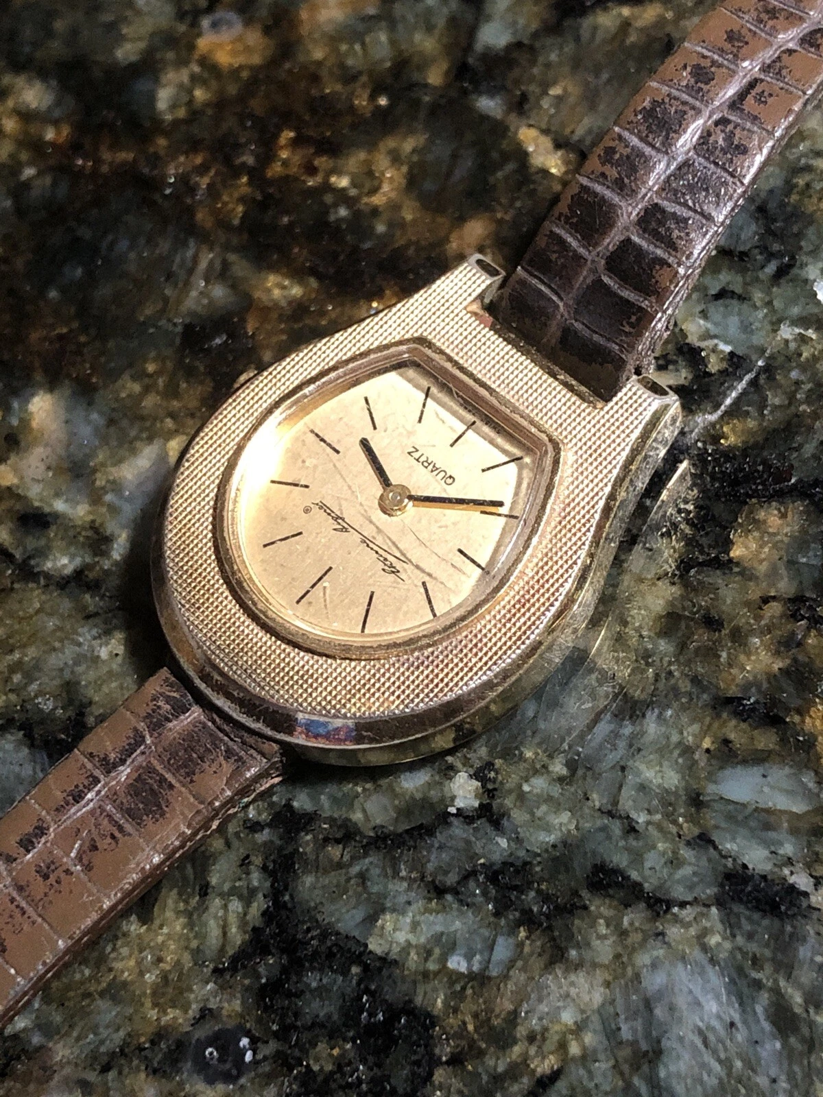 Vintage Gold Plated Etienne Aigner Quartz Watch W Lizard Strap By Bulova