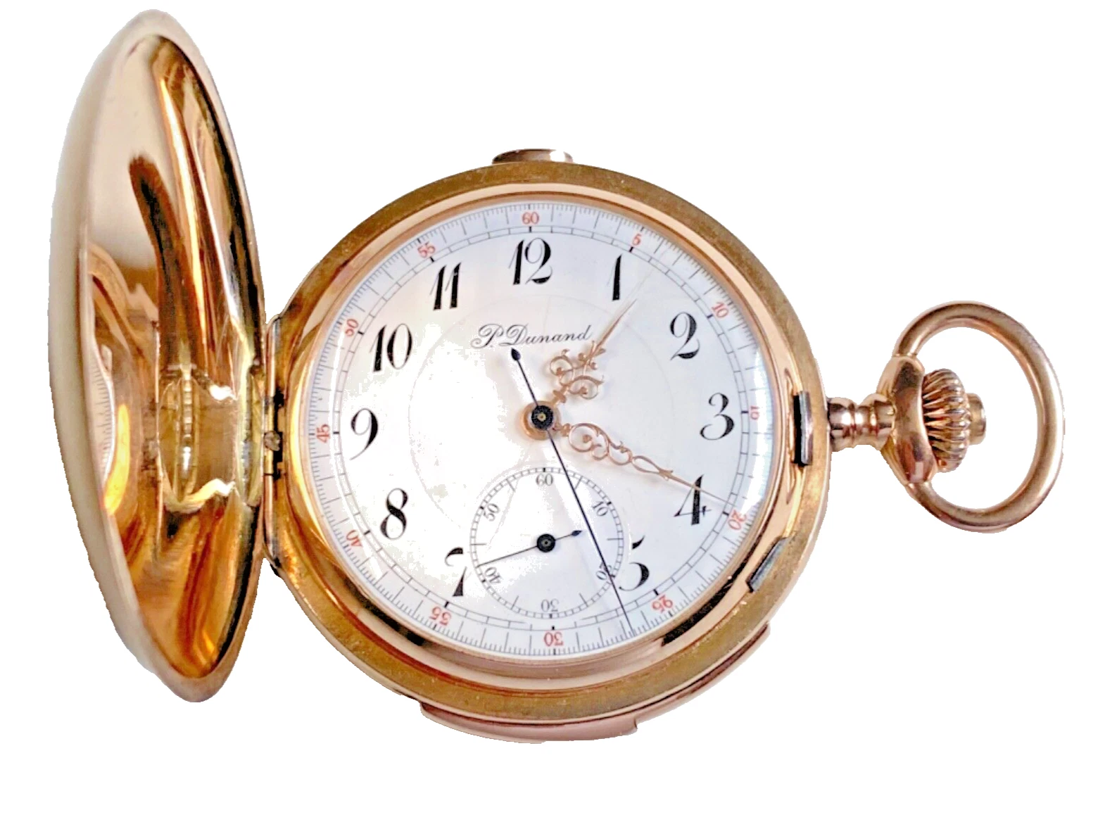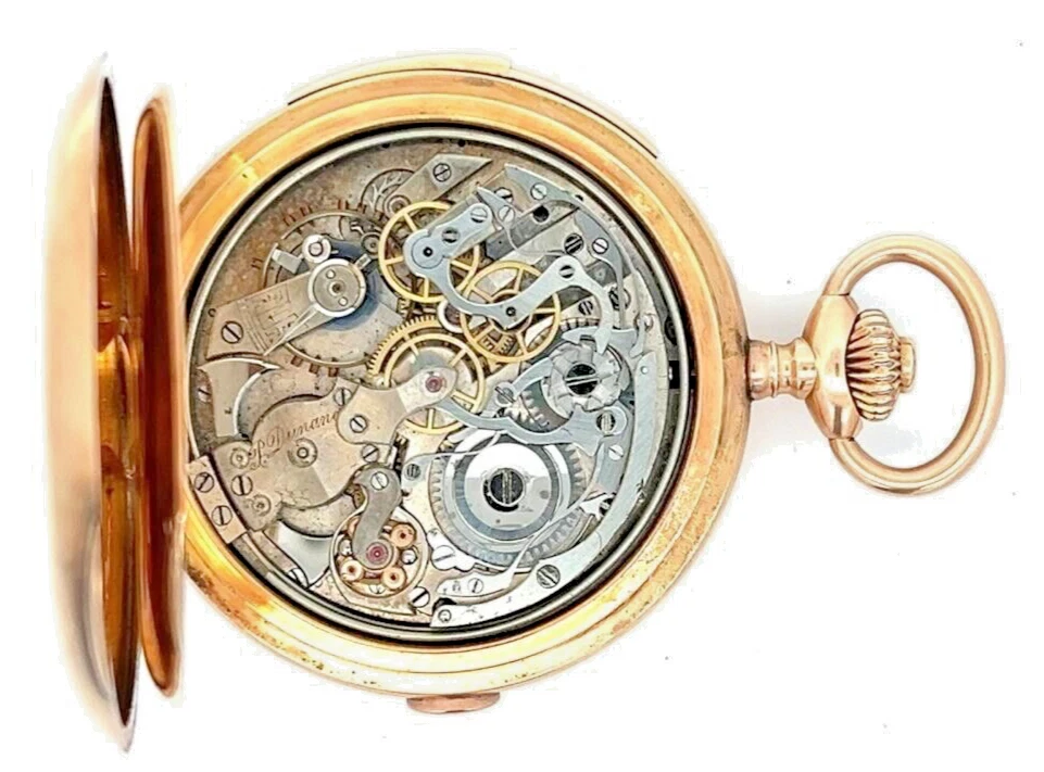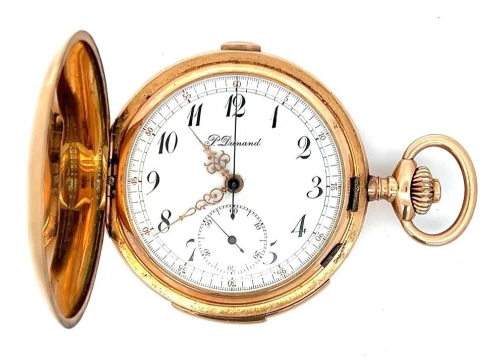 Antique 14k Rose Gold P. DUNAND REPEATER CHRONOGRAPH Hunting Case Pocket Watch