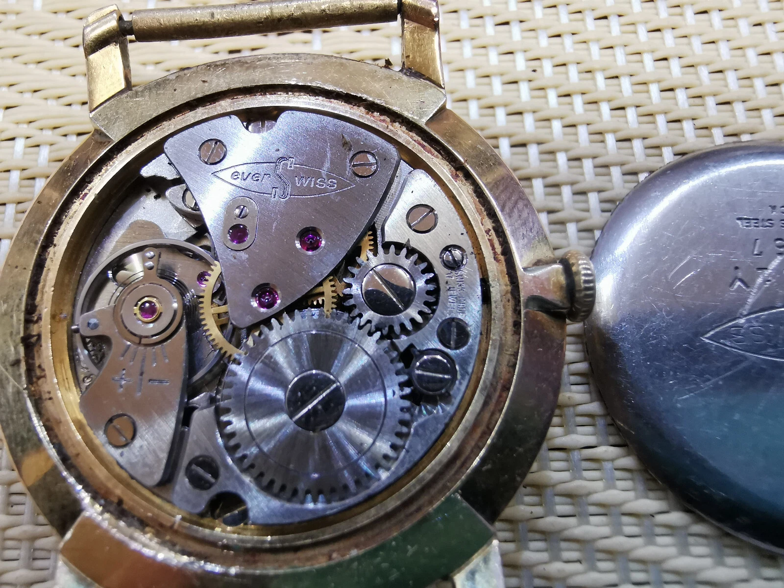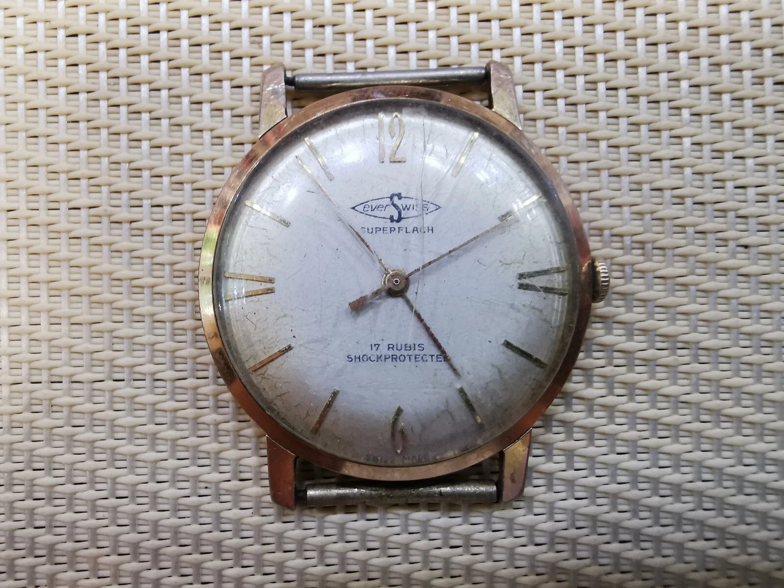 vintage rare SWISS MADE GOLD PLATED MEN watch EVERSWISS SUPERFLACH- 17 JEWELS