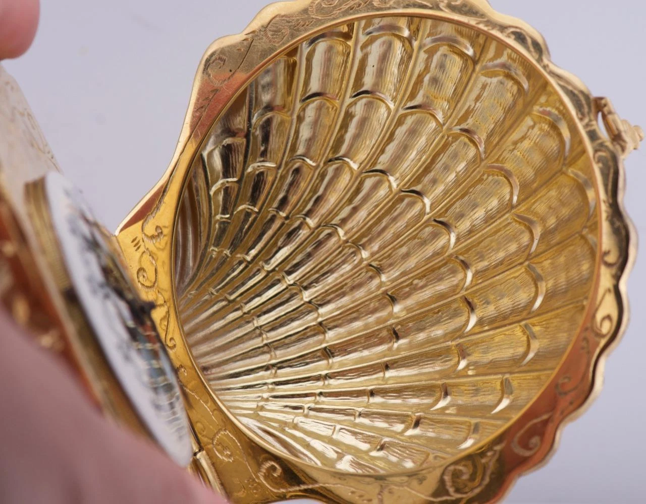 Antique French Pocket / Desk Watch Verge Fusee-Gilt Silver Seashell Case c1800's