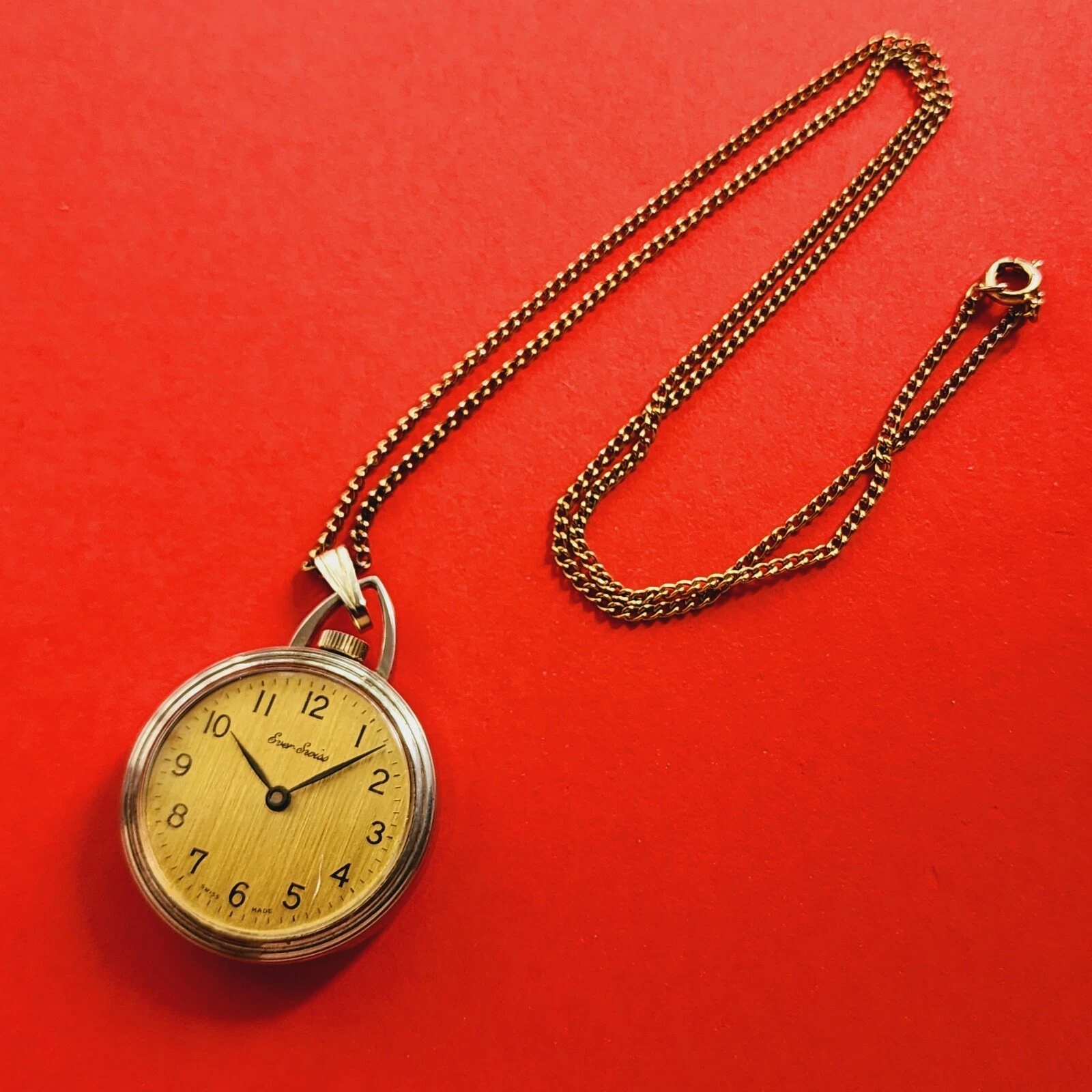 Ever Swiss Pendant Watch With Necklace Rare Mechanical Vintage
