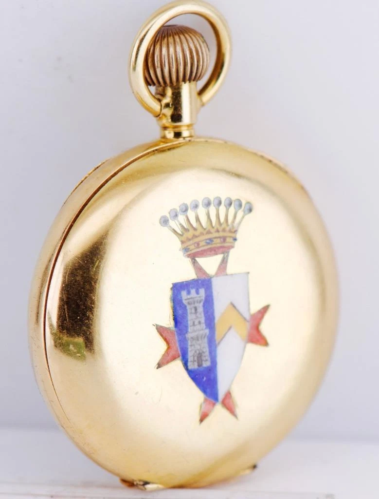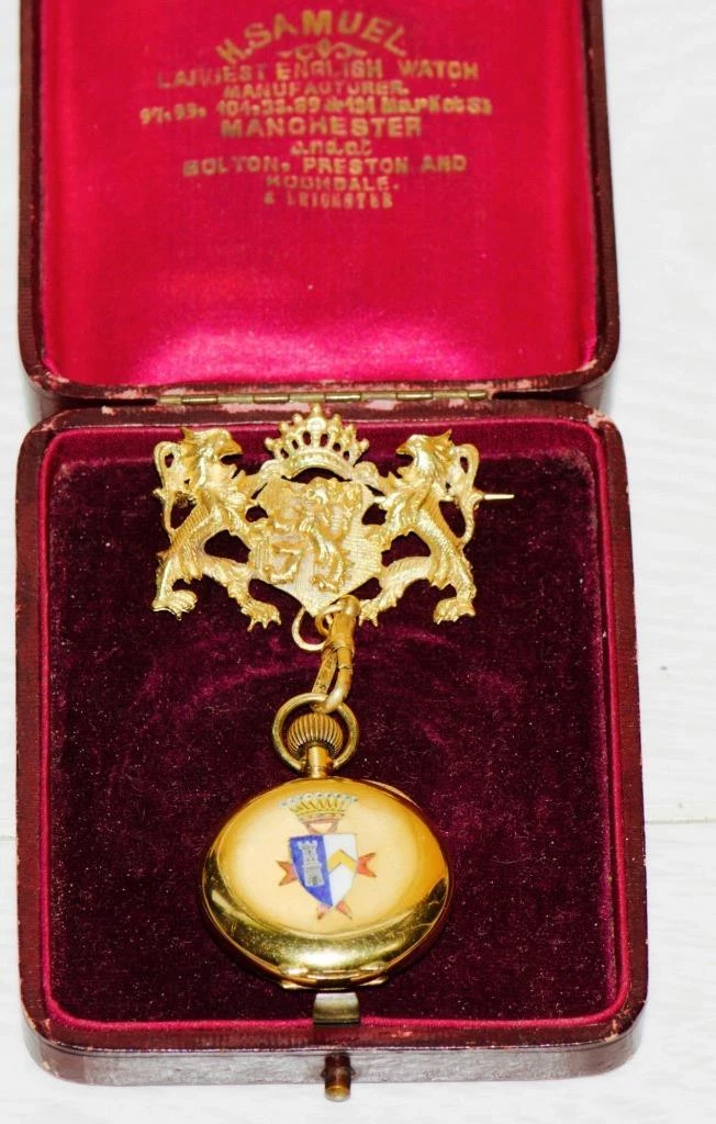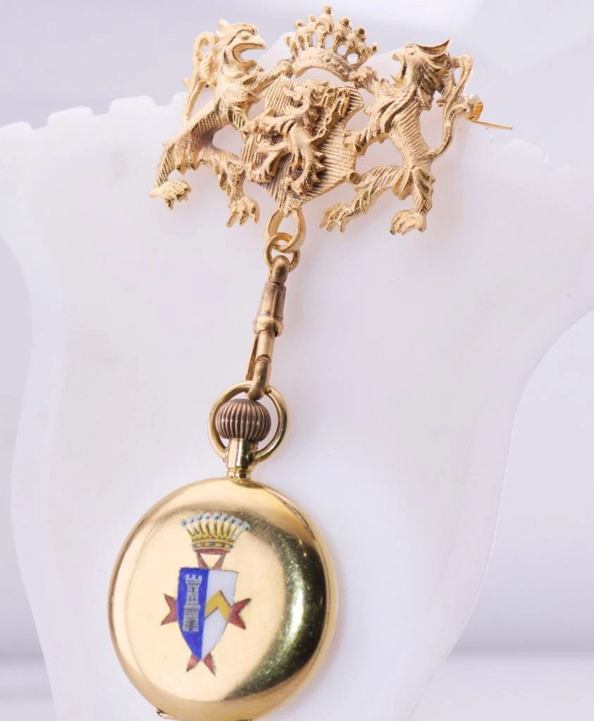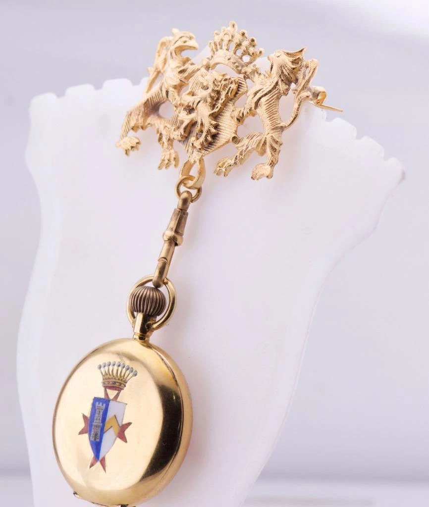 One-of-a-Kind Antique 18K Solid Gold Enamel Brooch Fob Watch English Royal Court