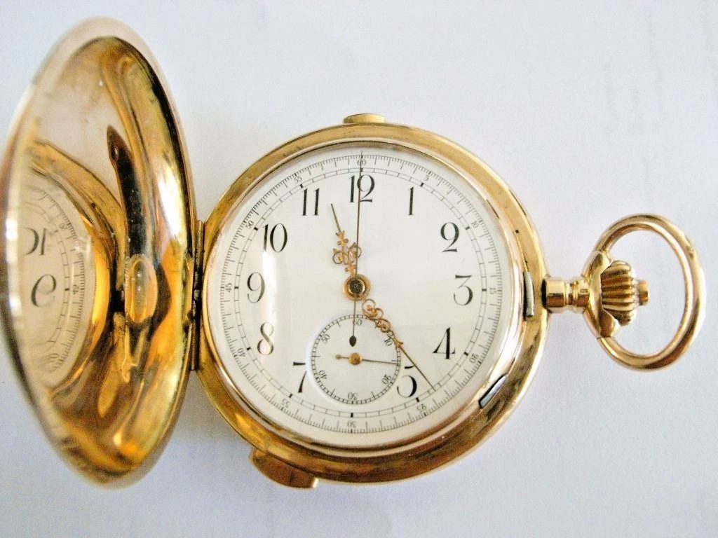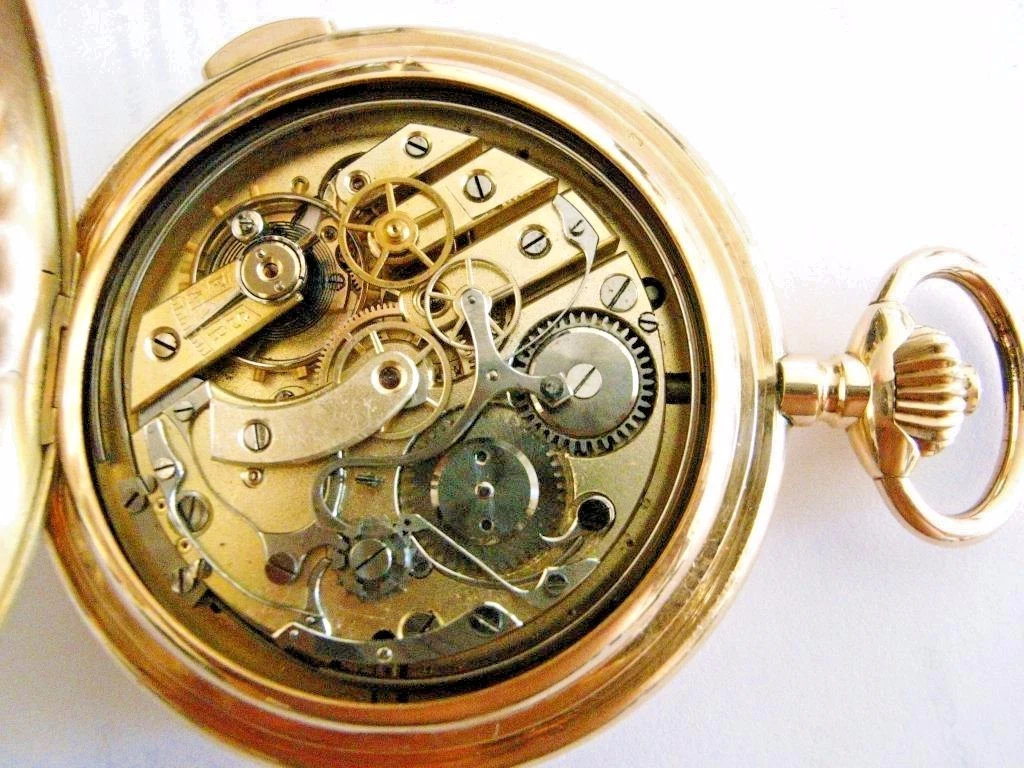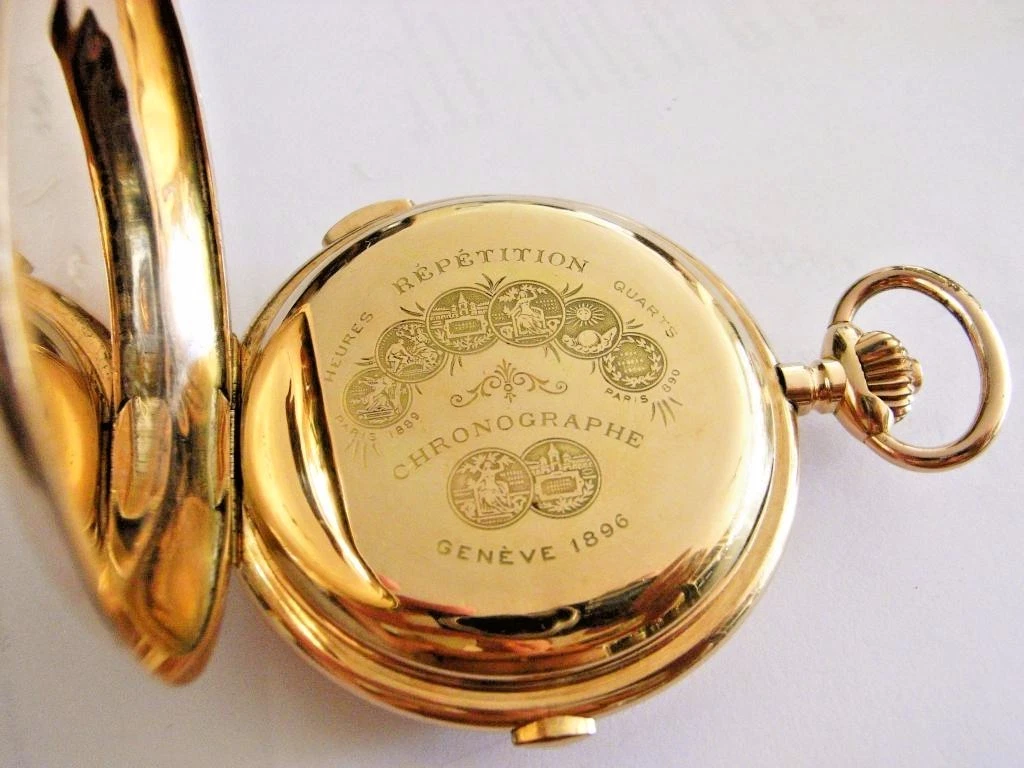 ANTIQUE QUARTER REPEATER & CHRONOGRAPHE POCKET WATCH GENEVE 1886 60mm 128grs