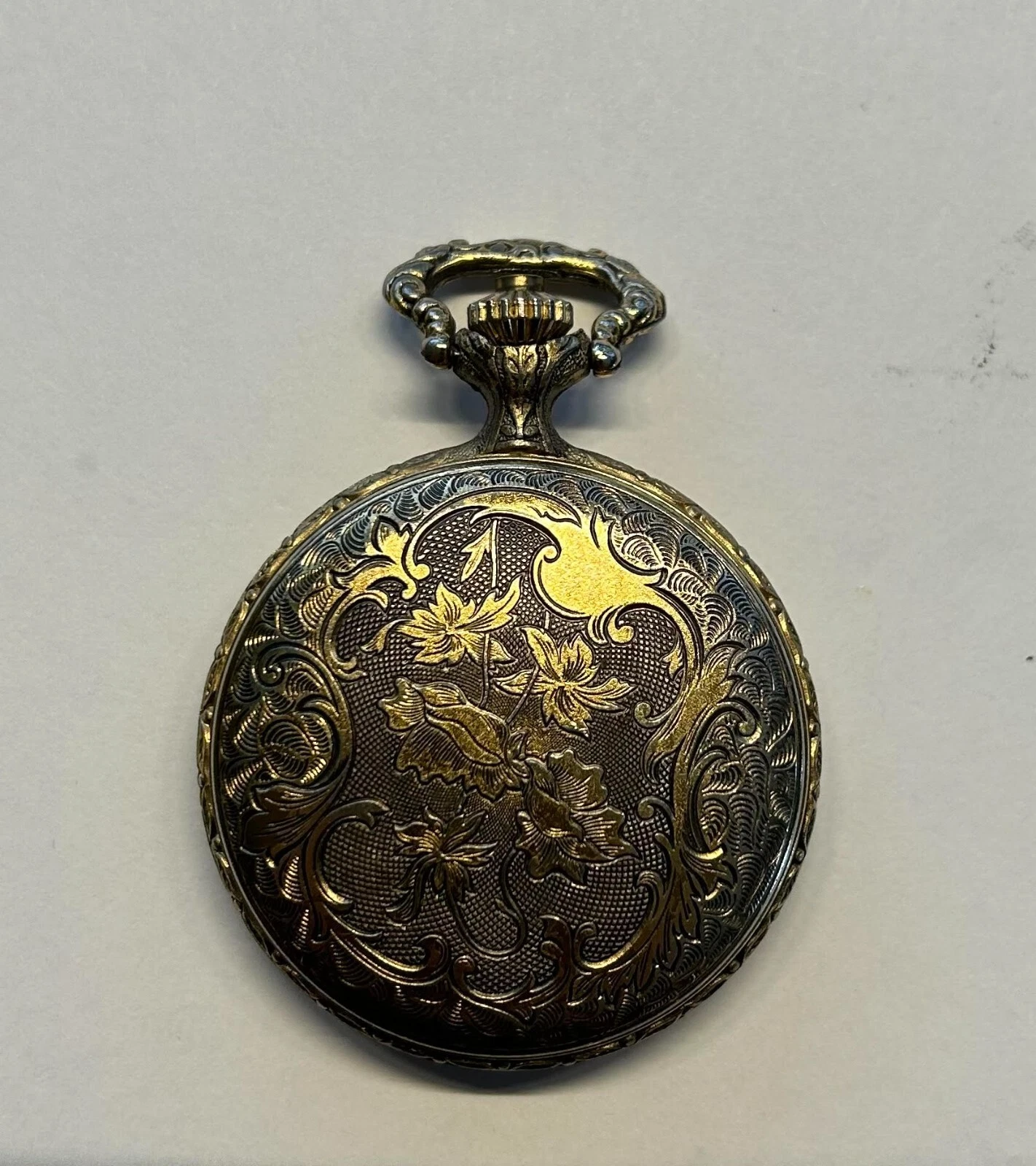 Ever Swiss Pocket Watch Gold Tone Hunter with Dog, 17 Jewels Swiss NOT WORKING