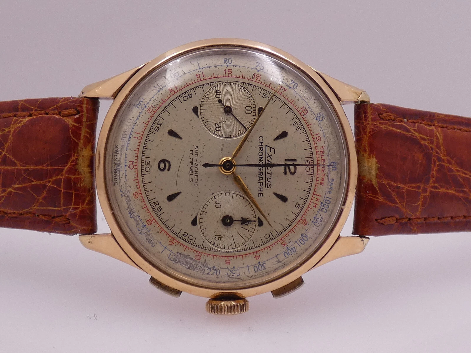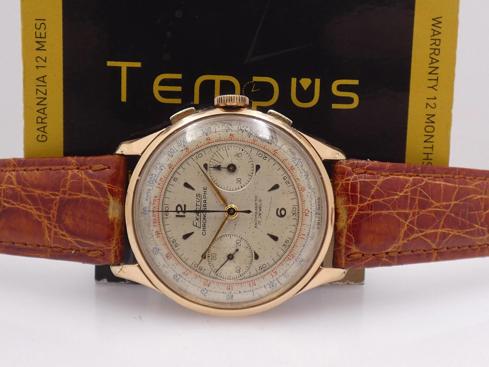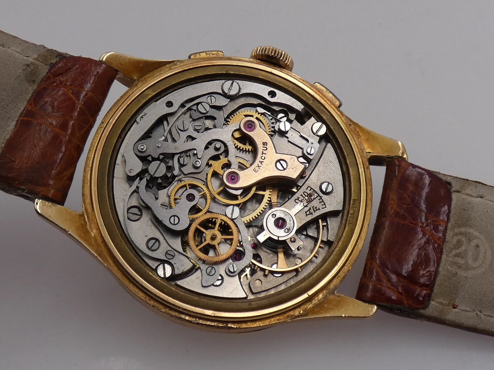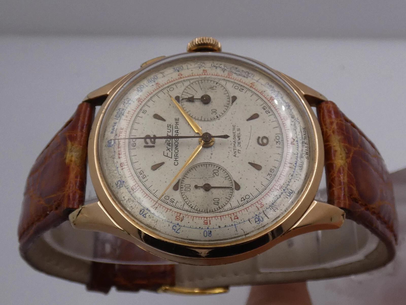 EXACTUS CHRONOGRAPH 18 Kt GOLD OVERSIZE 38mm VENUS 175 YEARS '50s MANUAL WATCH