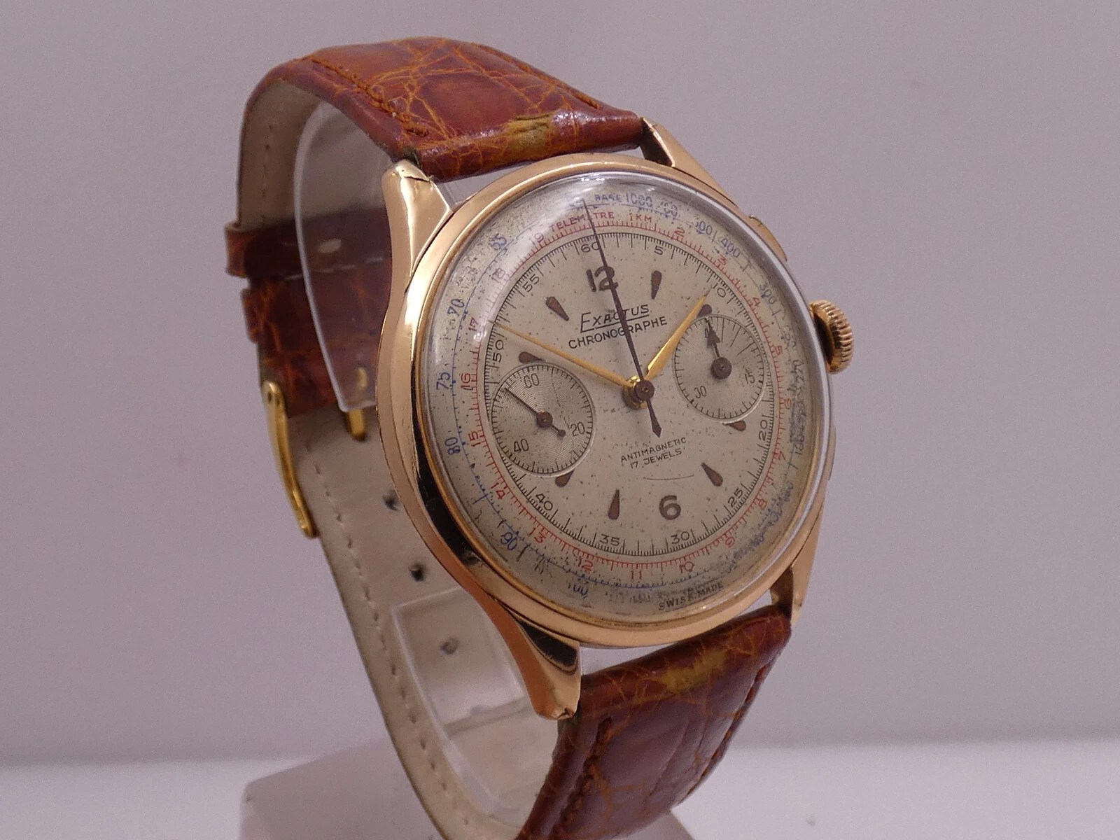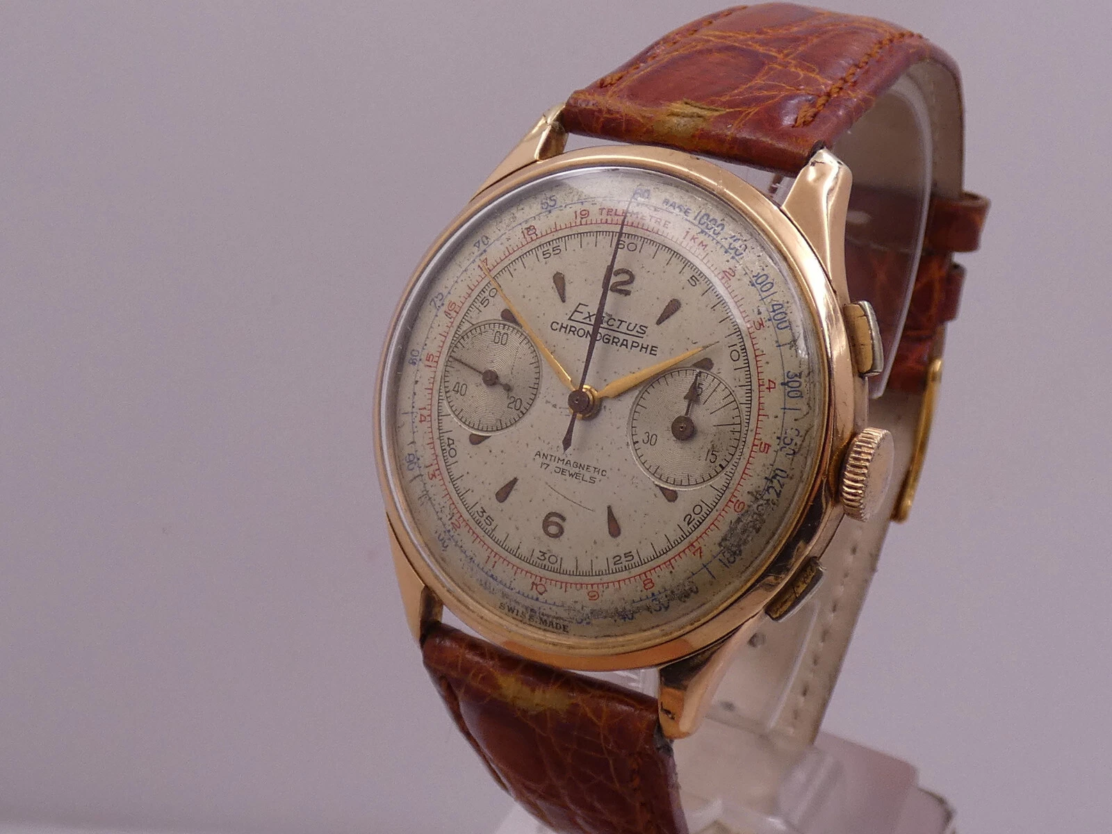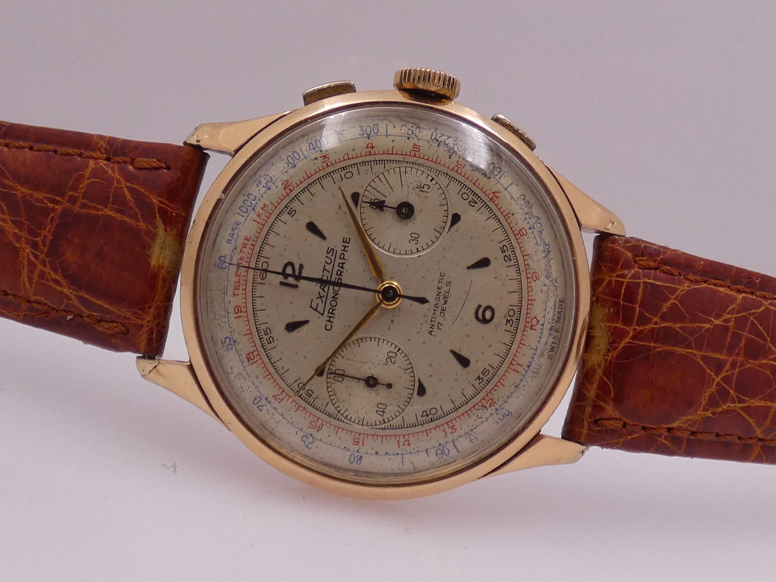 EXACTUS CHRONOGRAPH 18 Kt GOLD OVERSIZE 38mm VENUS 175 YEARS '50s MANUAL WATCH